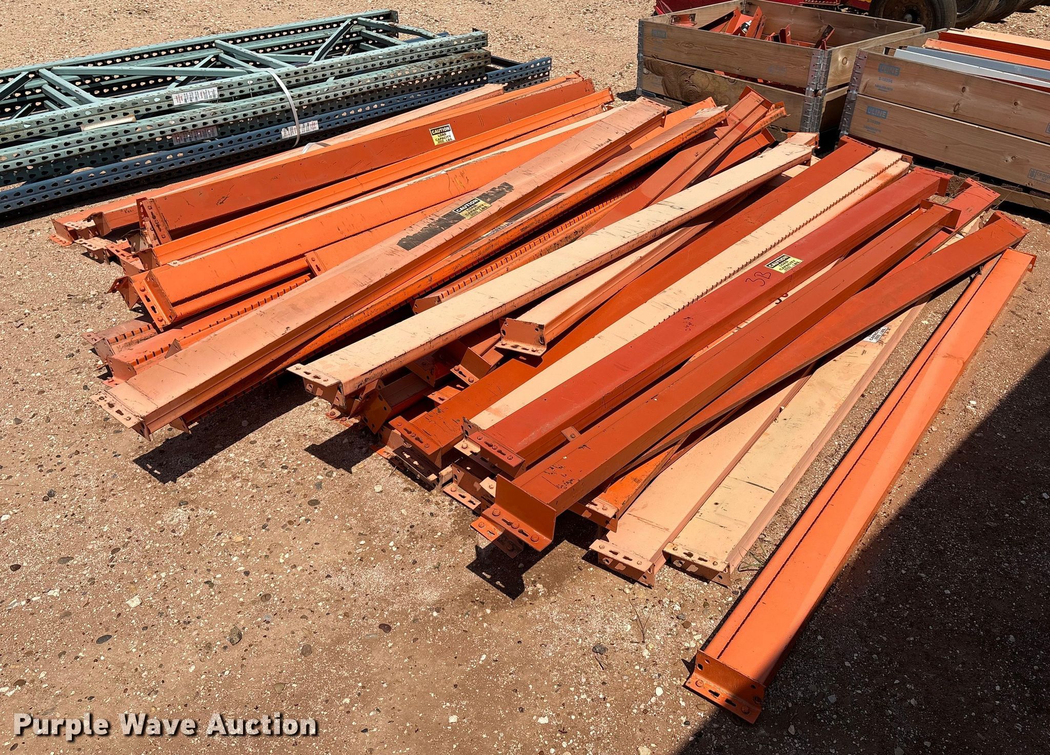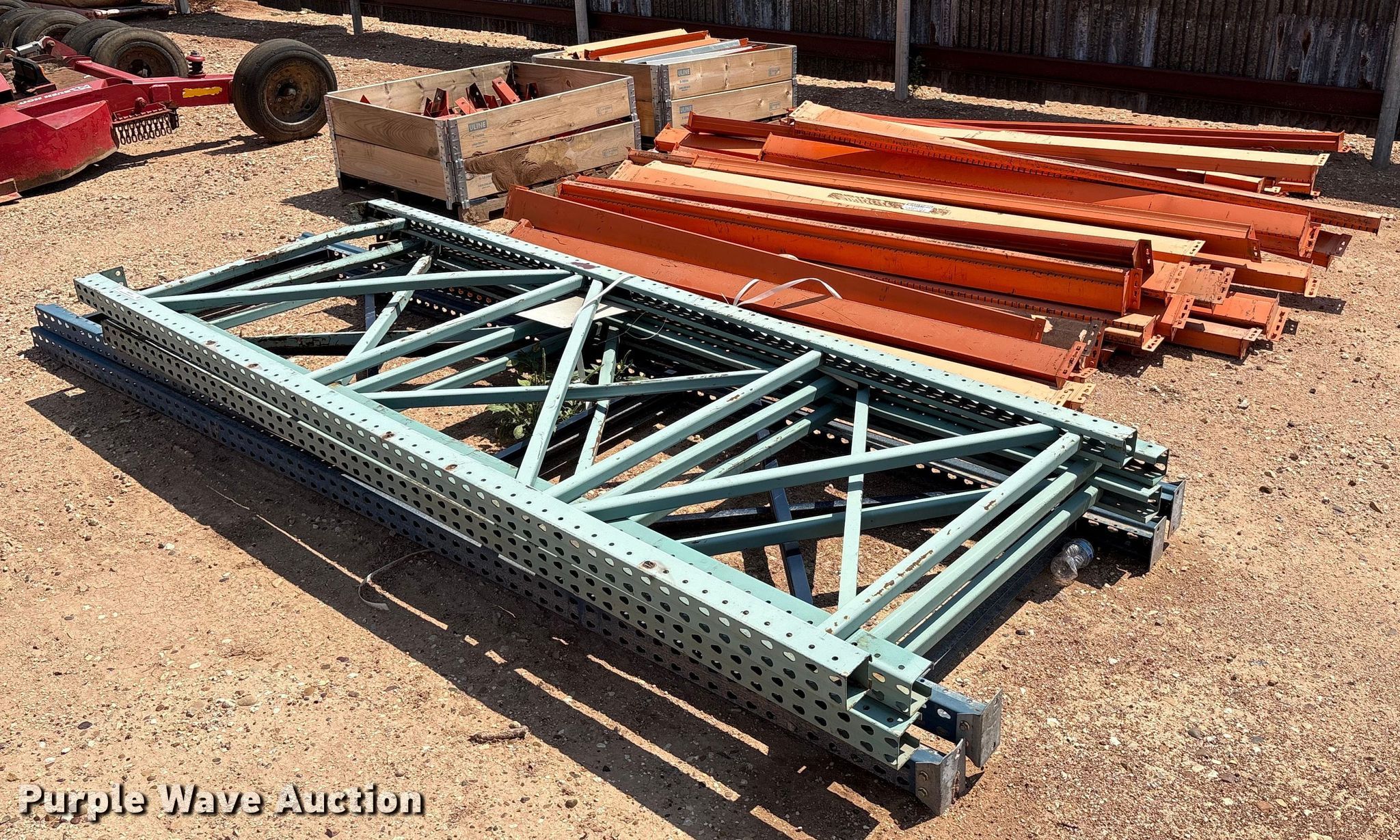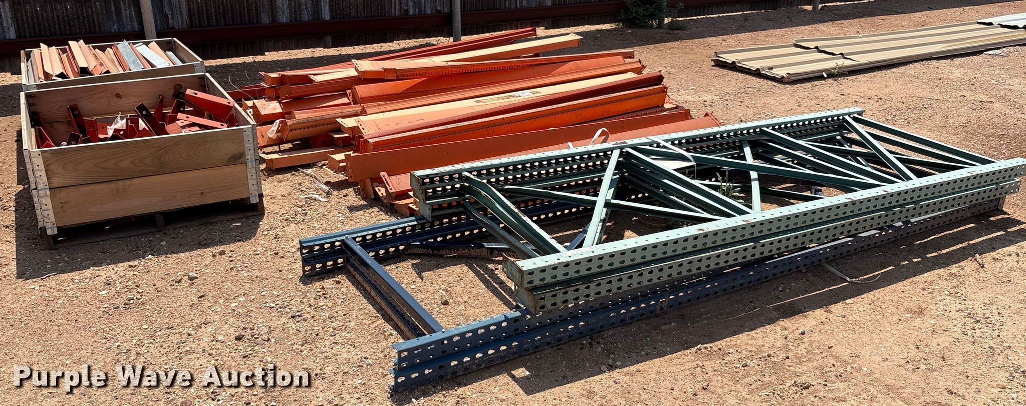 Purple Wave is selling a used Pallet Racking in Texas. This item is a Pallet racking with the following: Approx. 60 horizontal connectors, (5) uprights, (2) boxes of brackets and stiffeners