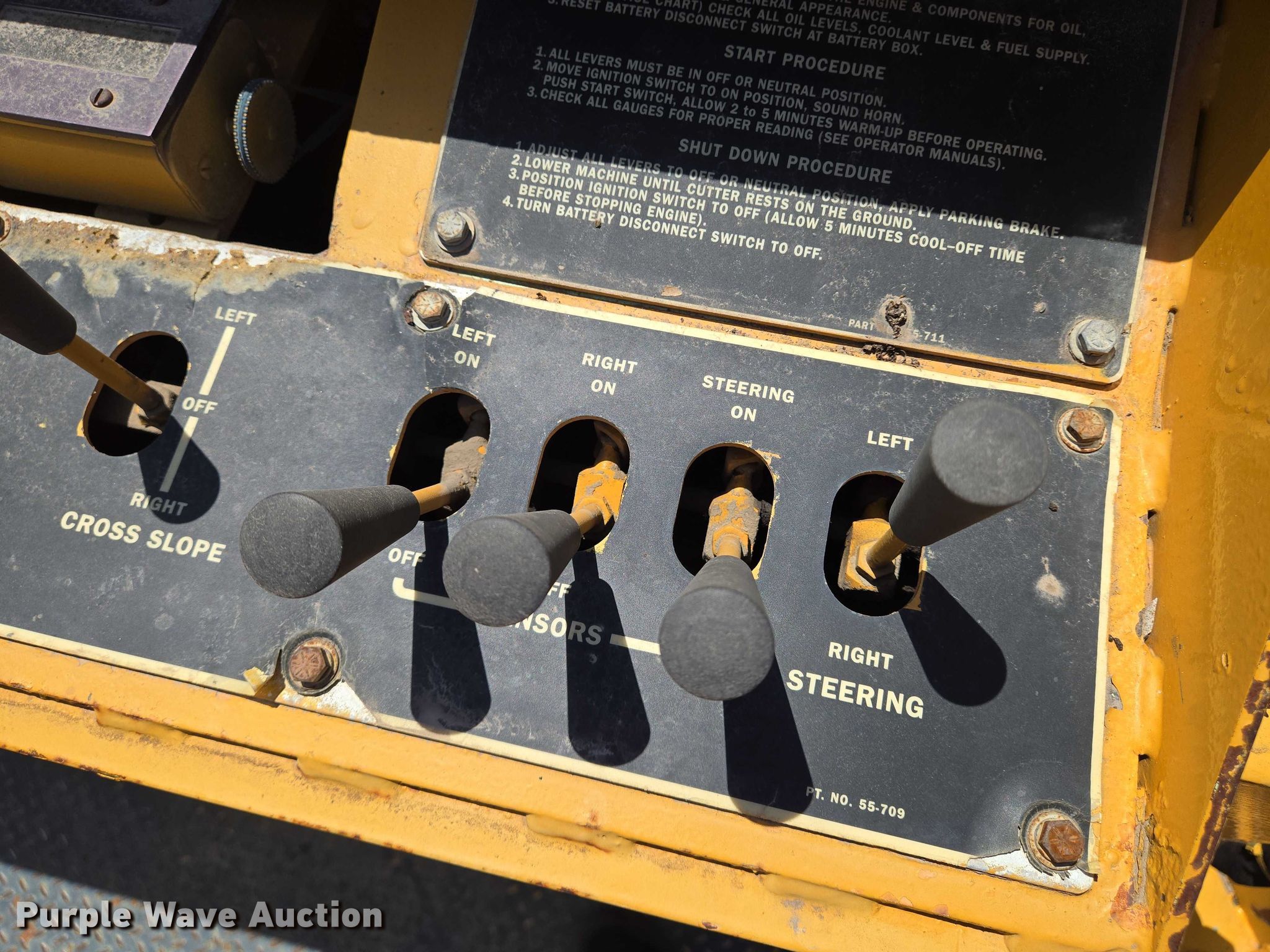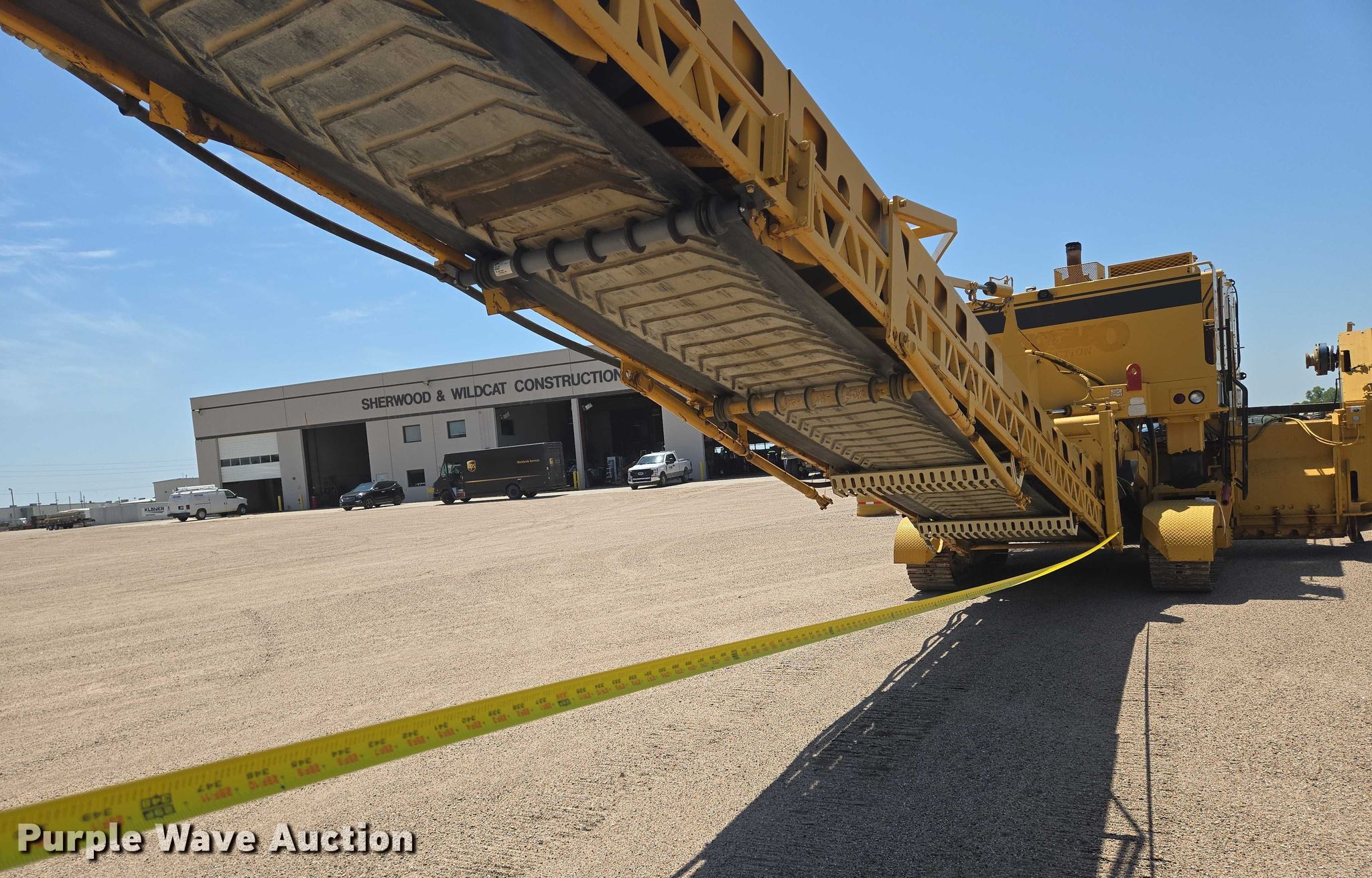 1999 CMI TR-4503 cold planer. Hours: 2,588 on meter, Serial: A544325, Unit #: 87.17L. Engine Model: 3406, Serial: 3ER03863, Cylinders: 6, Fuel type: Diesel. Transmission Hydrostatic. Features Cutting head Teeth, Discharge conveyor 32' L x 36" W. Tracks Width: 18", Steel. Notes Non-operational clutch, disassembled. Sherwood Construction Company. Wichita, KS 67277