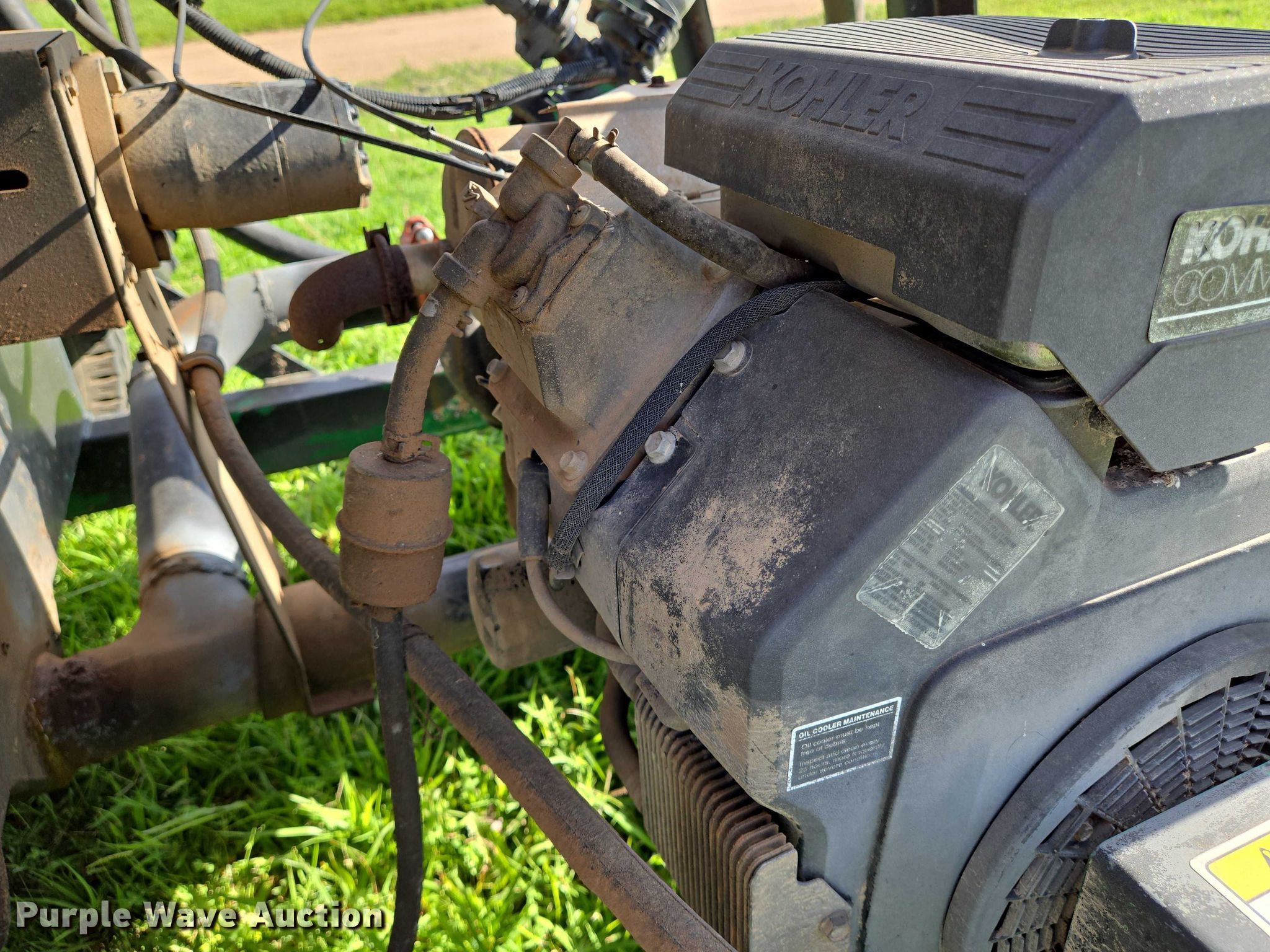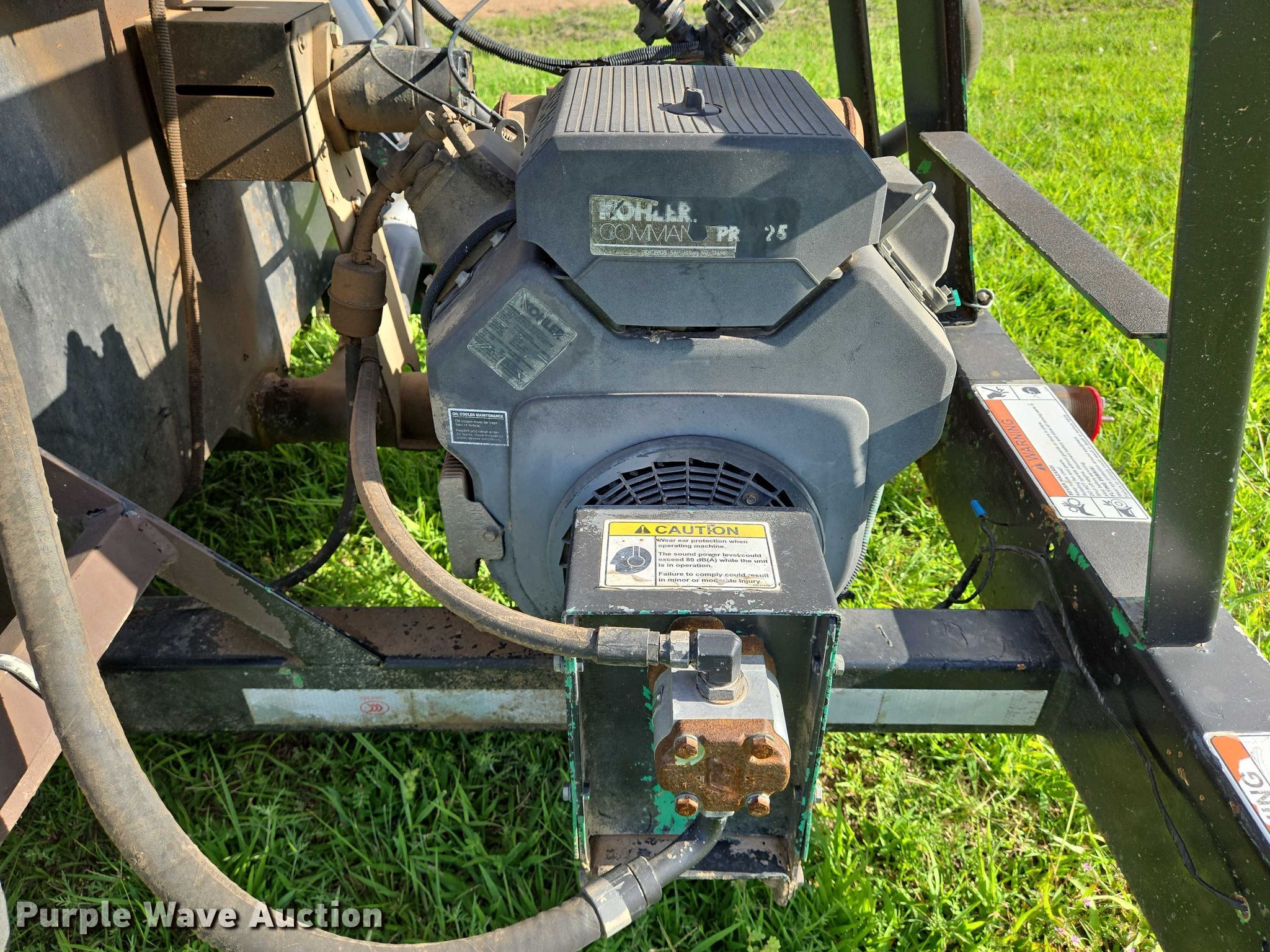 2007 Finn T-60 hydroseeder. Hours: 4,175 on meter, VIN: 1F95517107F135092, Serial: SQA2092. Engine Kohler Command Pro, Cylinders: 2, Fuel type: Gas. Features Gallon capacity: 500, Work platform, Agitator: Forward, Reverse, Wand discharge, Hose reel, Hose Diameter: 2", Nozzle, Tank. Trailer 15' L x 68" W, Ball hitch size: 2 5/16", Suspension: Spring, Brakes: Electric, Axles: Single, Tire size: 225/90D16. This is worksite support equipment and will not come with a title. Transfer of ownership documentation will be a bill of sale. Crossover Construction. Harper, KS 67058