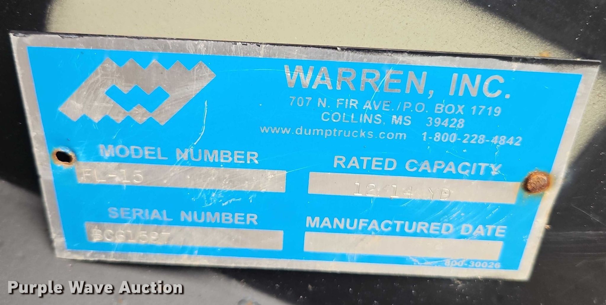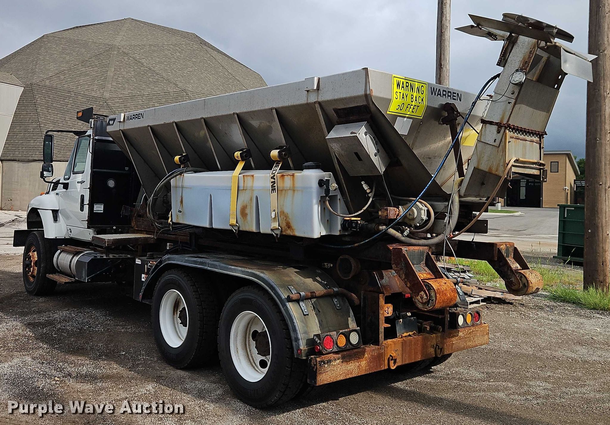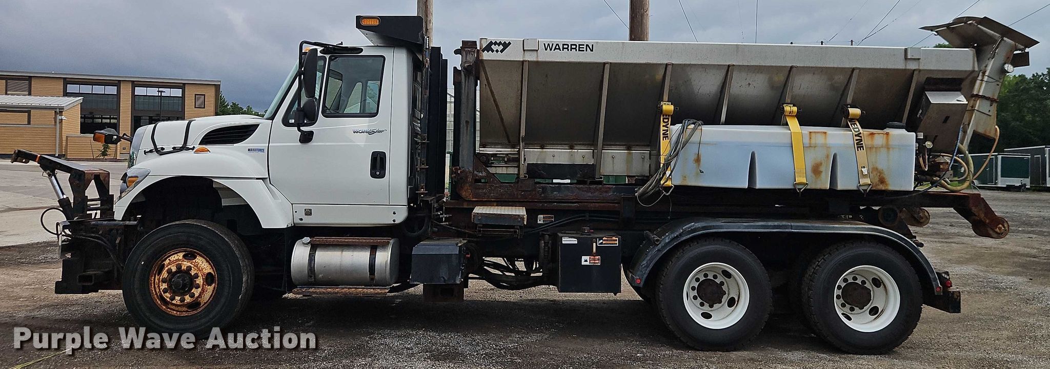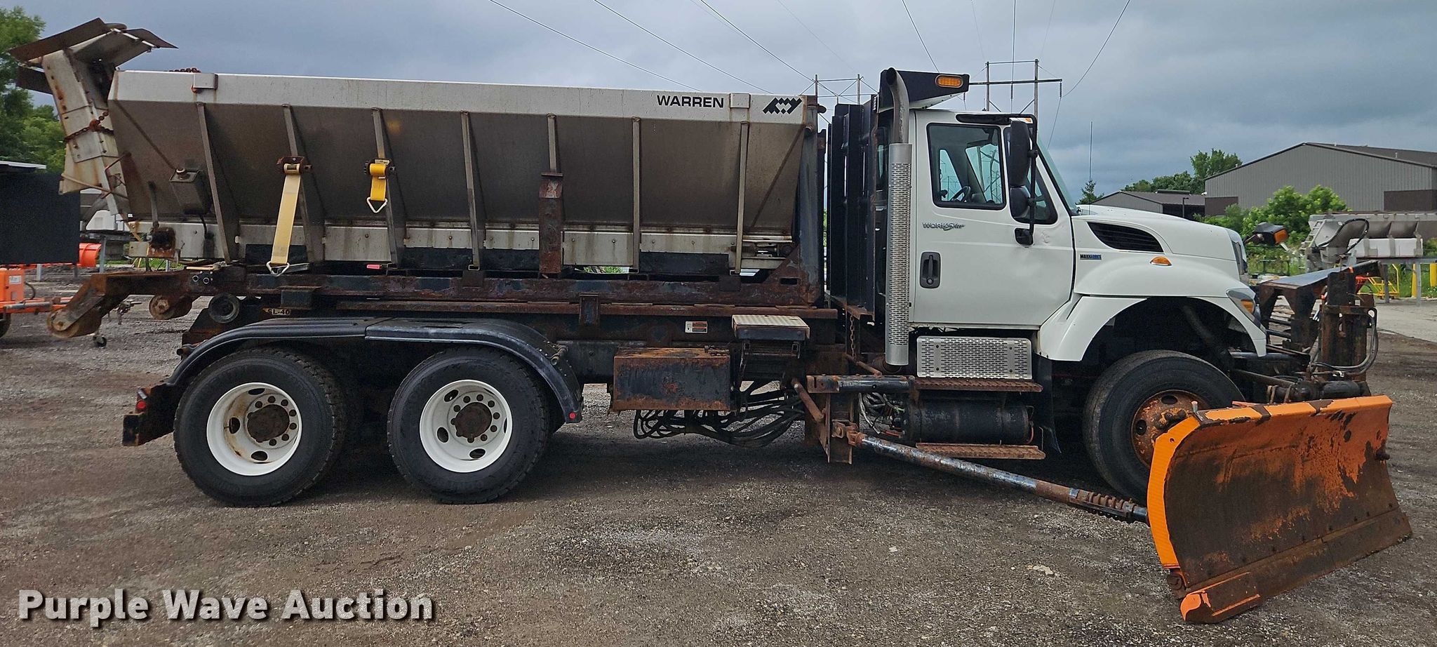 2013 International 7400 hook lift truck. Miles: 63,834 on odometer, Hours: 4,638 on meter, VIN: 1HTWHAZT0DJ253361. Engine International MaxxForce 10, Displacement: 9.3L, Cylinders: 6, Fuel type: Diesel. Transmission Allison, Automatic. Chassis Axles: Tandem, Differential lock: Inter-axle, Suspension: Spring over walking beam, Brakes: Air, PTO, Front mount PTO, GVWR: 56,000 lbs FAWR: 16,000 lbs, IAWR: 20,000 lbs, RAWR: 20,000 lbs, Wheelbase: 540". Interior AC, Heat, Heated mirrors, Cruise control. Features Hook lift bed SwapLoader, Serial: BC61597, Length: 15', Width: 96", Capacity: 14 cu.yd., Side height: 40", Side board height: 10", Bed type: Steel, End gate: Manual, Dump bed Warren FL-15, Serial: BC61597, Spreader Warren, Plow Monroe, Width: 144", Wing plow Monroe, Width: 108". Tires Front: 315/8022.5, Rear: 295/75R22.5. Kansas title. Seller is a government entity who will be assigning and distributing the title. Please contact the seller for distribution questions. Title distribution may be delayed up to 14 days from verification of funds. City of Leawood, KS. Leawood, KS 66224