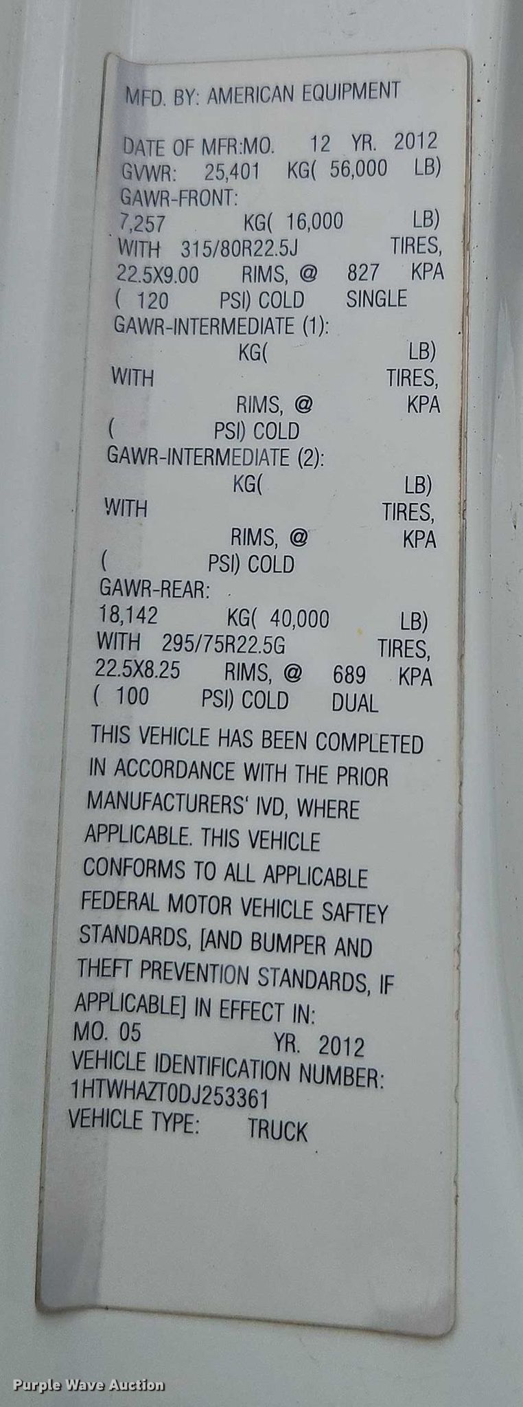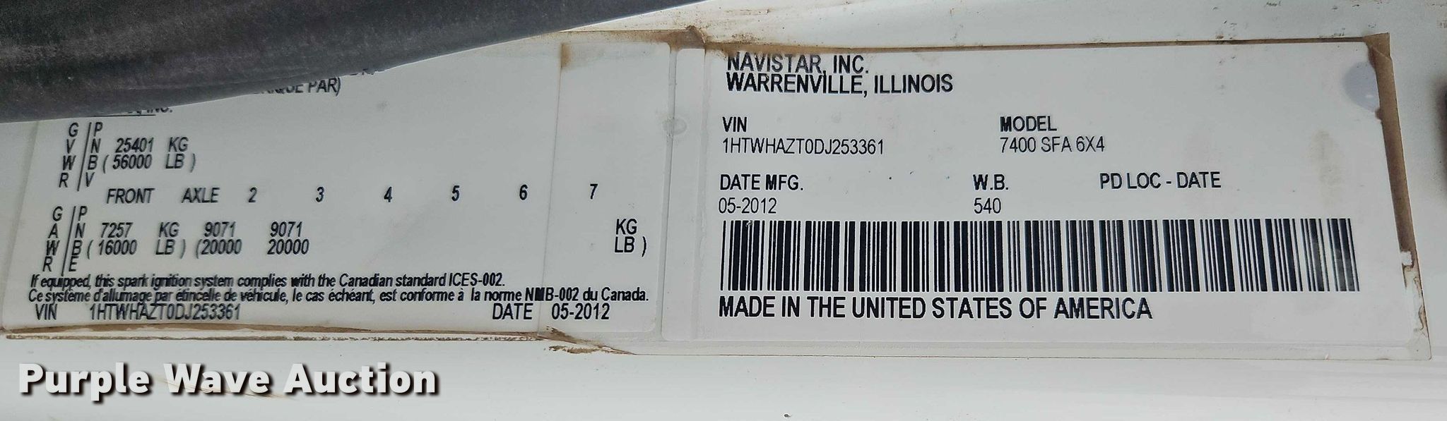 Purple Wave is selling a used Rollback or Tow Truck in Kansas. This item is a 2013 International 7400 hook lift truck with the following: Miles: 63,834 on odometer, Hours: 4,638 on meter, VIN: 1HTWHAZT0DJ253361