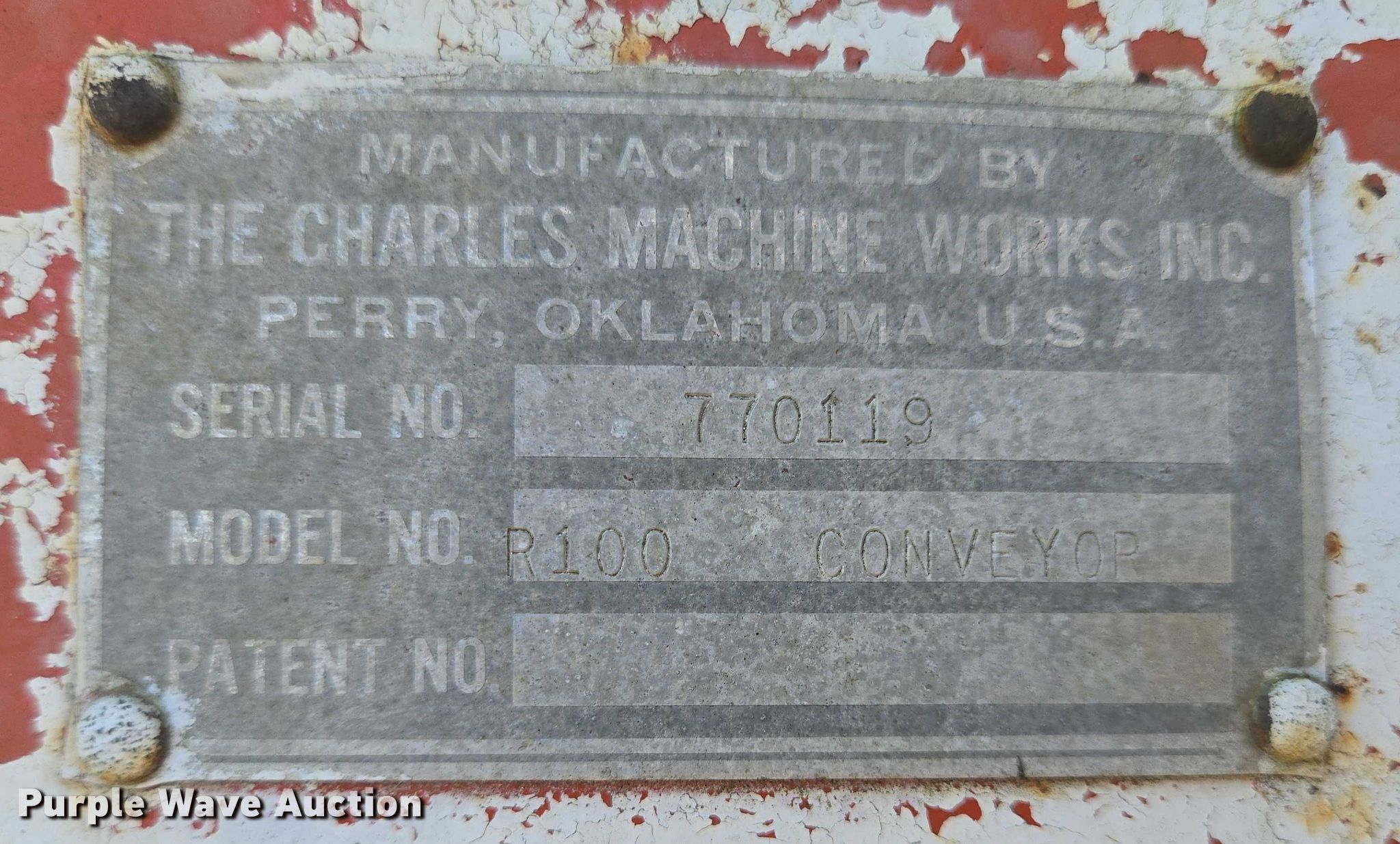 Ditch Witch R100 trencher. Hours: Unknown, Serial: 770119. Engine Cylinders: 4, Fuel type: Diesel. Transmission Hydrostatic. Operators station Canopy. Features Trencher Estimated dig depth: 84", Cutting width: 8", Teeth: Dirt, Crumber, Backfill blade. Notes Transmission issues, does not move. 5-T Utility. Huntsville , TX 77340
