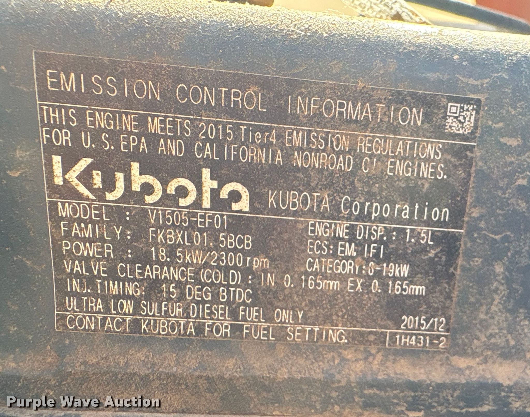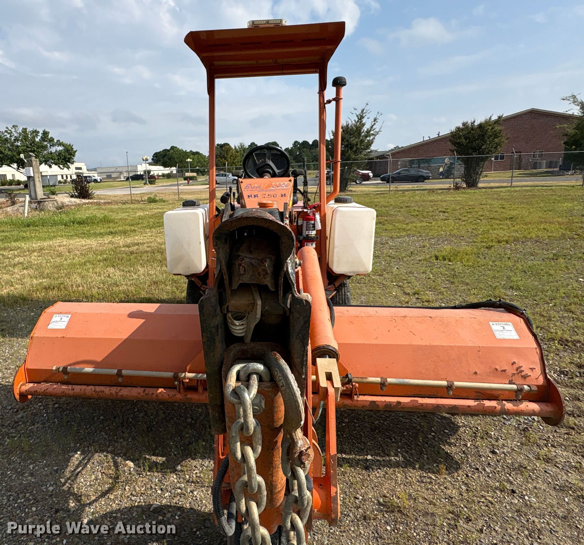 Broce BB250B broom. Hours: 468 on meter, Serial: 340896. Engine Kubota V1505, Serial: 1FY5417, Displacement: 1.5L, Cylinders: 4, Fuel type: Diesel. Transmission Hydrostatic. Operators station OROPS. Features Broom Width: 100", Water spray system. Tires Front: 195/75R14, Rear: 185/75R14. Grant Garrett Excavating. Hot Springs, AR 71913