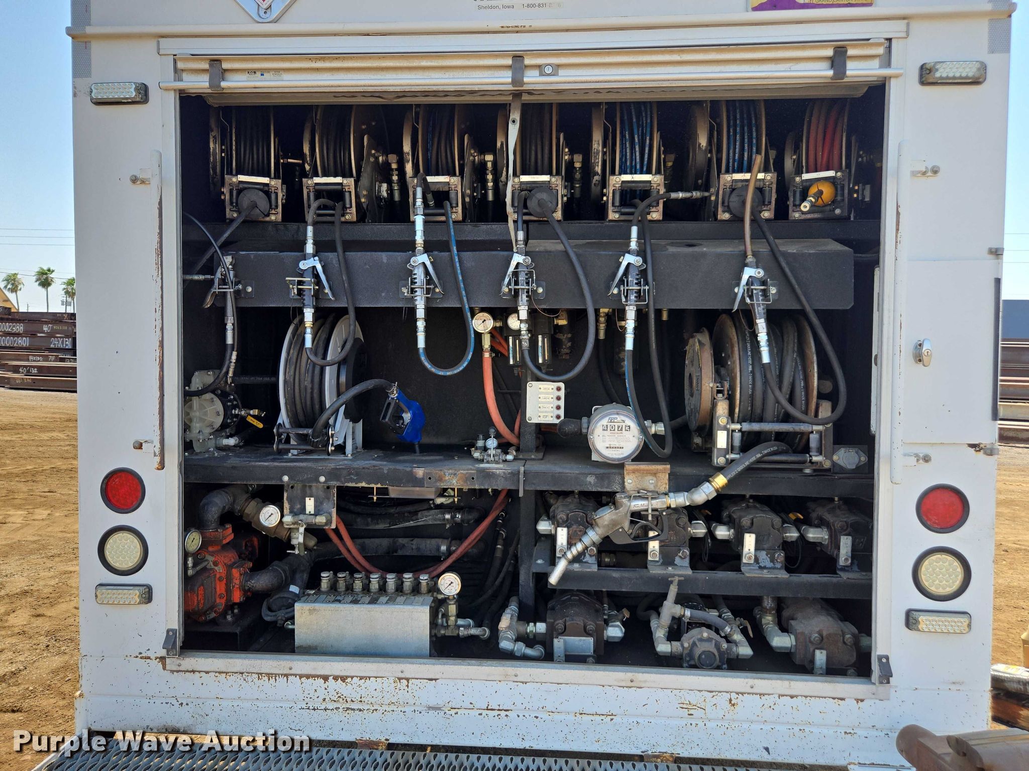 2008 Sterling L8500 fuel / lube truck. Miles: 200,579 on odometer, VIN: 2FZHAWBS28AZ54902. Engine Cummins, Displacement: 8.3L, Cylinders: 6, Fuel type: Diesel. Transmission Eaton Fuller RoadRanger RT/RTO-8LL, Manual, Speed: 10. Chassis Axles: Tandem, Suspension: Spring, Brakes: Air, PTO, GVWR: 51,982 lbs. Interior AC, Heat, Cruise control. Features Bed Maintainer, Length: 19' 6", Width: 96", Air compressor Ingersoll Rand, Oil/lube system Hose reels, Reservoirs Hydraulic fluid, Grease, Motor oil, Used oil, Fuel tank Nozzles, Pump.. Tires Front: 315/80R22.5, Rear: 11R22.5. Arizona title. Title distribution may be delayed up to 30 days from verification of funds. Pulice Construction. Phoenix, AZ 85019