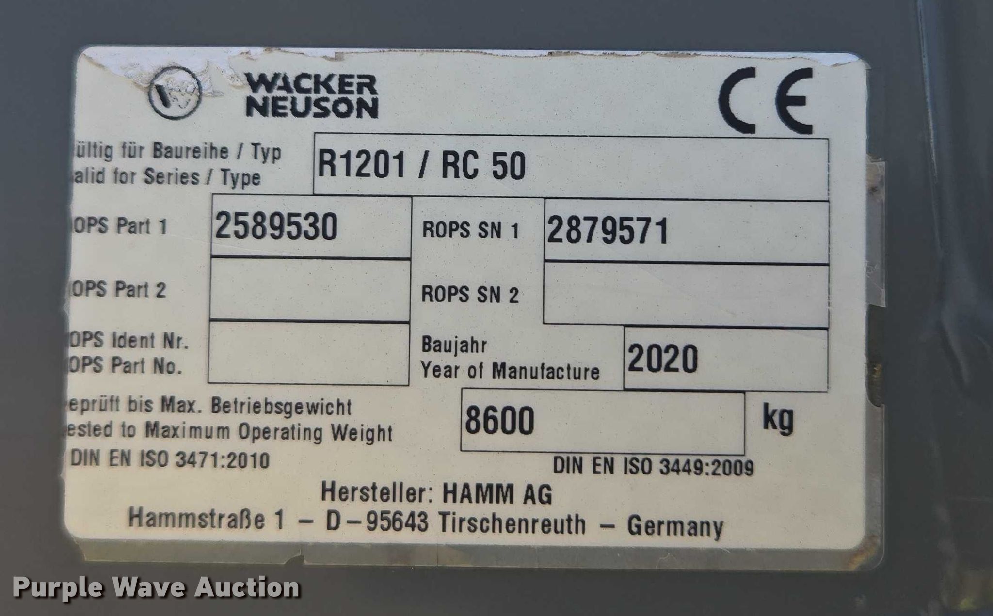 Purple Wave is selling a used Single Drum Roller Compactor in South Dakota. This item is a 2021 Wacker Neuson RC50 single drum vibratory roller with the following: Hours: 461 on meter, Serial: WNCR1201HHAA00253, Unit #: 65905815
