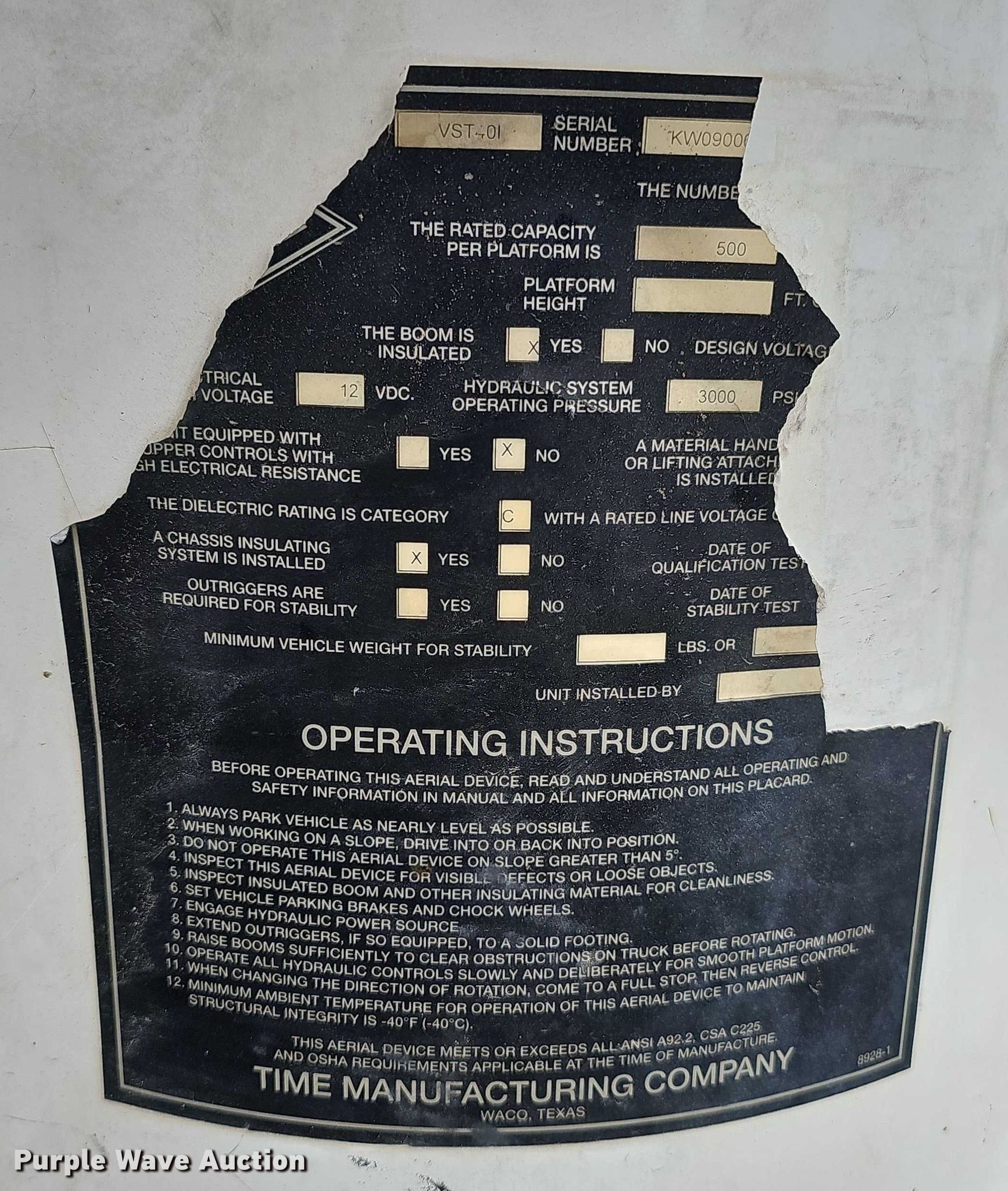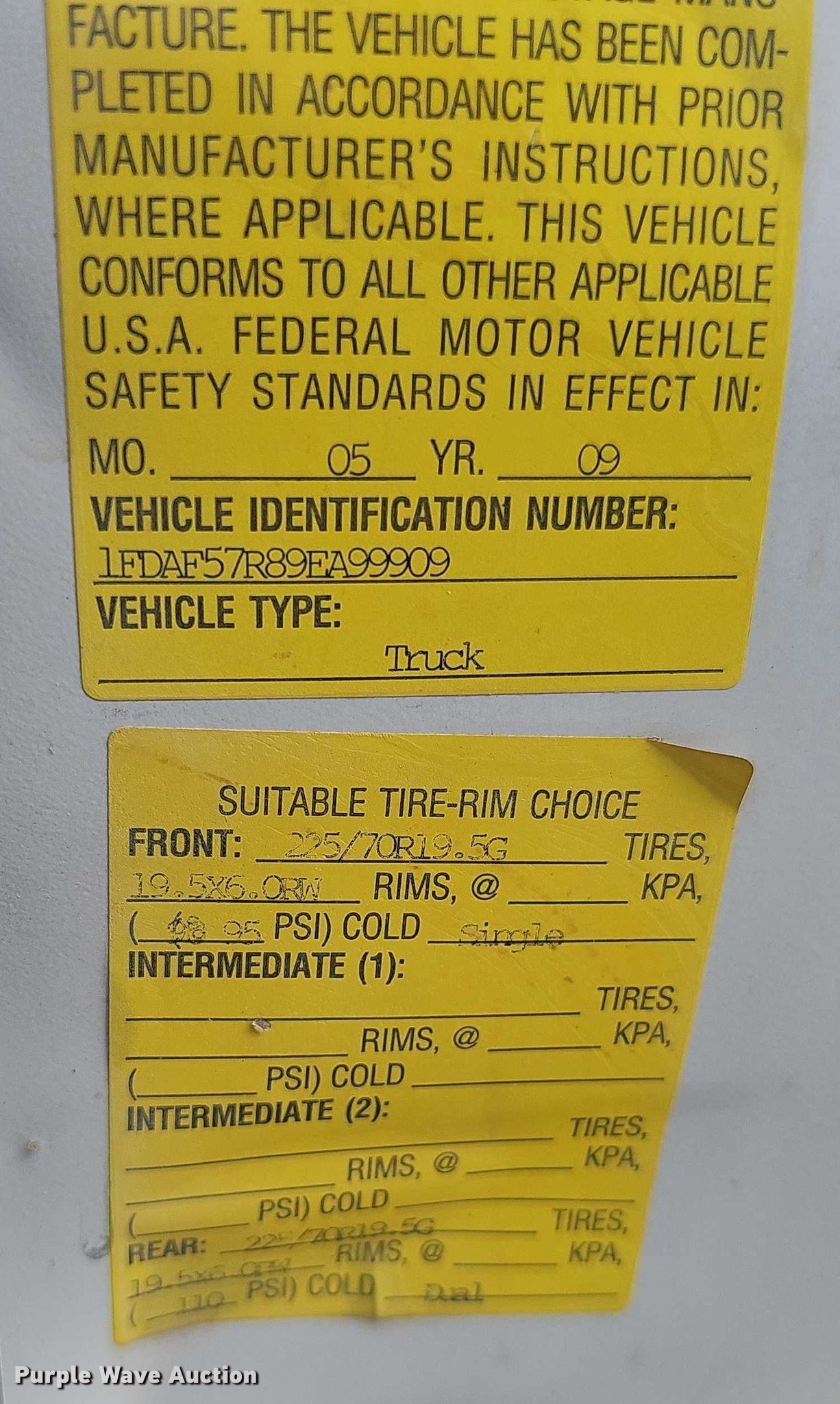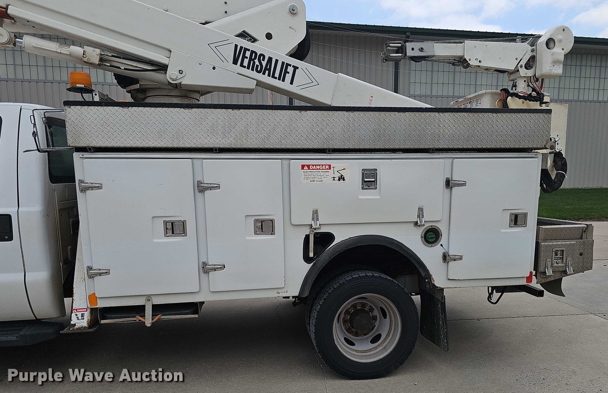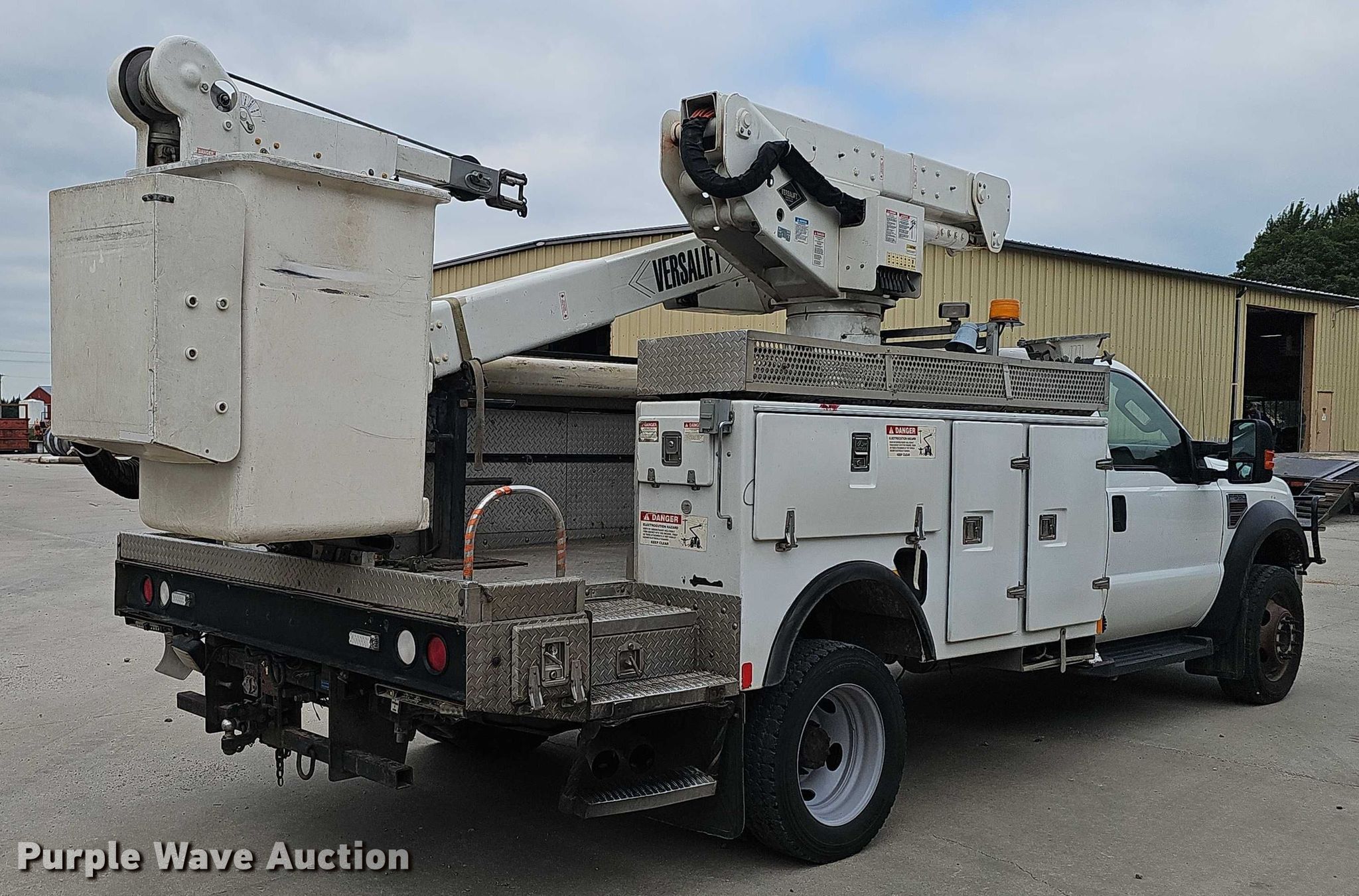2009 Ford F550 XL Super Duty bucket truck. Miles: 211,179 on odometer, Hours: 2,911 on meter, VIN: 1FDAF57R89EA99909. Engine Displacement: 6.4L, Cylinders: 8, Fuel type: Diesel. Transmission Automatic. Chassis Four wheel drive, Axles: Single, Suspension: Spring, Brakes: Hydraulic, PTO, GVWR: 19,500 lbs, Wheelbase: 165". Interior AC, Heat, Heated mirrors, Power windows, Power locks, Cruise control, Auxiliary controls. Features Bed Utility bed, Astoria, Serial: 88330904, Length: 12', Width: 94', Boom Versalift VST-01, Maximum lift capacity: 500 lbs, Boom type: Articulating, Insulated, Telescopic, Man basket, Boom controls Platform/ basket, Material handler, Certification valid through: 06/16/2026. Tires Size: 225/70R19.5. Notes Owners manuals. Nebraska title. Title distribution may be delayed up to 14 days from verification of funds. Butler Public Power District. David City, NE 68632