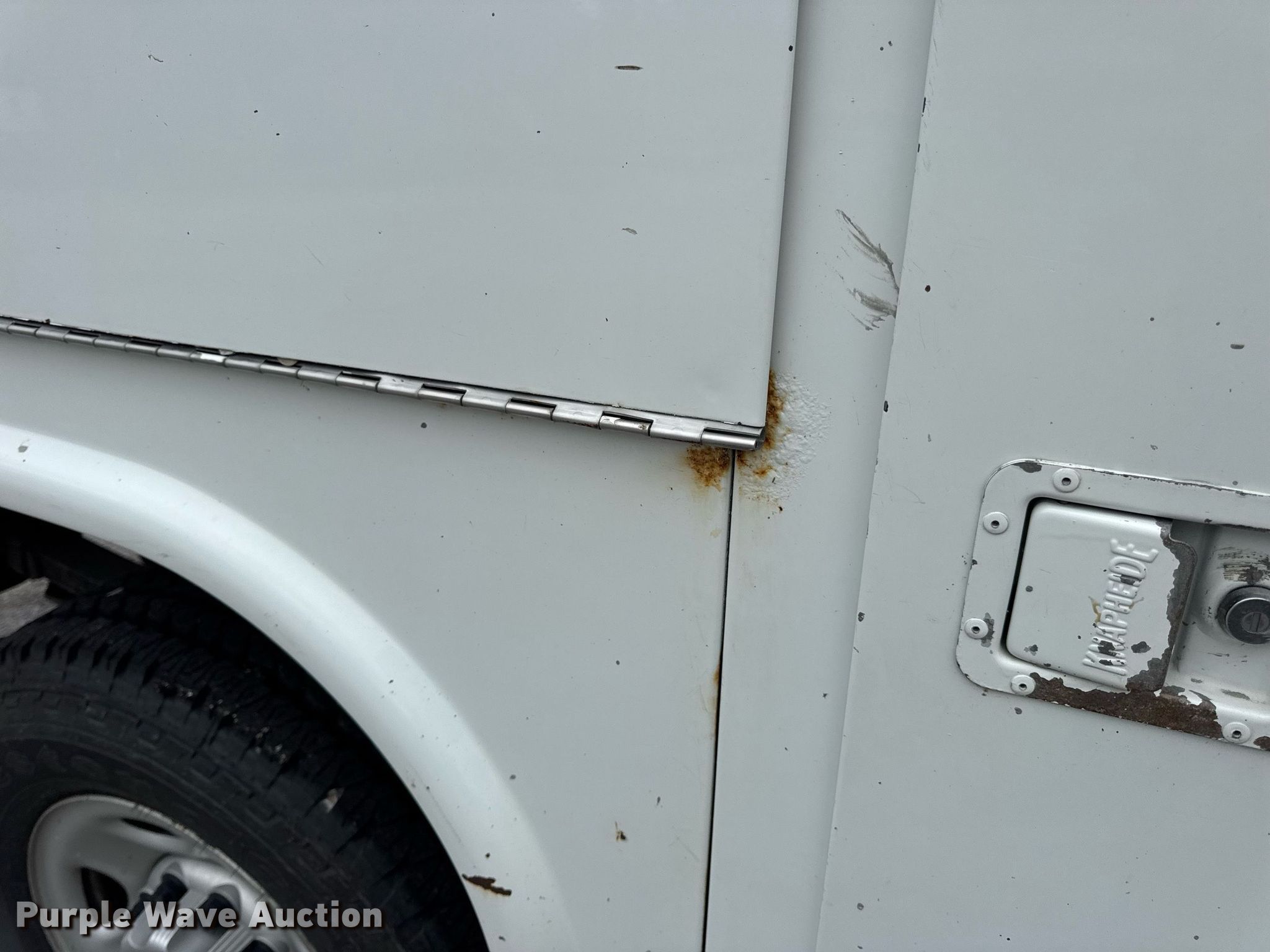 2006 Chevrolet Silverado 2500HD utility bed pickup truck. Miles: 117,781 on odometer, Hours: 13,396 on meter, VIN: 1GCHK24U76E231088. Engine Displacement: 6.0L V8 OHV, Cylinders: 8, Fuel type: Gas. Transmission Automatic, Four wheel drive. Interior AC, Heat, Power windows, Power locks, Cruise control, Brake controller. Features Bed Utility bed, Knapheide 596J, Serial: 20060207-0009253, Length: 8' 1", Width: 80". Tires Size: 245/75R16. Notes Hail damage. Missouri title. Title distribution may be delayed up to 14 days from verification of funds. City of Jefferson, MO. Jefferson City, MO 65101