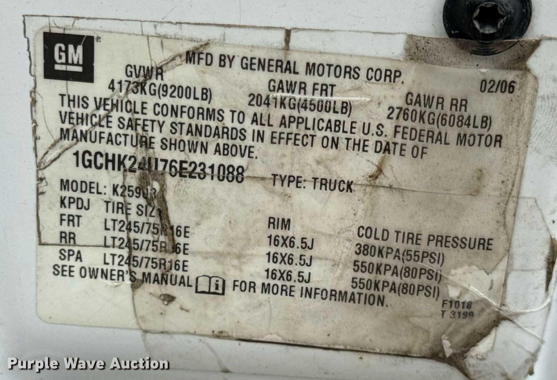 - VIN: 1GCHK24U76E231088