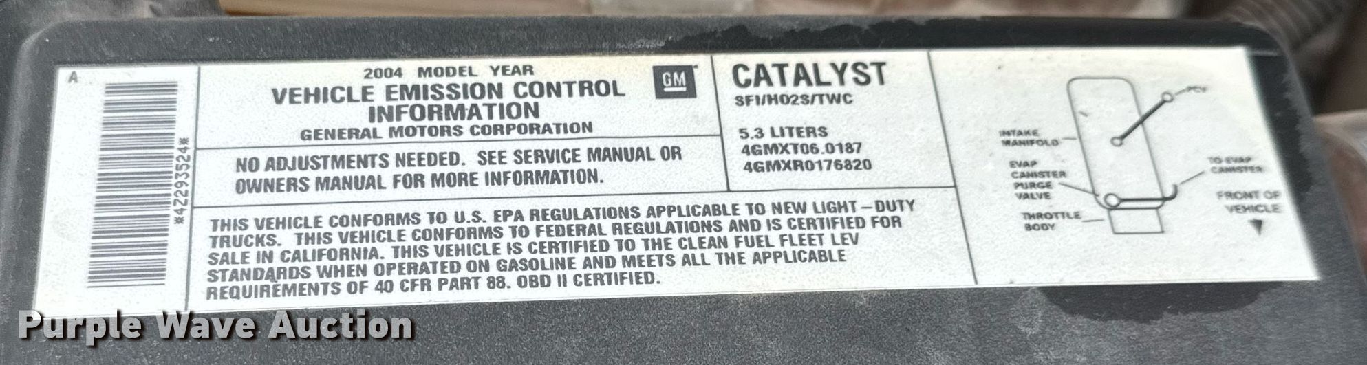 Take a look at this used 2004 Chevrolet Silverado 1500 Ext. Cab pickup truck being sold on September 2nd, 2025 in the SOLD! September 02 Government Auction made by Chevrolet. Take a look at all of the item information below or take a look at similar auctions for Pickups and Vans.