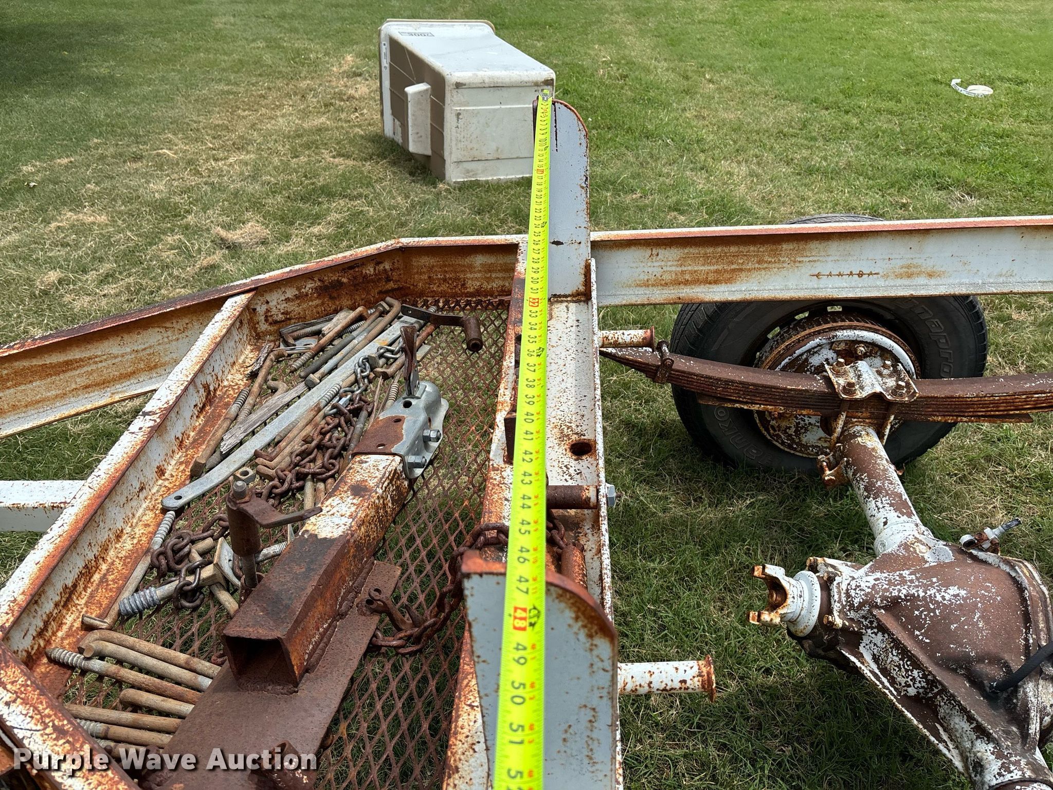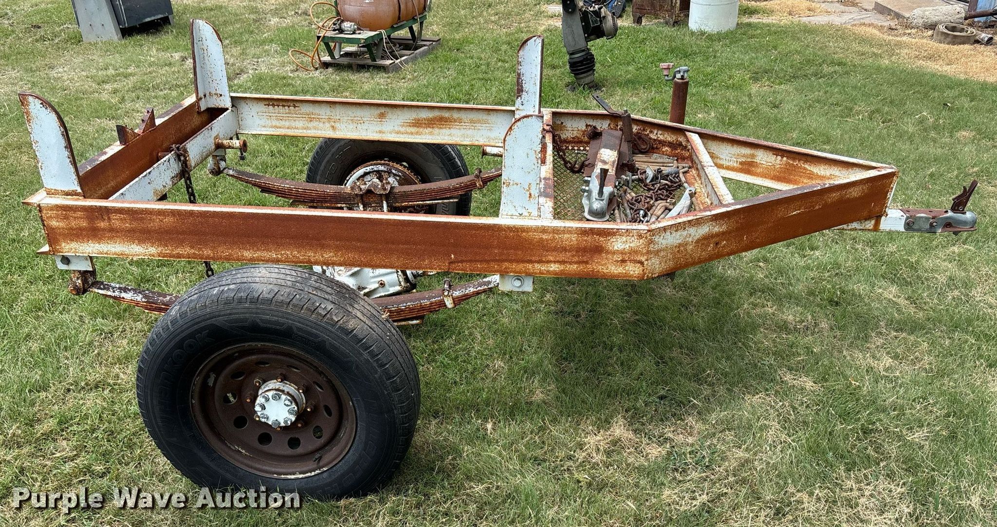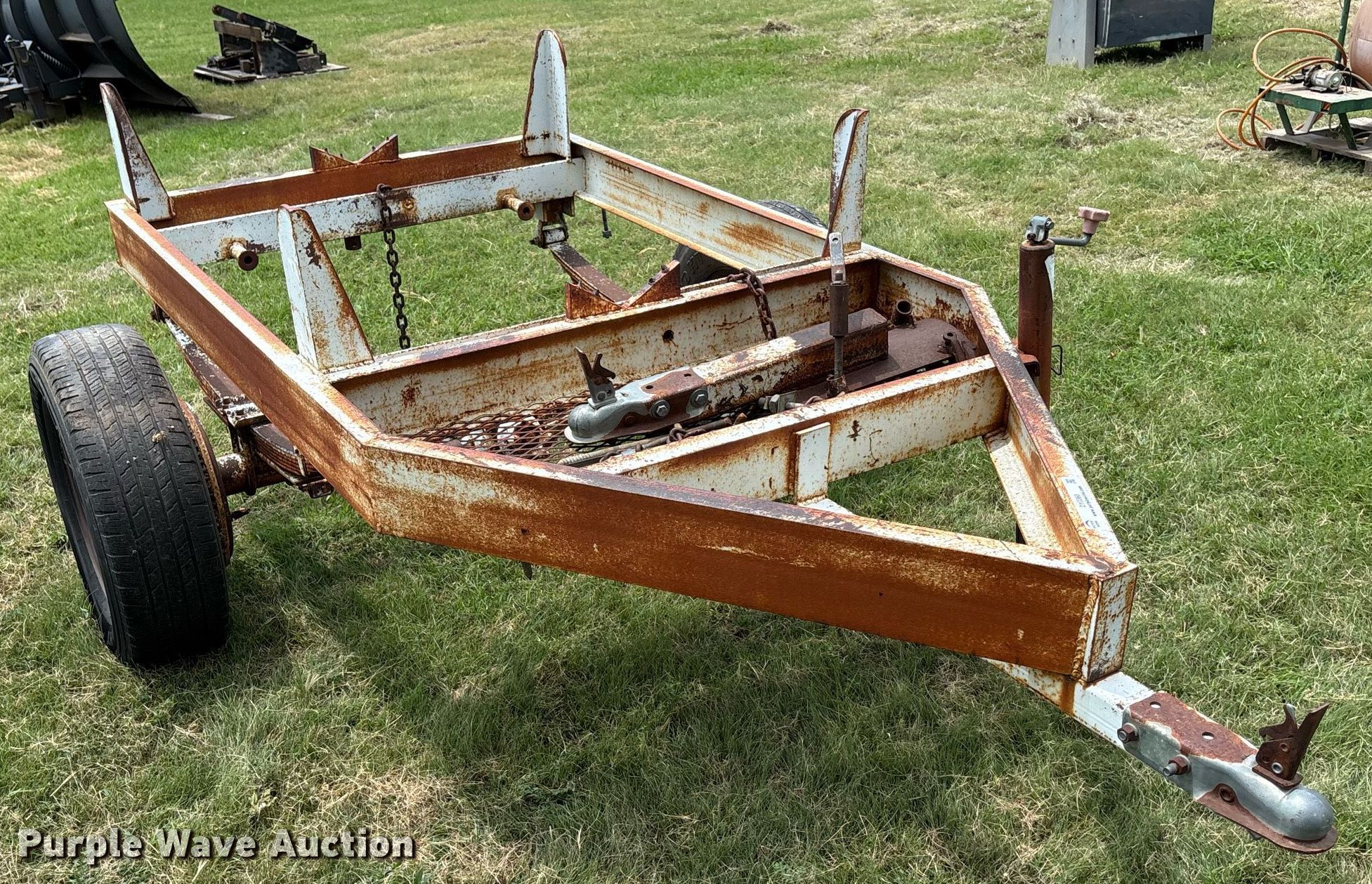 Purple Wave is selling a used Trailer Other in Kansas. This item is a Shop built pipe trailer with the following: Overall, Length: 9' 6", Width: 76", Deck, Length: 56", Width: 50"