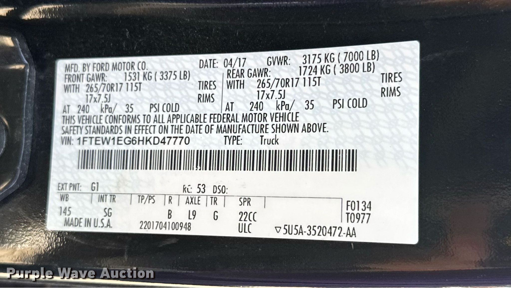 Purple Wave is selling a used 1/2 Ton Pickup or Van in Missouri. This item is a 2017 Ford F150 SuperCrew pickup truck with the following: Miles: 110,161 on odometer, Hours: 5,046 on meter, VIN: 1FTEW1EG6HKD47770