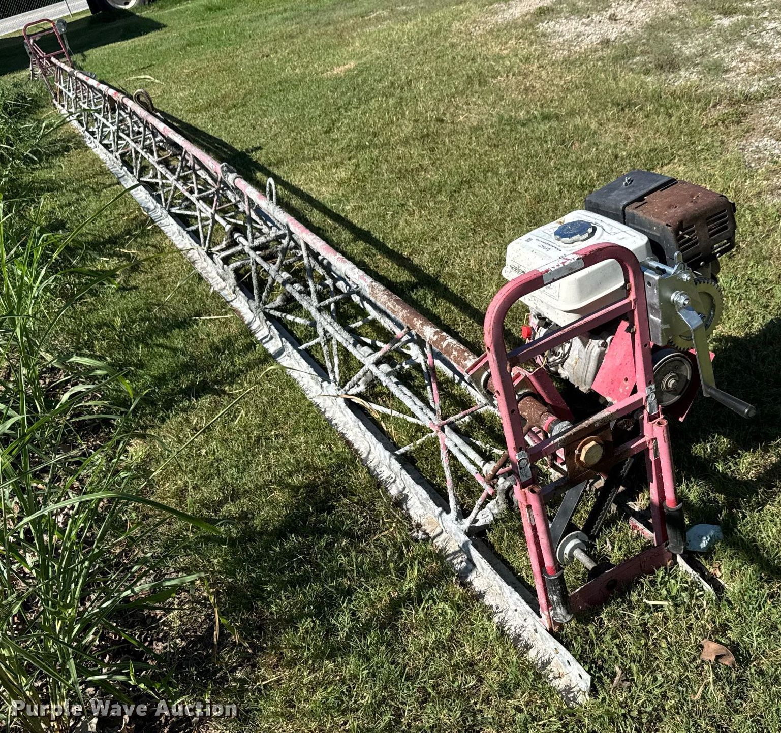 Concrete power screed. Engine. Cylinders: 1, Fuel type: Gas. Features Length: 30', Additional section Length: 8'. Notes Non-operational unit. Taney County, MO. Kissee Mills, MO 65680