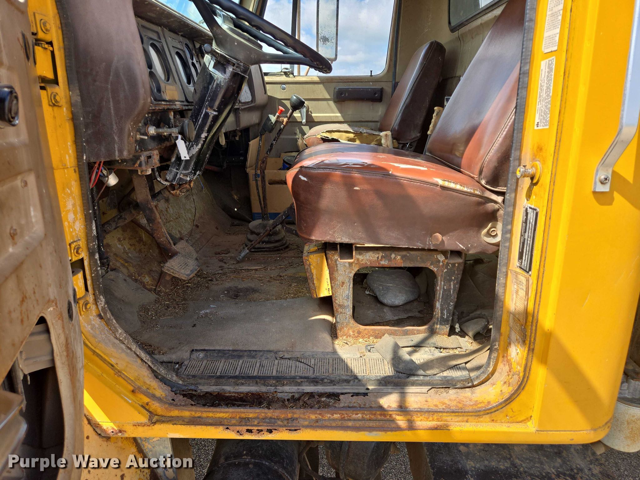 1979 International 1854 dump truck. Miles: 177,891 on odometer, VIN: AA185JHA32777, Unit #: DF072. Engine Caterpillar 3208, Cylinders: 8, Fuel type: Diesel. Transmission Manual, Speed: 5, plus 2. Chassis Axles: Single, Suspension: Spring, Brakes: Hydraulic, Front mount PTO. Interior Heat. Features Bed Dump bed, Length: 10' 5", Width: 89", Side height: 24", Bed type: Steel, Ram: Dual, End gate: Manual. Tires Size: 9.00R20. Notes Hydraulic pump issues, needs replaced, Rust damage. South Dakota title. Title distribution may be delayed up to 14 days from verification of funds. State of South Dakota. Brookings, SD 57006