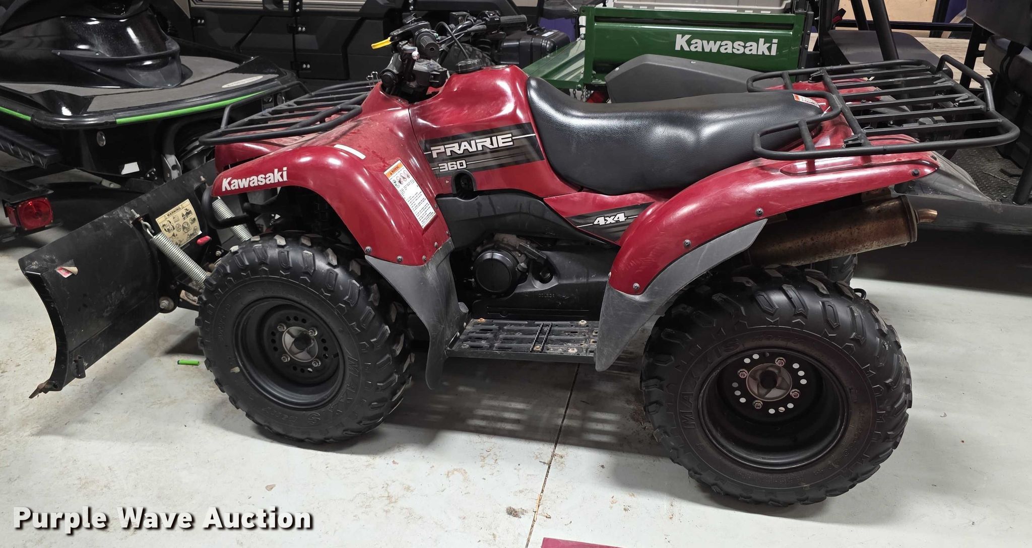 Purple Wave is selling a used ATV in Kansas. This item is a 2010 Kawasaki Prairie 360 ATV with the following: VIN: JKBVFHA19AB583111