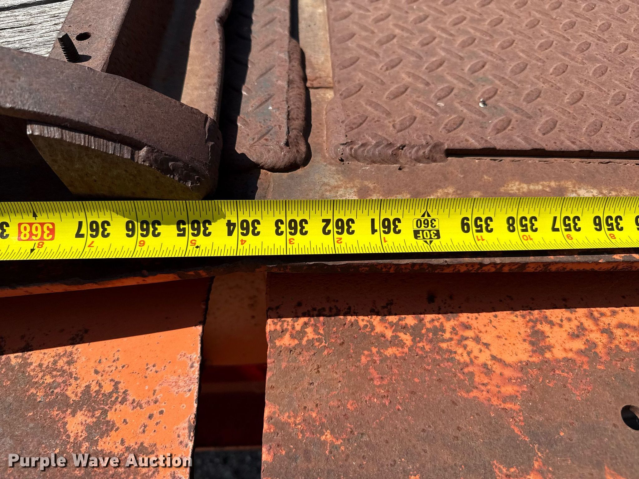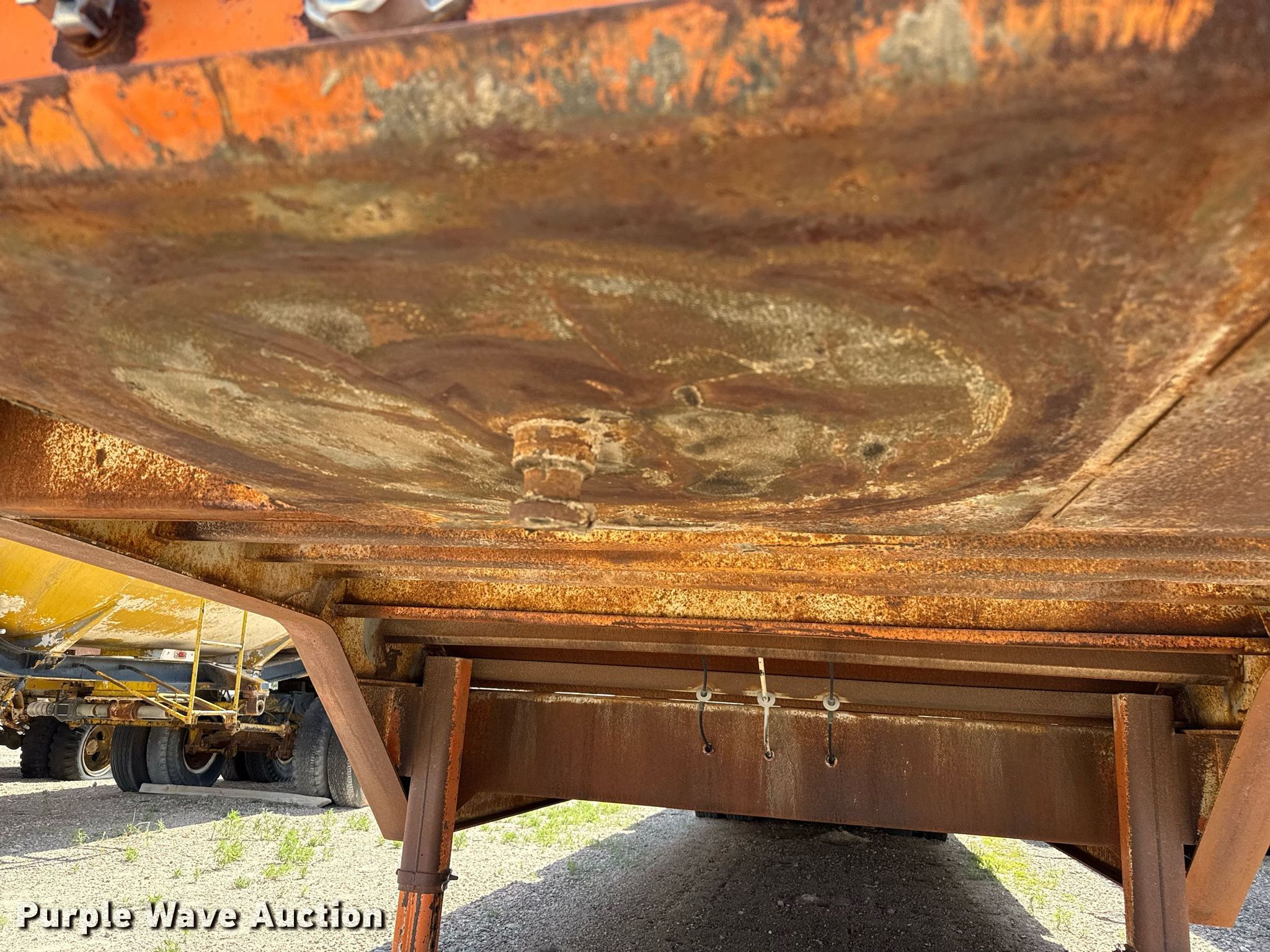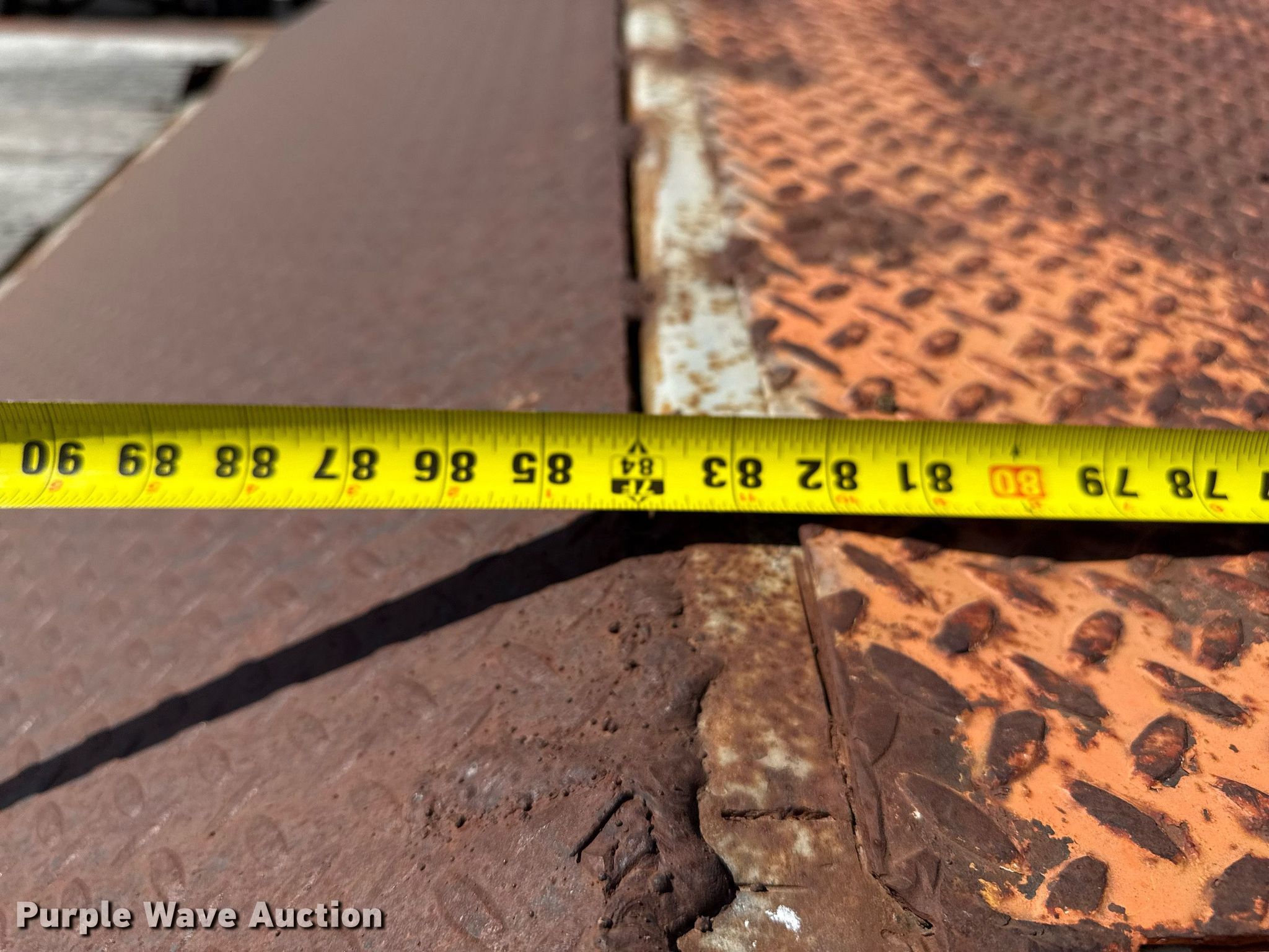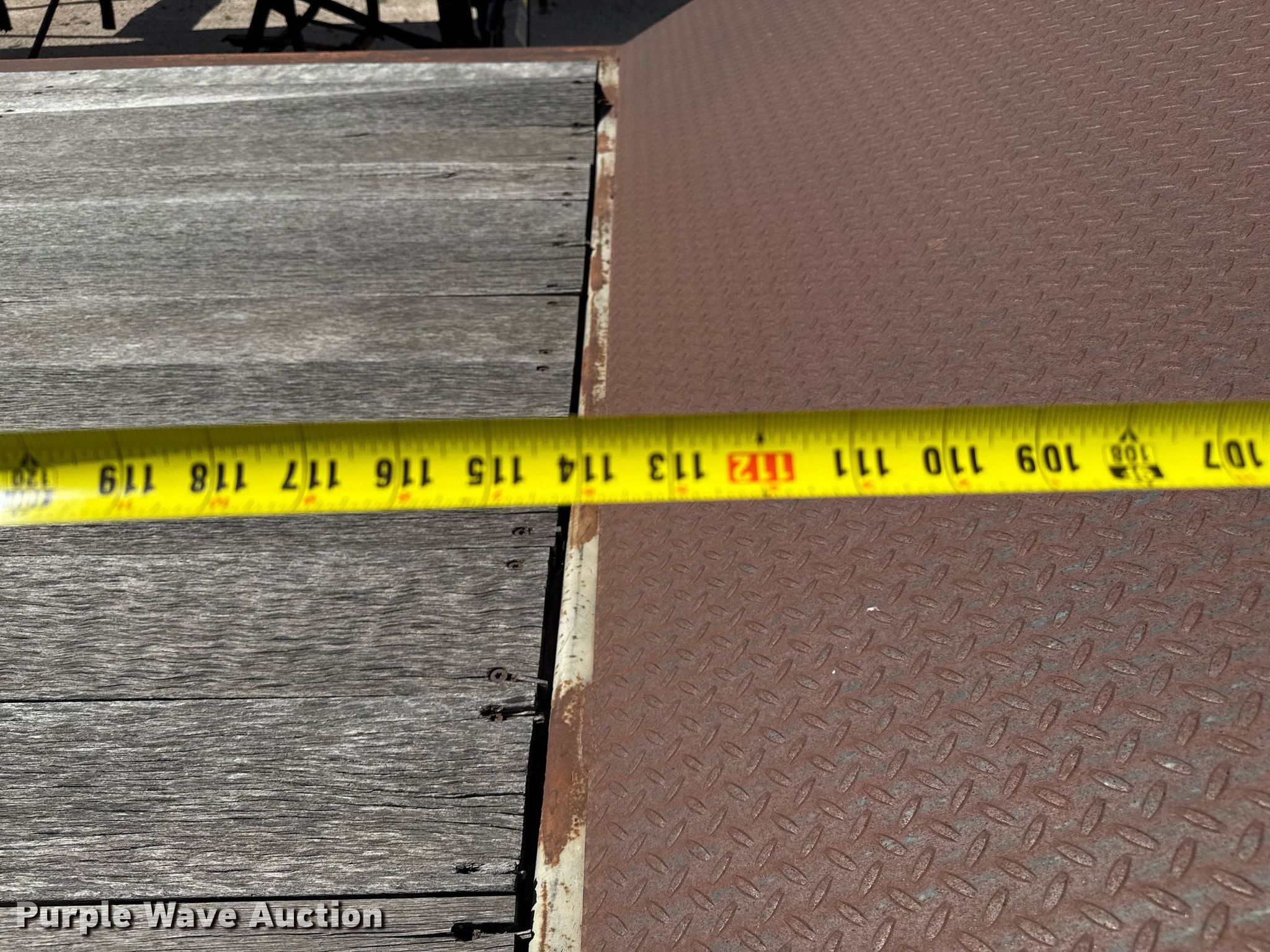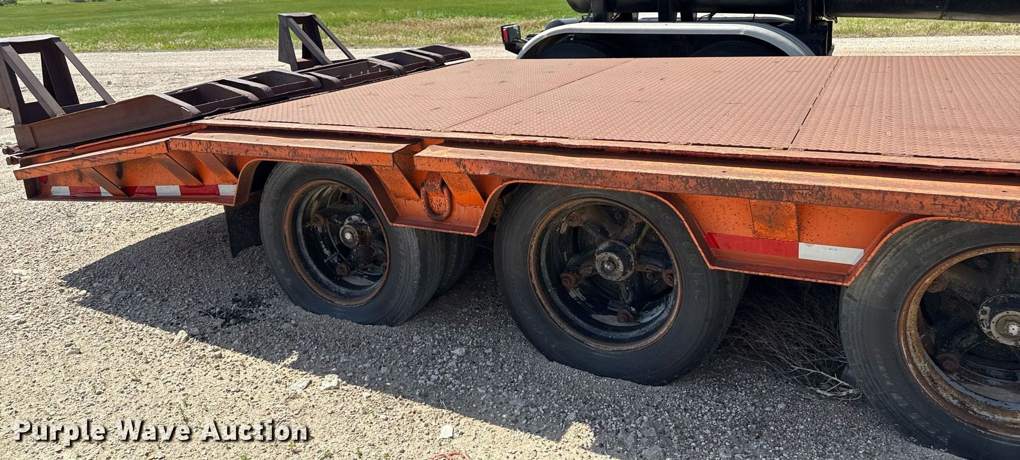 1987 Trail King TK80-4560 drop deck equipment trailer. VIN: 1TKJ0453XHM069287. Dimensions Overall: 45' L x 112" W, Deck: 30' L x 102" W, Top deck length: 7', Tail length: 5', Ramps: Manual Length: 5'. Features Deck type: Steel, Wood. Chassis Landing gear: Dual, Suspension: Spring, Brakes: Air, Axles: Triple, GVWR: 94,000 lbs. Tires Steel wheels, Size: 255/70R22.5. Kansas title. Title distribution may be delayed up to 14 days from verification of funds. Ford County Road & Bridge. Dodge City, KS 67801