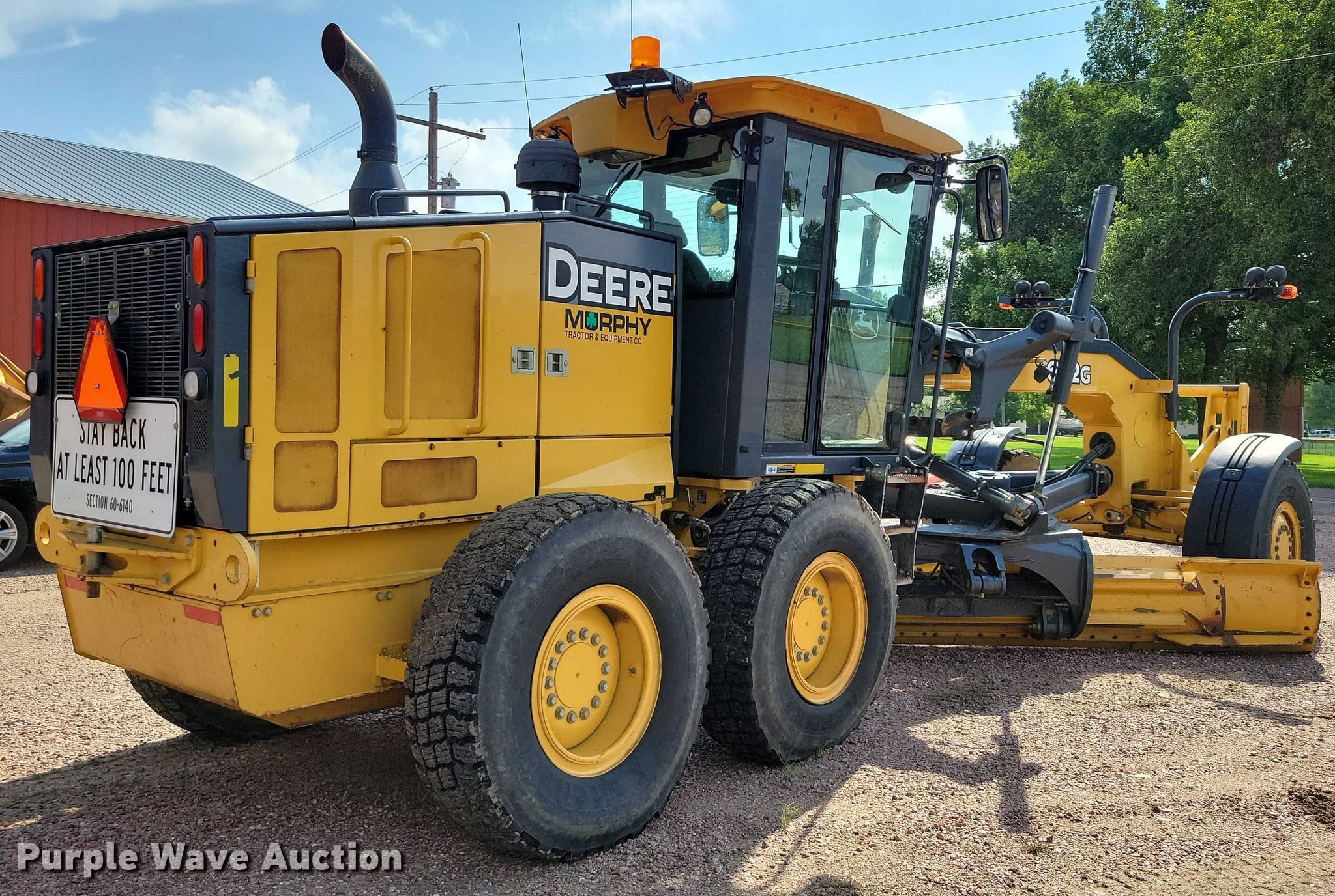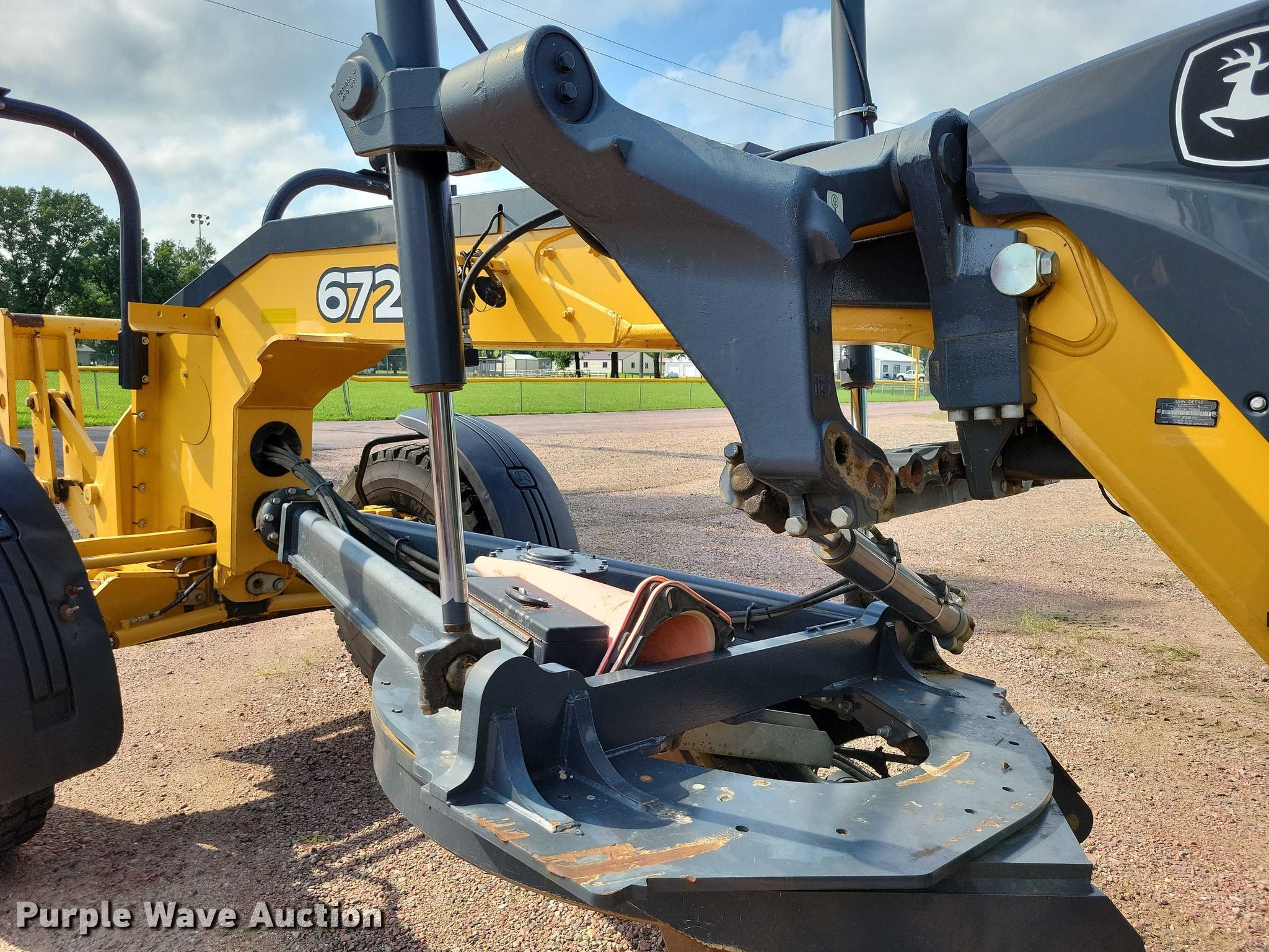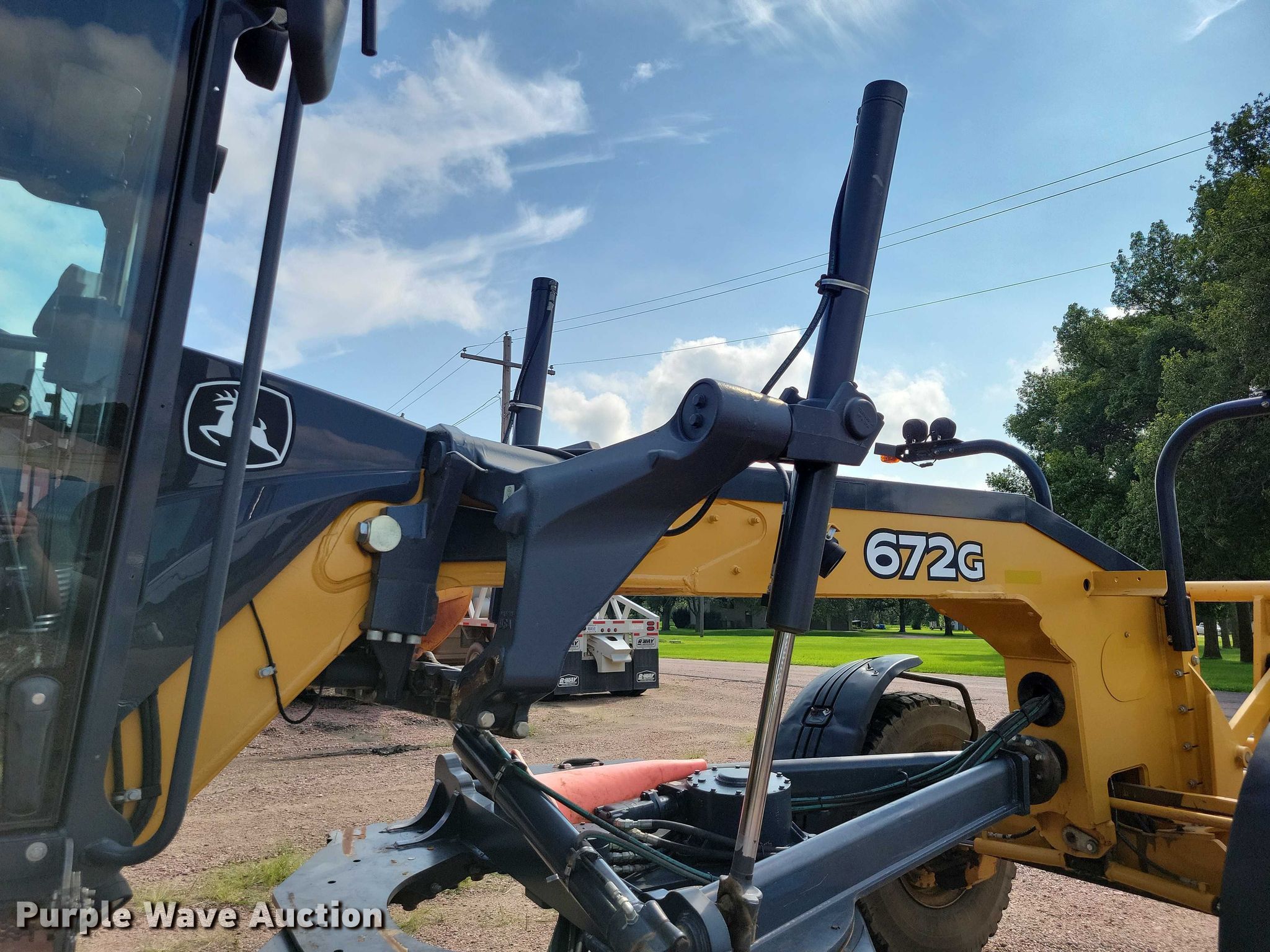Purple Wave is selling a used Motor Grader in Nebraska. This item is a 2014 John Deere 672G motor grader with the following: Hours: 3,849 on meter, Serial: 1DW672GXLDE656338