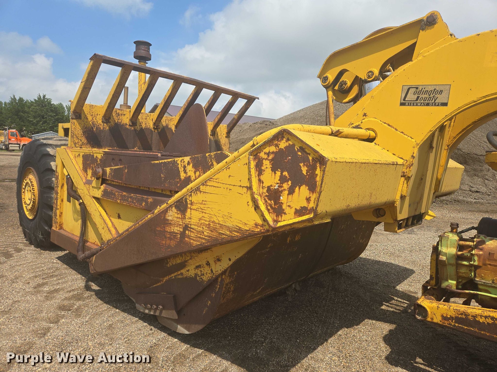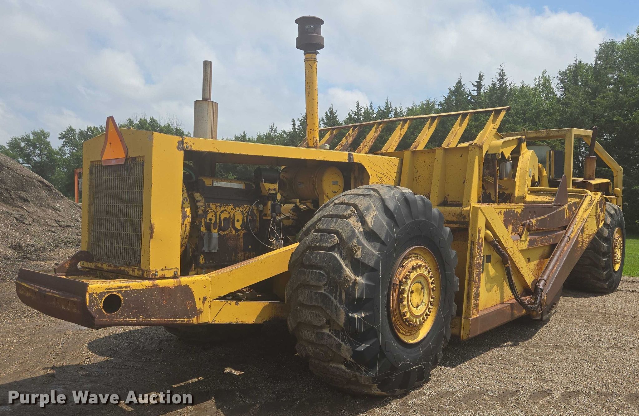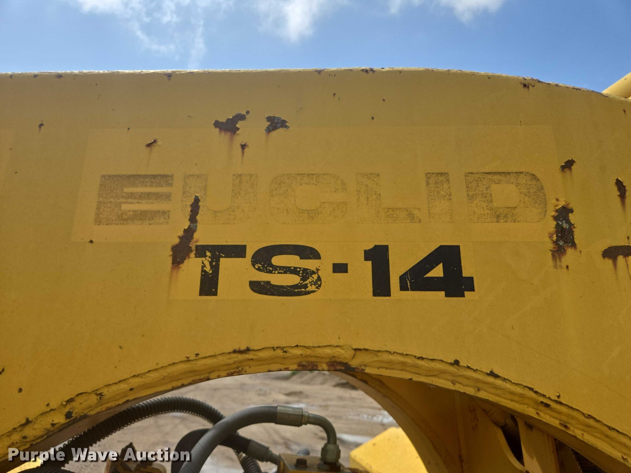 1965 Euclid TS-14 scraper. Hours: 1,766 on meter, Serial: 39702. Engine Detroit Diesel, Cylinders: 4, Fuel type: Diesel. Second engine Detroit Diesel, Cylinders: 4, Fuel type: Diesel. Transmission Powershift, 4F - 2R. Chassis Brakes: Air. Operators station OROPS. Features Bowl capacity: 14 cu.yd., Cable lift, Scraper controls: Lever controls No. of controls: 3, Rear push block. Tires Size: 29.5-25. Notes Additional parts included, Possible secondary engine issues, injectors need replaced. Codington County, SD. Watertown, SD 57201