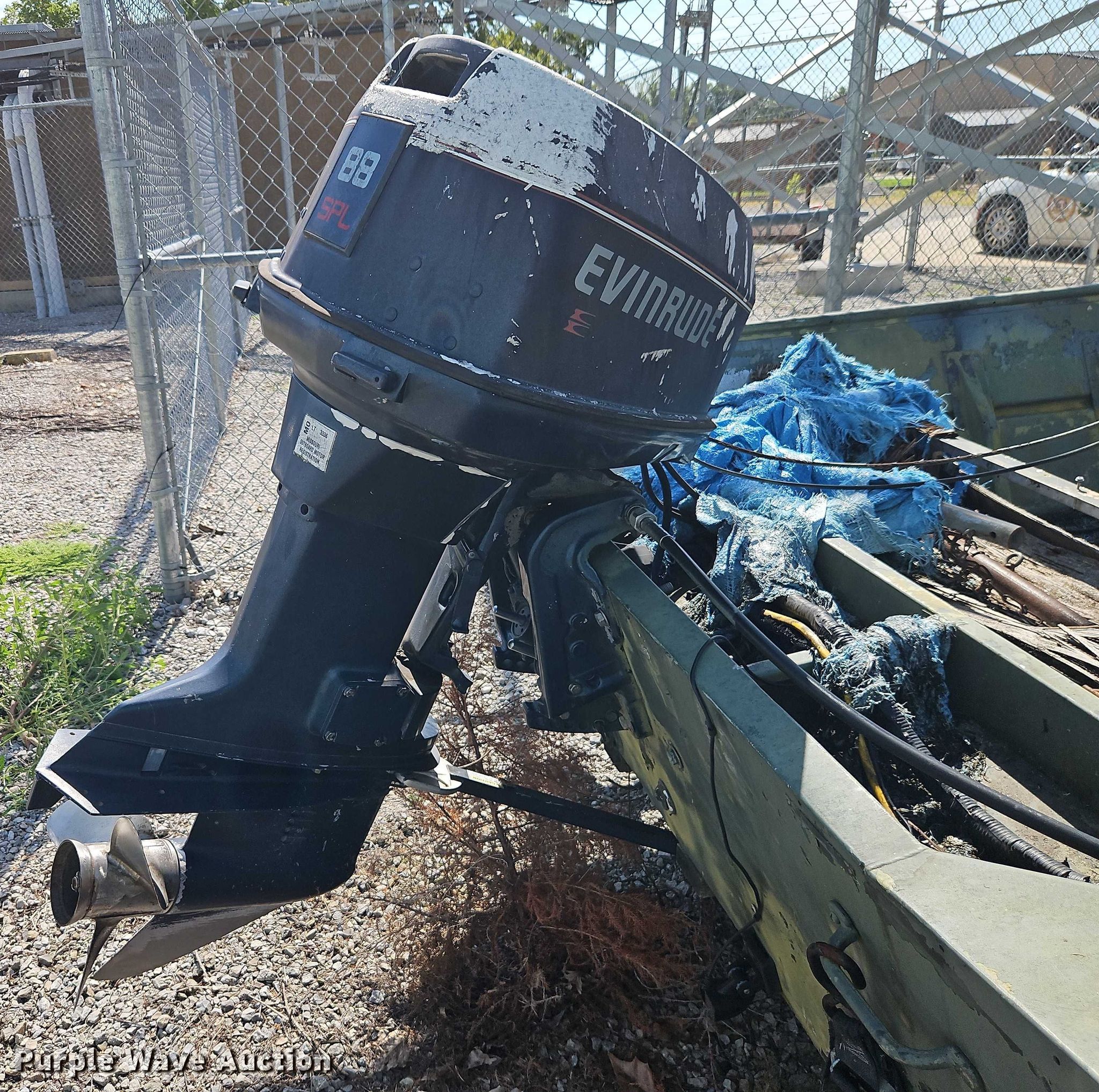 1987 Lowe boat. Length: 16', Hull ID: LWN25372A787. Engine Engine type: Outboard, 1990 Evinrude E88MSLESA, Serial: R08558027, Cylinders: 4, Fuel type: Gas, HP: 88, Outdrive Propeller: Stainless steel. Trailer 2004 Shop built, VIN: MOHMTRAILER010065, Overall length: 20', Overall width: 90", Ball hitch size: 2", Axles: Single, Tire size: 175/80R13. Notes Dead battery, Unknown operating condition. Boat: Missouri title. Outboard motor: Missouri title. Trailer: Missouri title. Title distribution may be delayed up to 30 days from verification of funds. Henry County, MO. Clinton, MO 64735