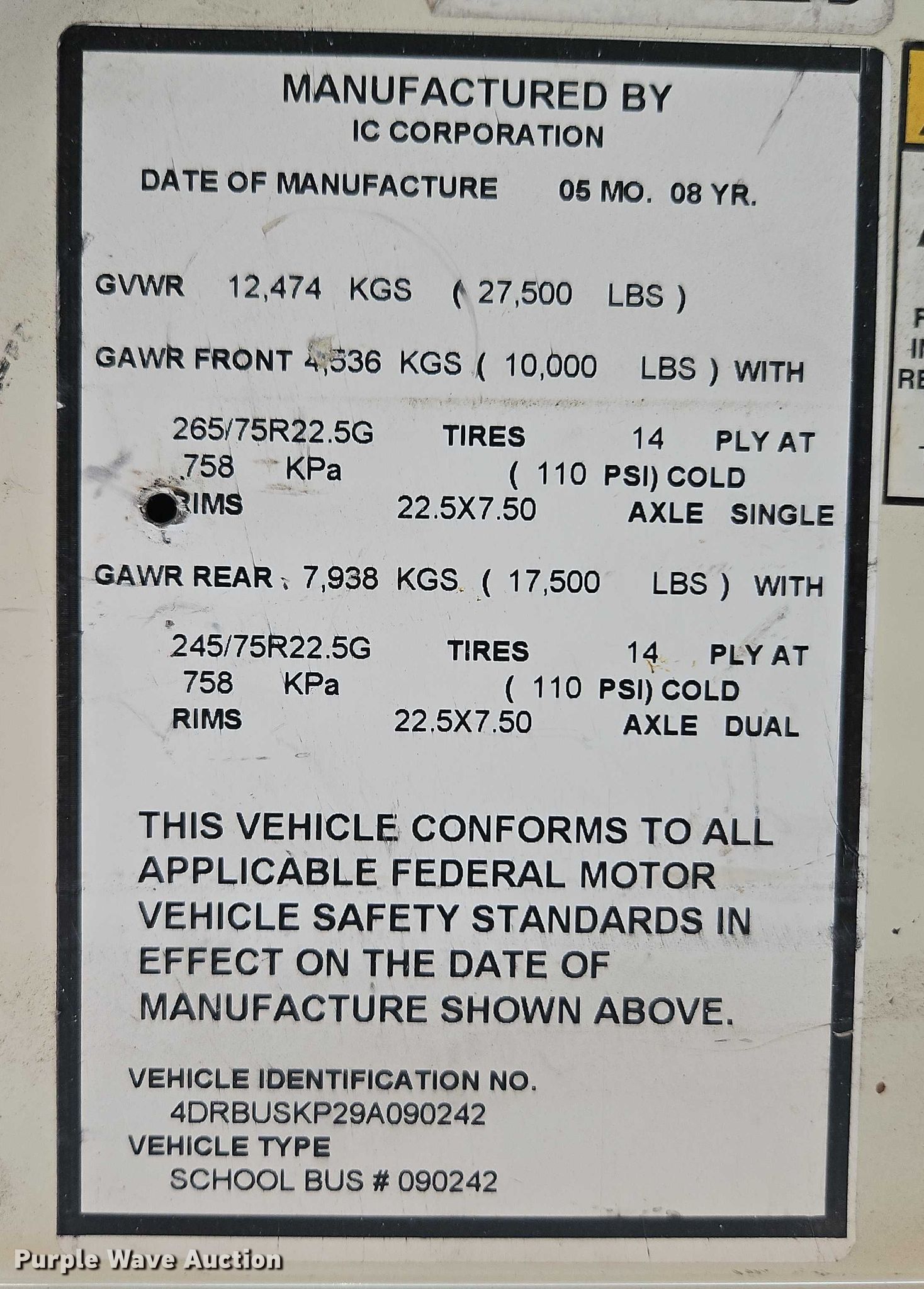 Purple Wave is selling a used Bus in Kansas. This item is a 2009 IC Corporation PB10500 school bus with the following: Miles: 128,665 on odometer, Hours: 6,143 on meter, VIN: 4DRBUSKP29A090242