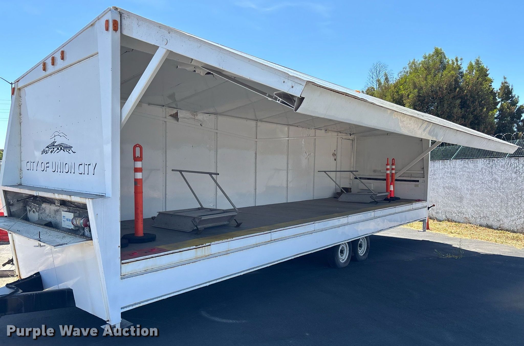 1967 WENGR stage Trailer. Serial: 1313. Dimensions Overall Length: 32', Width: 94". Features Deck type: Wood. Chassis Landing gear: Single, Suspension: Torsion, Brakes: Electric, Axles: Tandem. Tires Steel wheels, Size: ST225/75R15. Notes Platform crank issues, will not extent stage. California title. Title distribution may be delayed up to 30 days from verification of funds. City of Union City. Union City, CA 94587