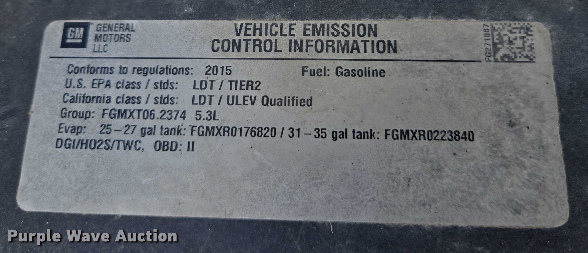 2015 Chevrolet Silverado 1500 Crew Cab pickup truck. Miles: 114,818 on odometer, Hours: 8,564 on meter, VIN: 3GCUKREC3FG271867. Engine Displacement: 5.3L V8 OHV, Cylinders: 8, Fuel type: Gas. Transmission Automatic, Four wheel drive. Interior AC, Heat, Power windows, Power locks, Cruise control, Backup camera. Tires Size: 265/70R17. Utah title. Title distribution may be delayed up to 30 days from verification of funds. Iron County, UT. Cedar City, UT 84721