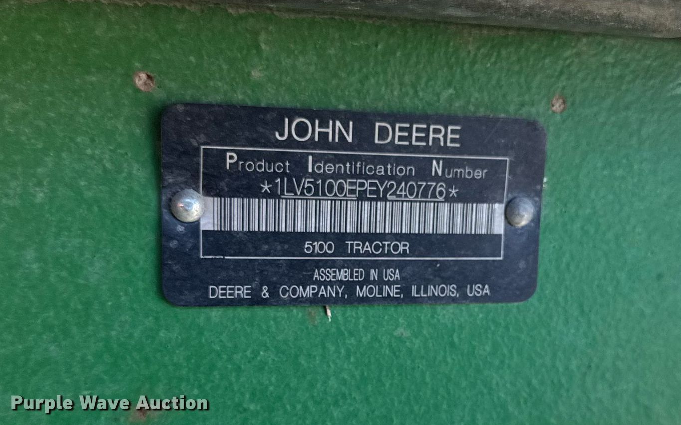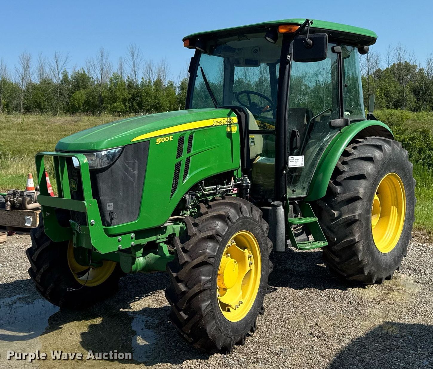 Purple Wave is selling a used Tractor in Iowa. This item is a 2014 John Deere 5100E MFWD tractor with the following: Hours: 1,689 on meter, Serial: 1LV5100EPEY240776