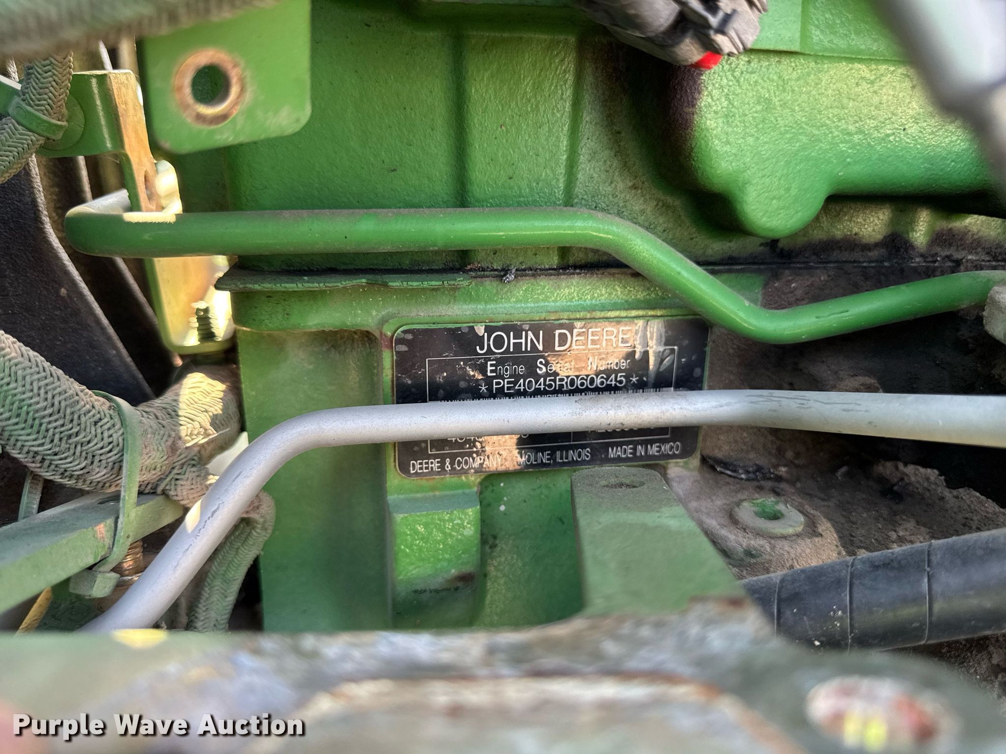 2014 John Deere 5100E MFWD tractor. Hours: 1,689 on meter, Serial: 1LV5100EPEY240776. Engine John Deere 4045HLV69, Displacement: 4.5L, Cylinders: 4, Fuel type: Diesel. Transmission Synchro, 12F - 12R, Left-hand reverser. Operators station AC, Heat. Features PTO: 540, Three point Top link, Seven pin outlet, Hydraulic remote sets Front: 3, Rear: 3, Loader ready, Loader John Deere H430, Quick attach, Controls: Joystick, Bucket Width: 87".. Tires Front: 12.4-24, Rear: 18.4-30, Wheel weights: 4. Notes Loader removed but included, Non-operational engine, disassembled Parts may be missing, Non-operational unit. Jasper County, IA. Newton, IA 50208