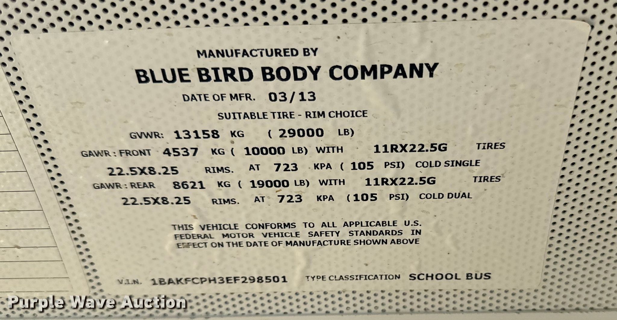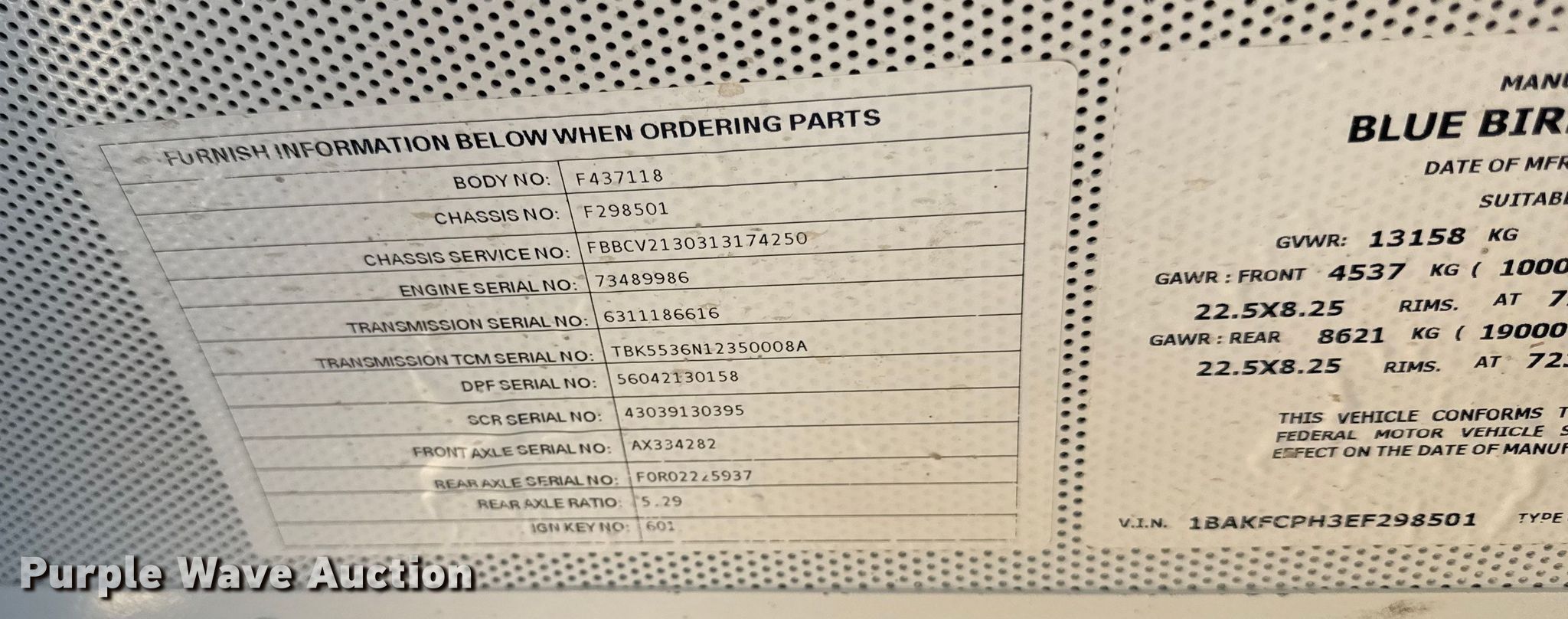 - VIN: 1BAKFCPH3EF298501