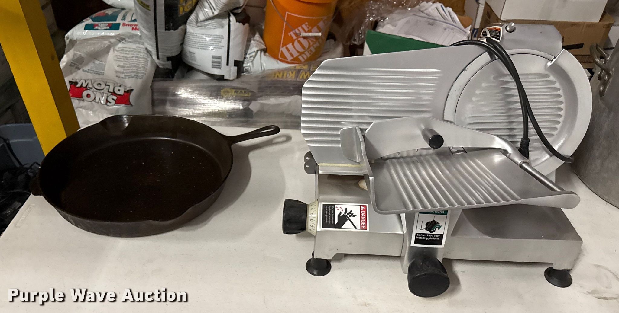 Kitchen equipment. Alliance warmer, Meat slicer, Pots, Scales. Notes Unknown operating condition. USD 247. Cherokee, KS 66724