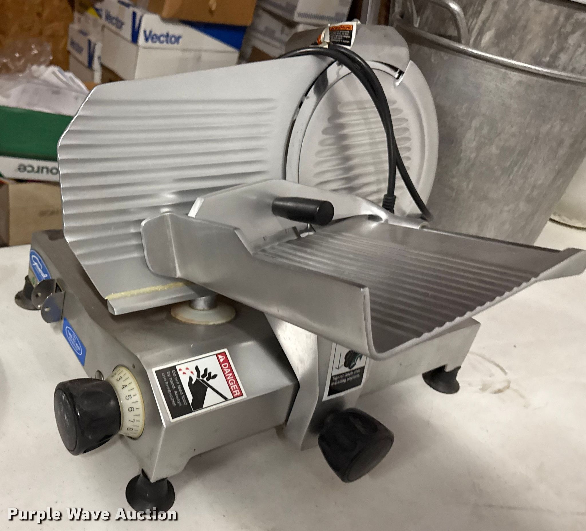 Purple Wave is selling a used Restaurant Equip. in Kansas. This item is a Kitchen equipment with the following: Alliance warmer, Meat slicer, Pots, Scales