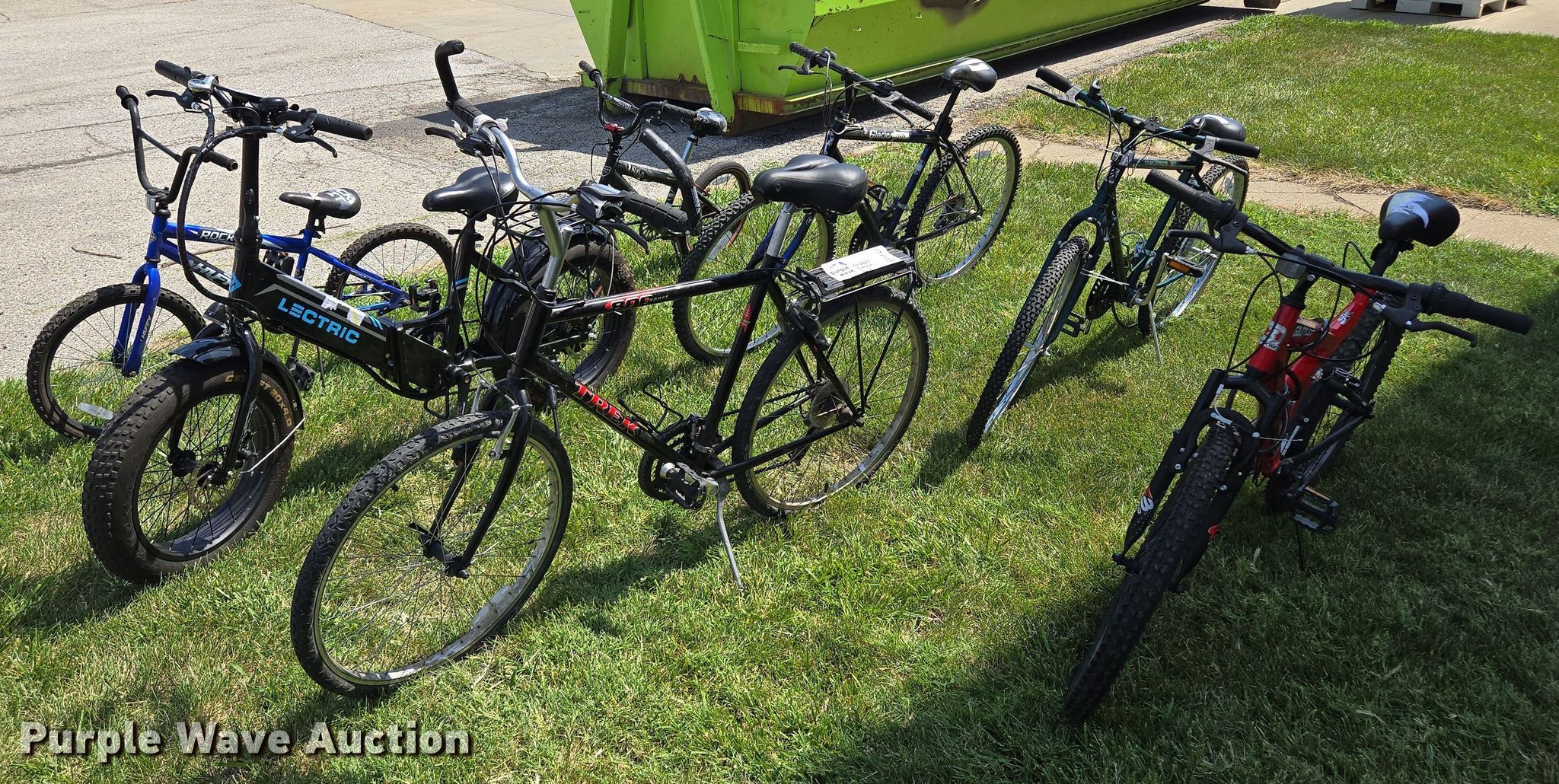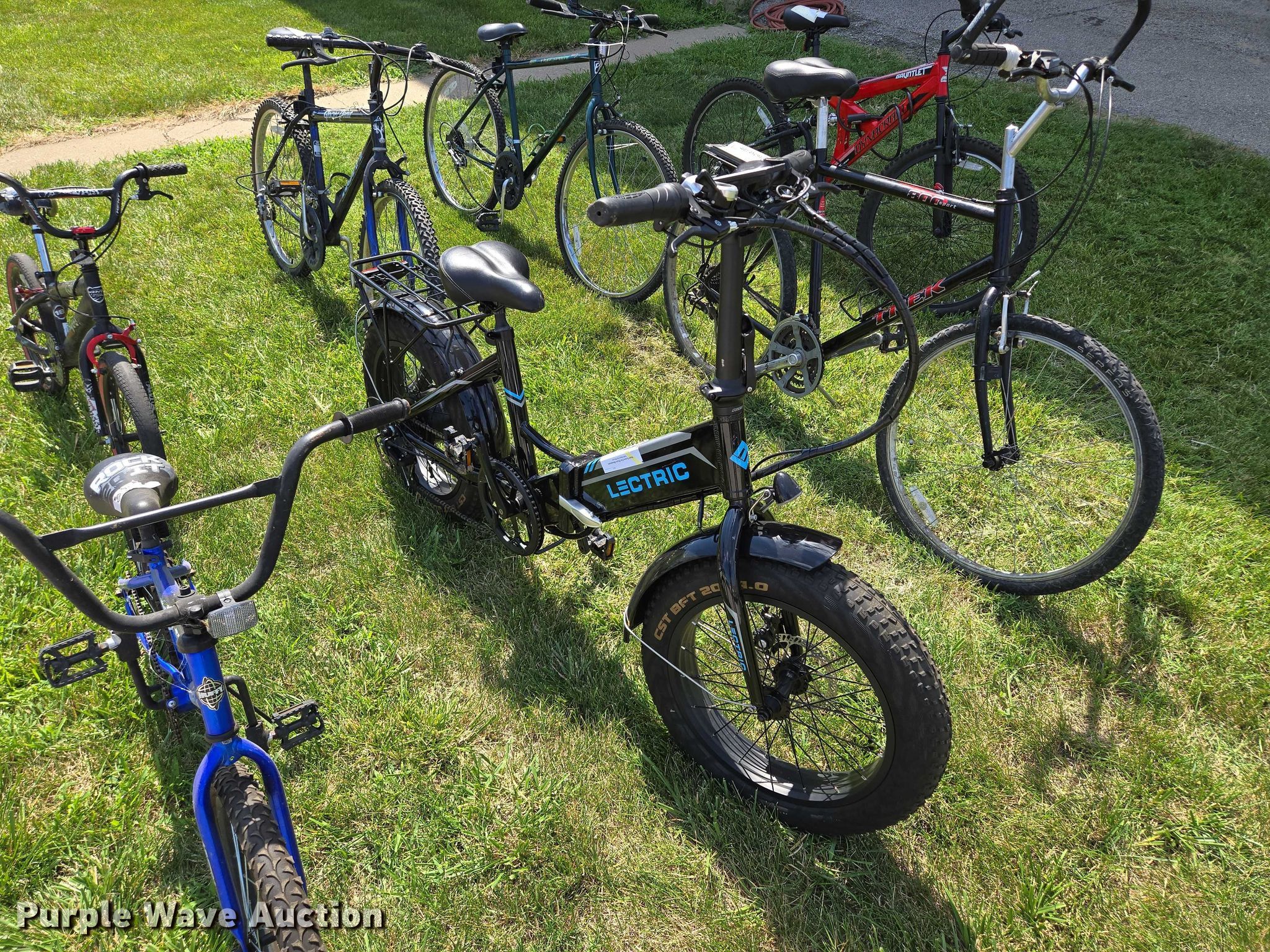 Purple Wave is selling a used Sporting Goods in Missouri. This item is a 7 bicycles with the following: Dynacraft gauntlet, Highland free spirit, Trex 800 sport, Huffy, Lectric electric bike, (2) children's bikes