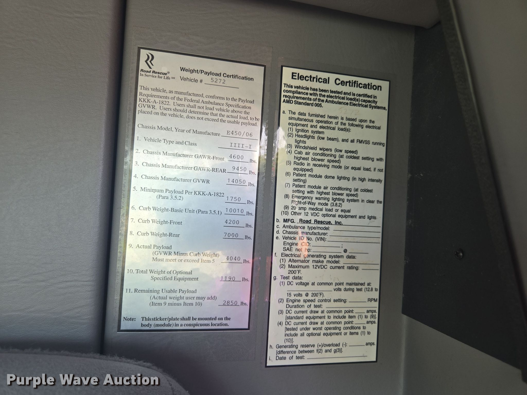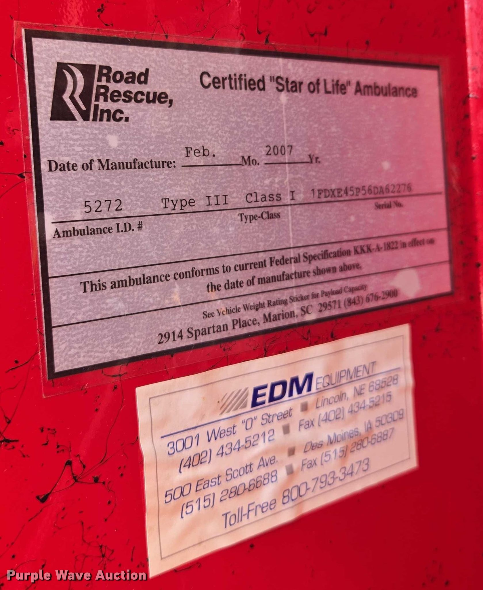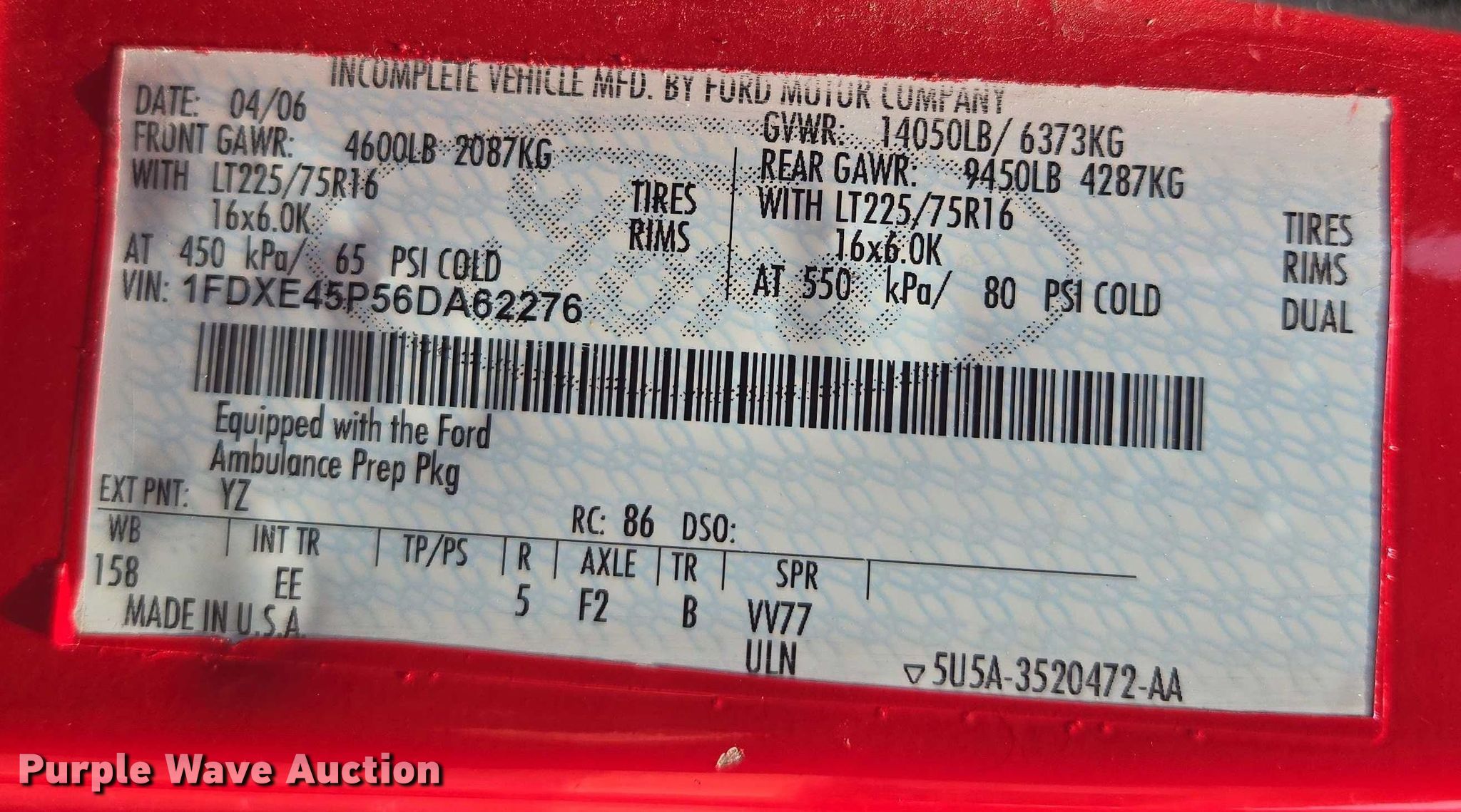 Purple Wave is selling a used Fire Truck or Emergency Vehicle in Missouri. This item is a 2006 Ford E450 ambulance with the following: Miles: 69,118 on odometer, VIN: 1FDXE45P56DA62276