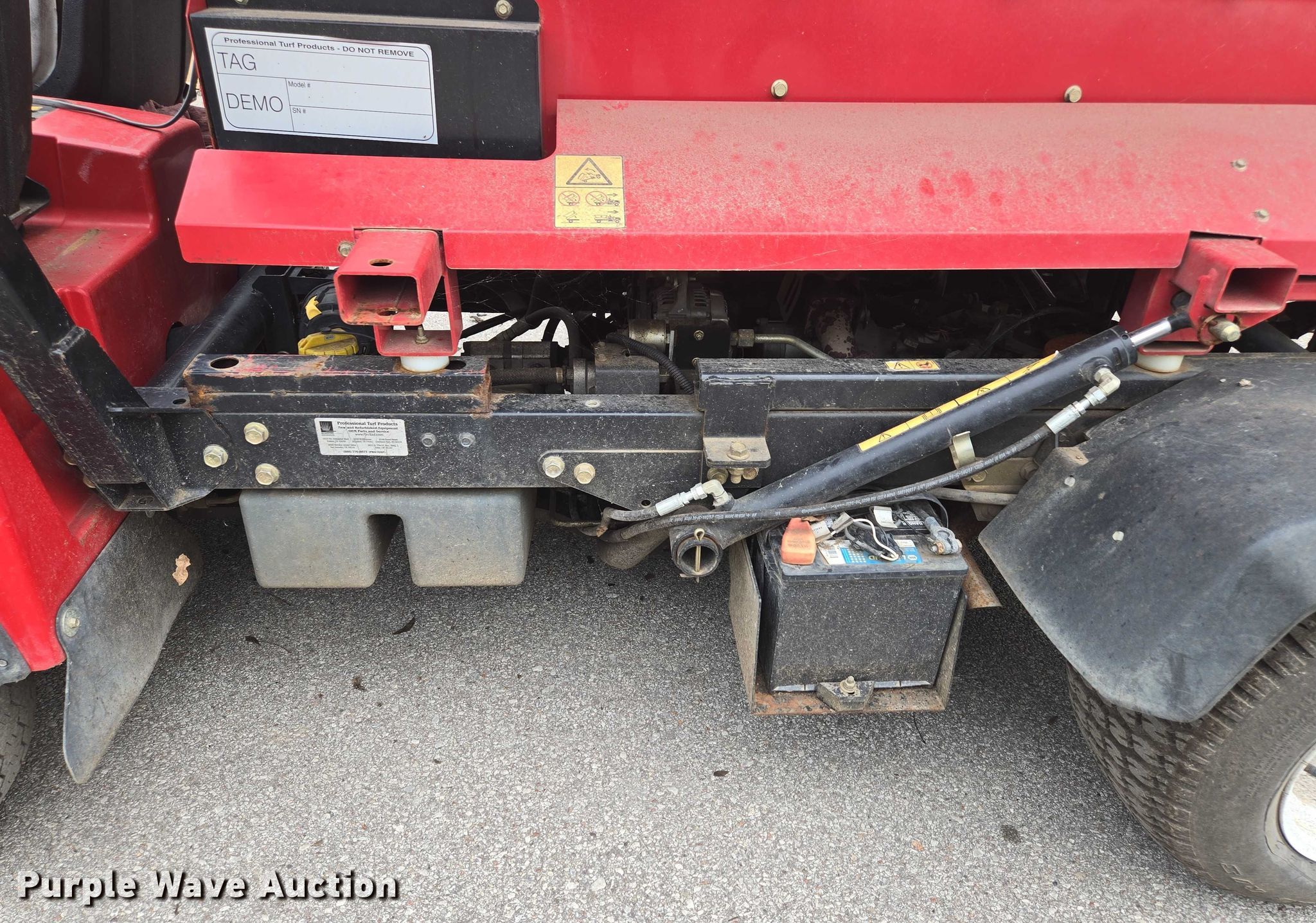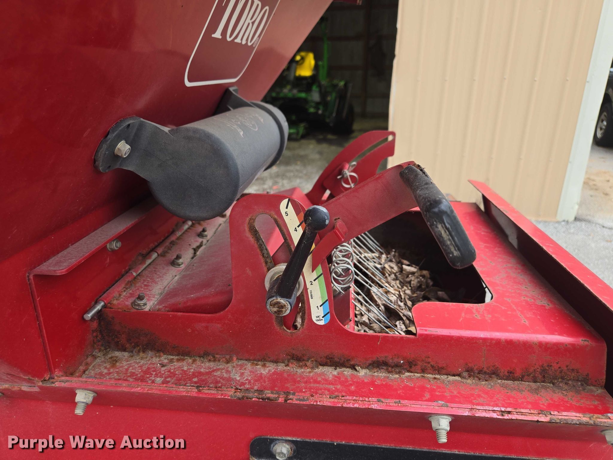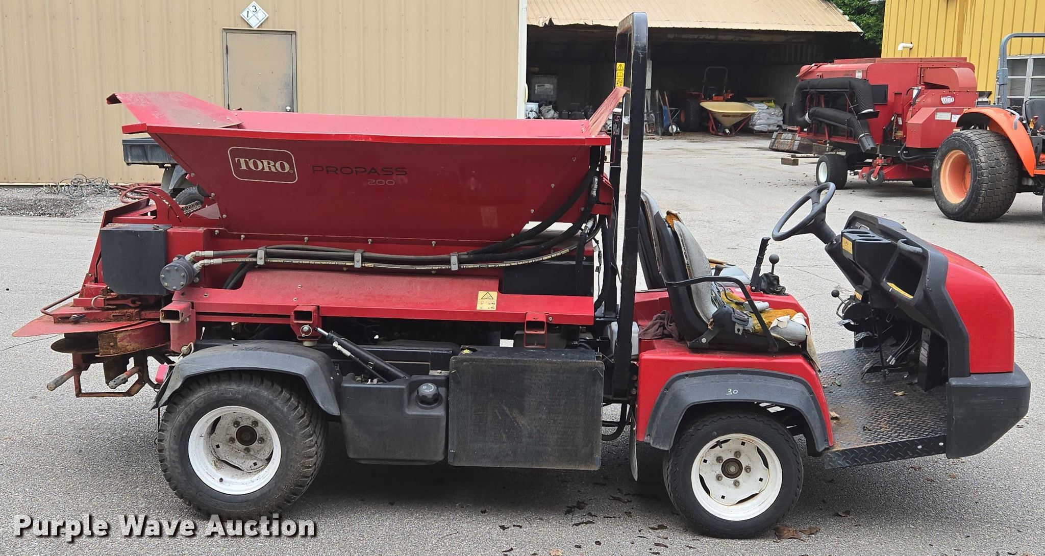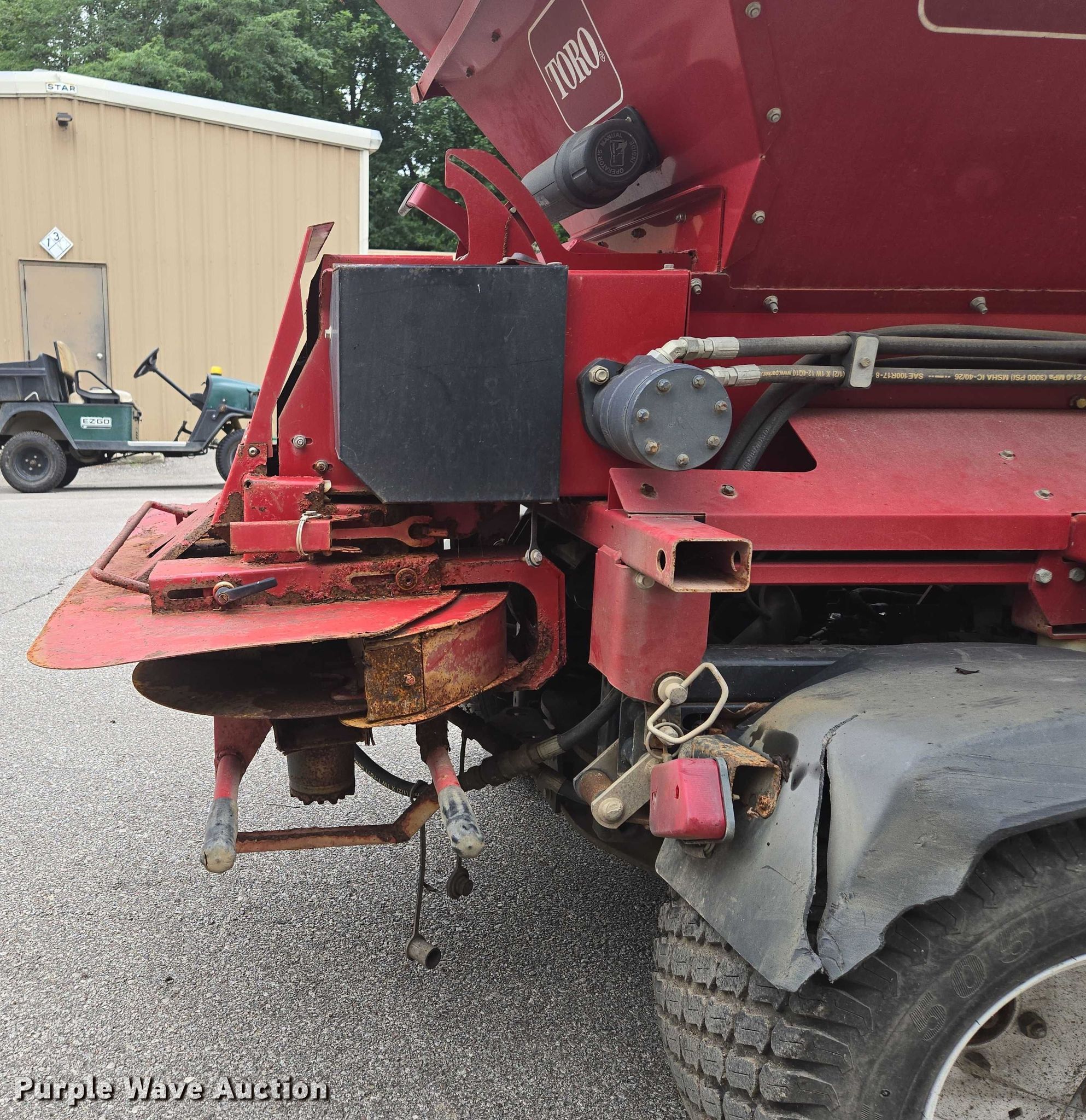 Toro Workman utility vehicle. Hours: 3,407 on meter, Hours: 1,644 on second meter Actual hours unknown, Serial: 07367-311000199. Engine Daihatsu DM950G, Displacement: 953 cc, Cylinders: 3, Fuel type: Gas, Electric start. Transmission Manual, Speed: 3. Operators station OROPS. Features Dump bed 69" L x 48" W, Dump bed type: Electric/ Hydraulic, Top dresser Toro Propass 200, Spinners: Dual, Hydraulic dump. Tires Front: 20x9.00-12, Rear: 24x12.00-12. Notes Hour meter has been replaced. Transfer of ownership documentation will be a bill of sale. Shoal Creek Golf Course. Kansas City, MO 64156