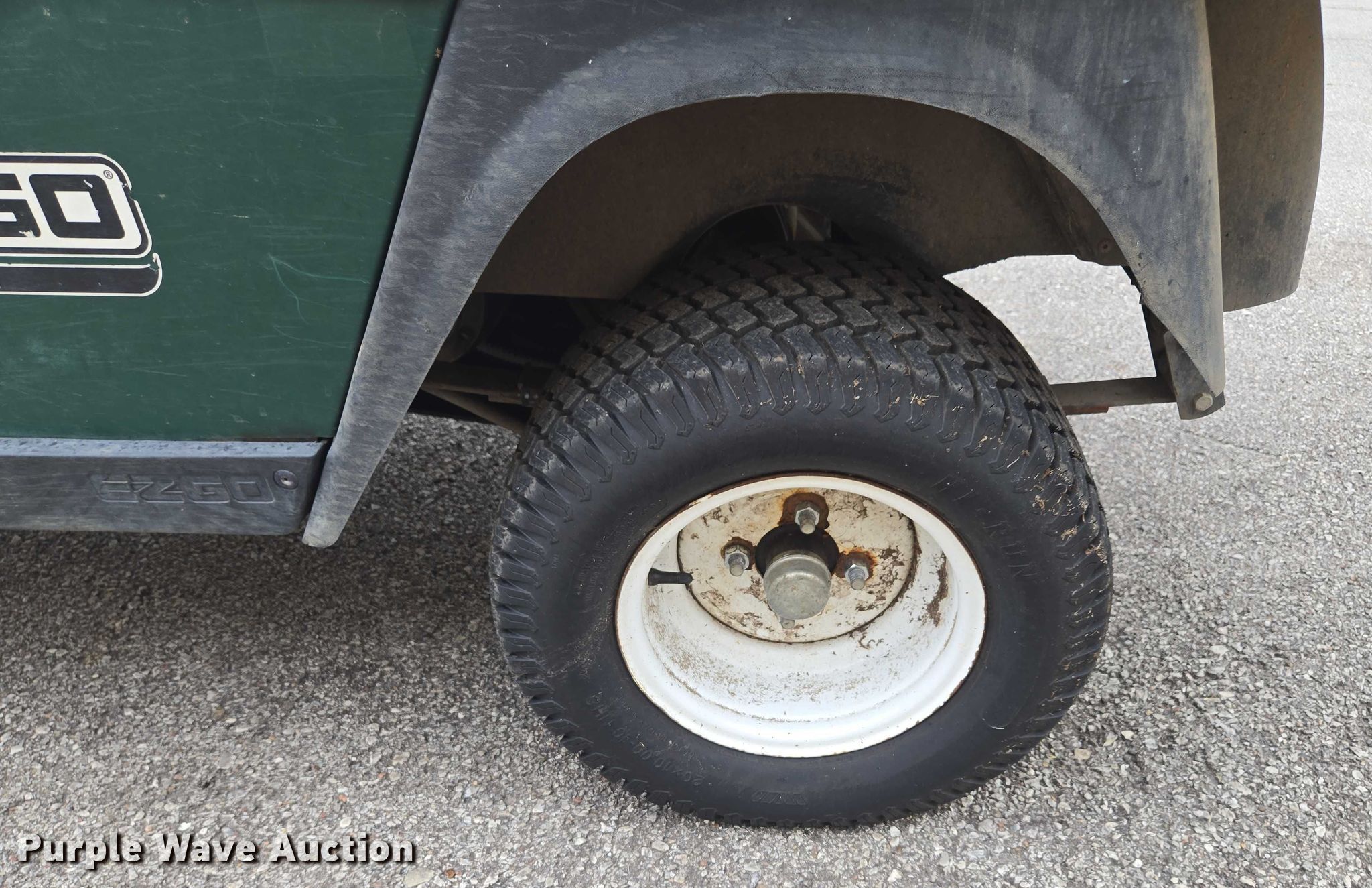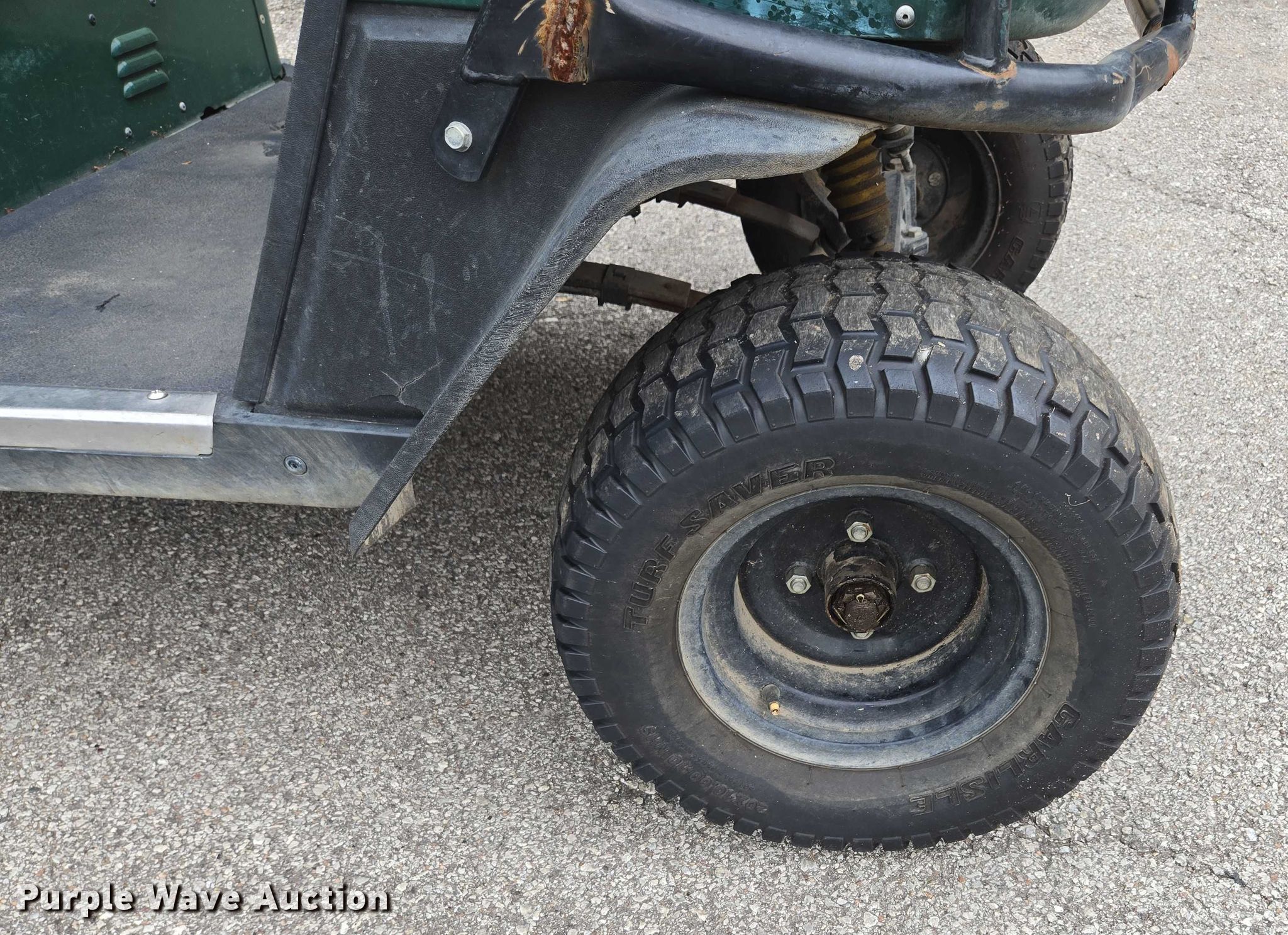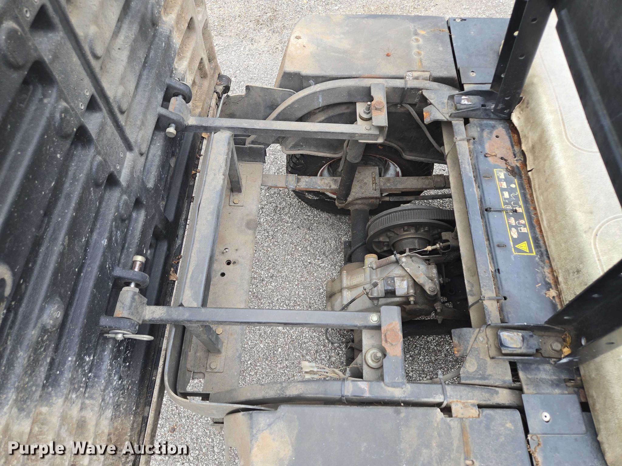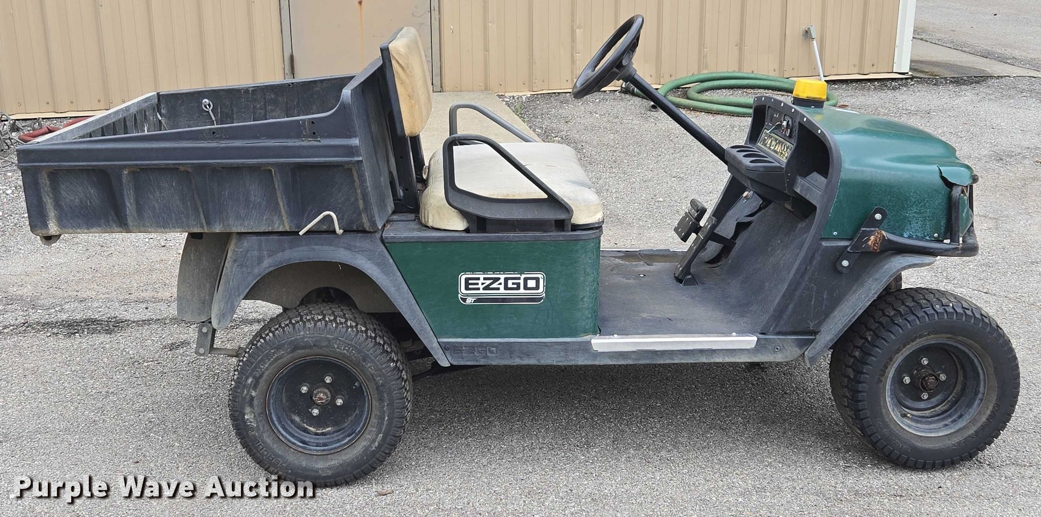 EZ-GO ST golf cart. Hours: 2,001 on meter. Engine Cylinders: 2, Fuel type: Gas, Electric start. Transmission Automatic. Operators station OROPS. Features Grille guard, Receiver hitch, Dump bed 31" L x 45" W, Dump bed type: Manual. Tires Front: 20x8.00-10, Rear: 20x10.00-10. Notes Exhaust missing. Transfer of ownership documentation will be a bill of sale. Shoal Creek Golf Course. Kansas City, MO 64156