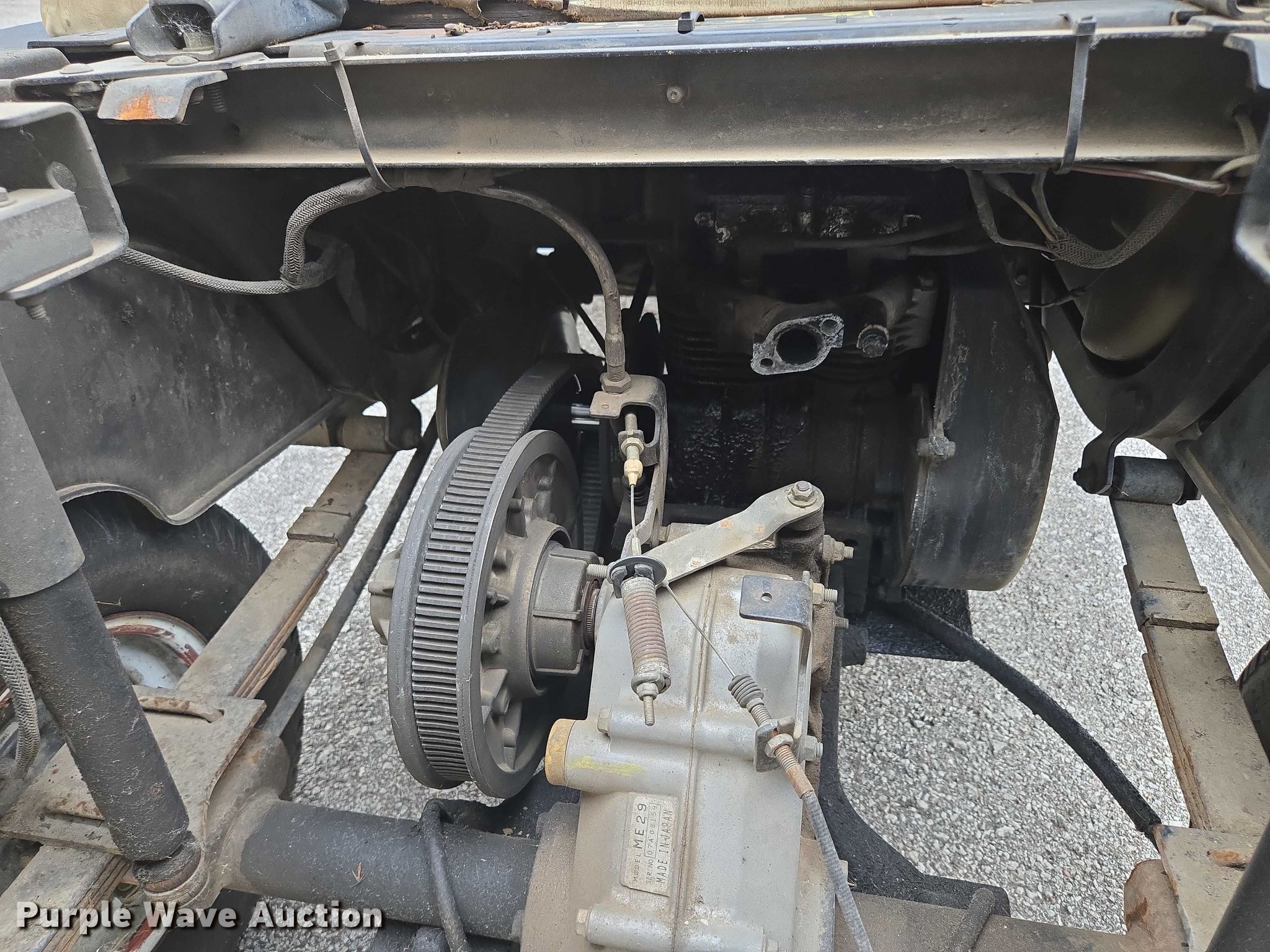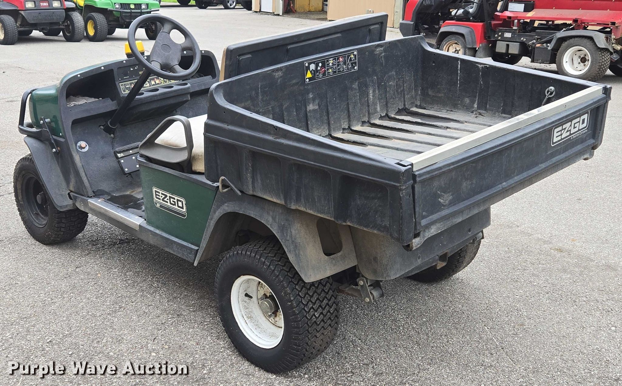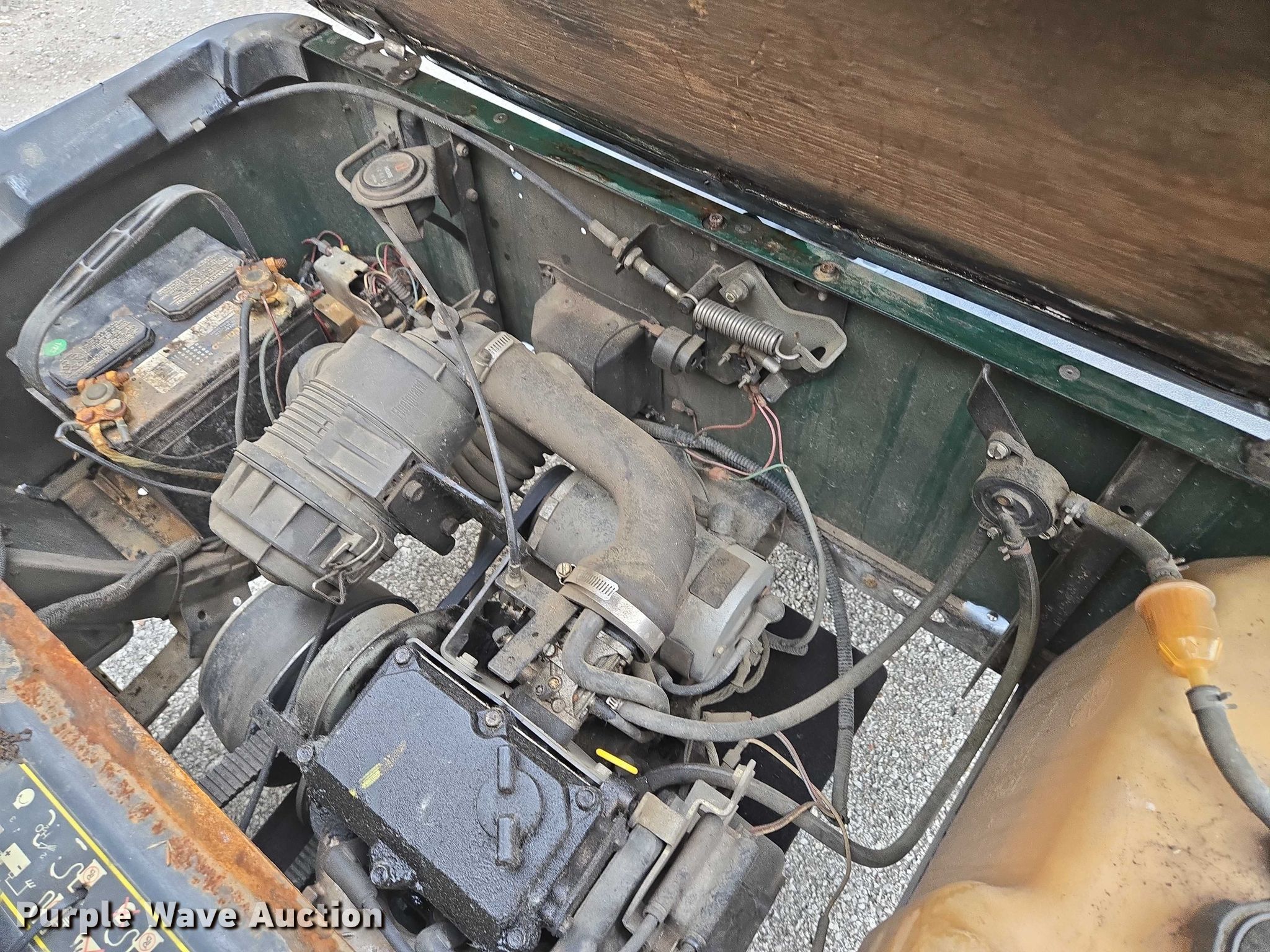 EZ-GO ST golf cart. Hours: 2,001 on meter. Engine Cylinders: 2, Fuel type: Gas, Electric start. Transmission Automatic. Operators station OROPS. Features Grille guard, Receiver hitch, Dump bed 31" L x 45" W, Dump bed type: Manual. Tires Front: 20x8.00-10, Rear: 20x10.00-10. Notes Exhaust missing. Transfer of ownership documentation will be a bill of sale. Shoal Creek Golf Course. Kansas City, MO 64156