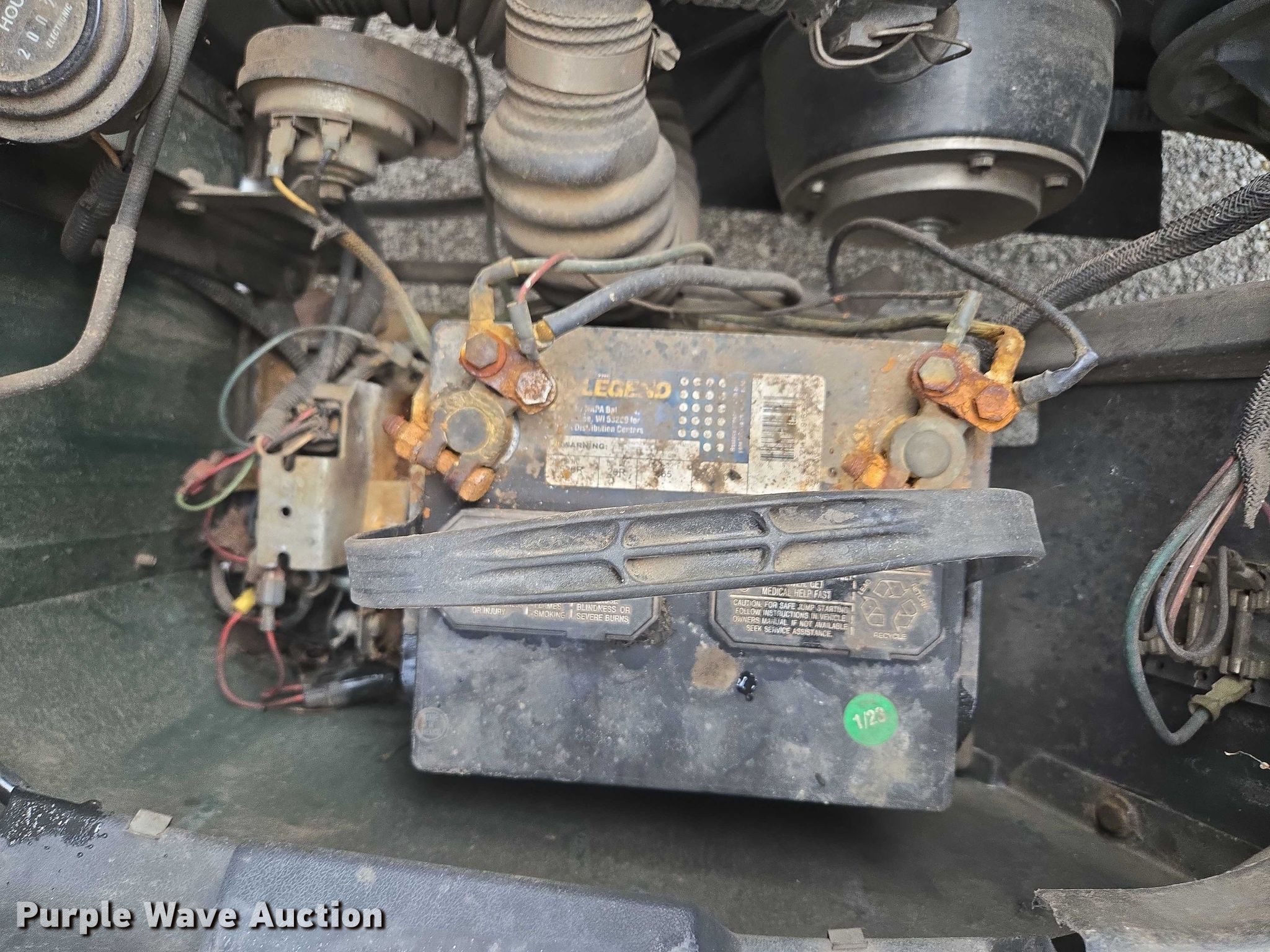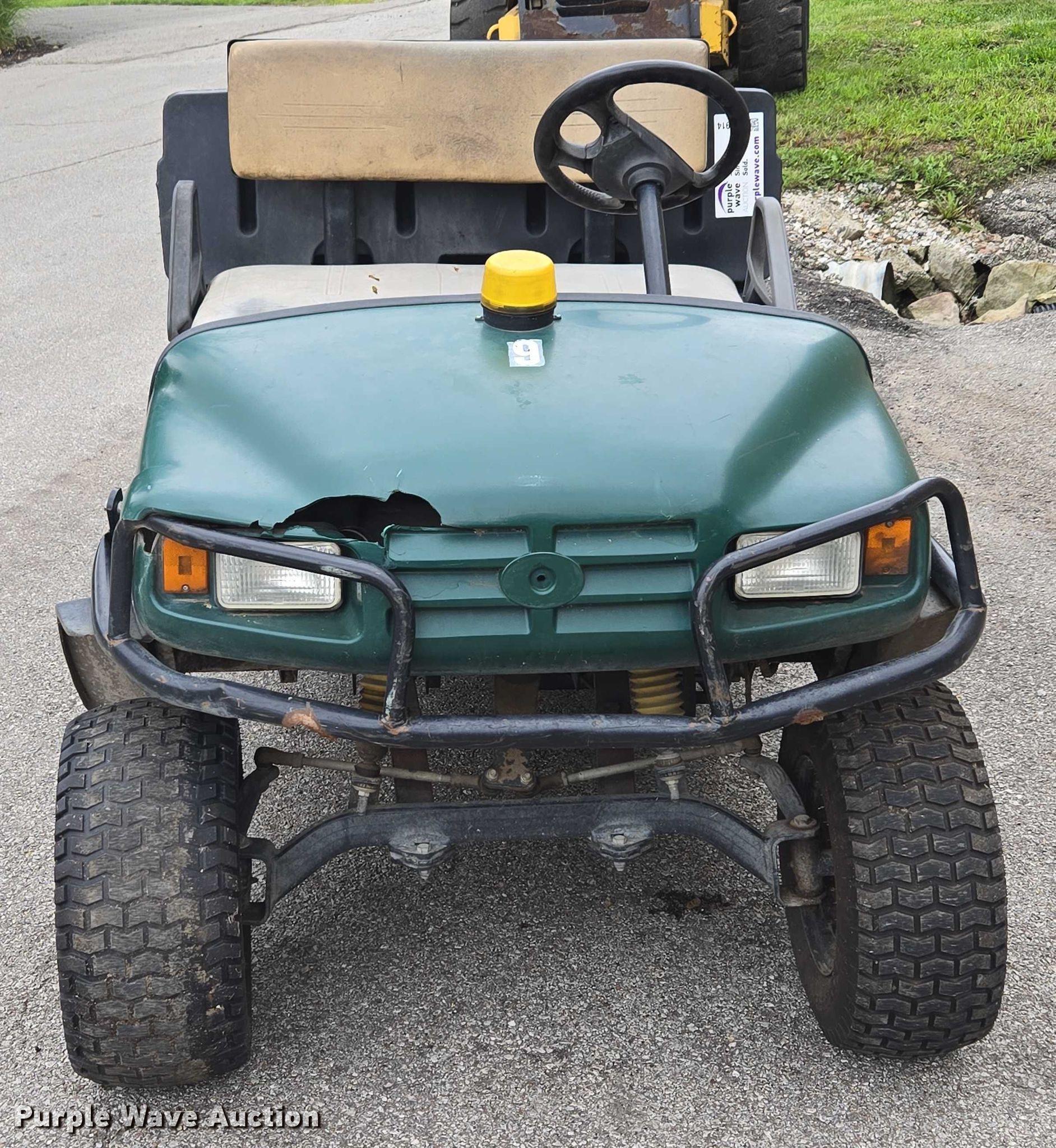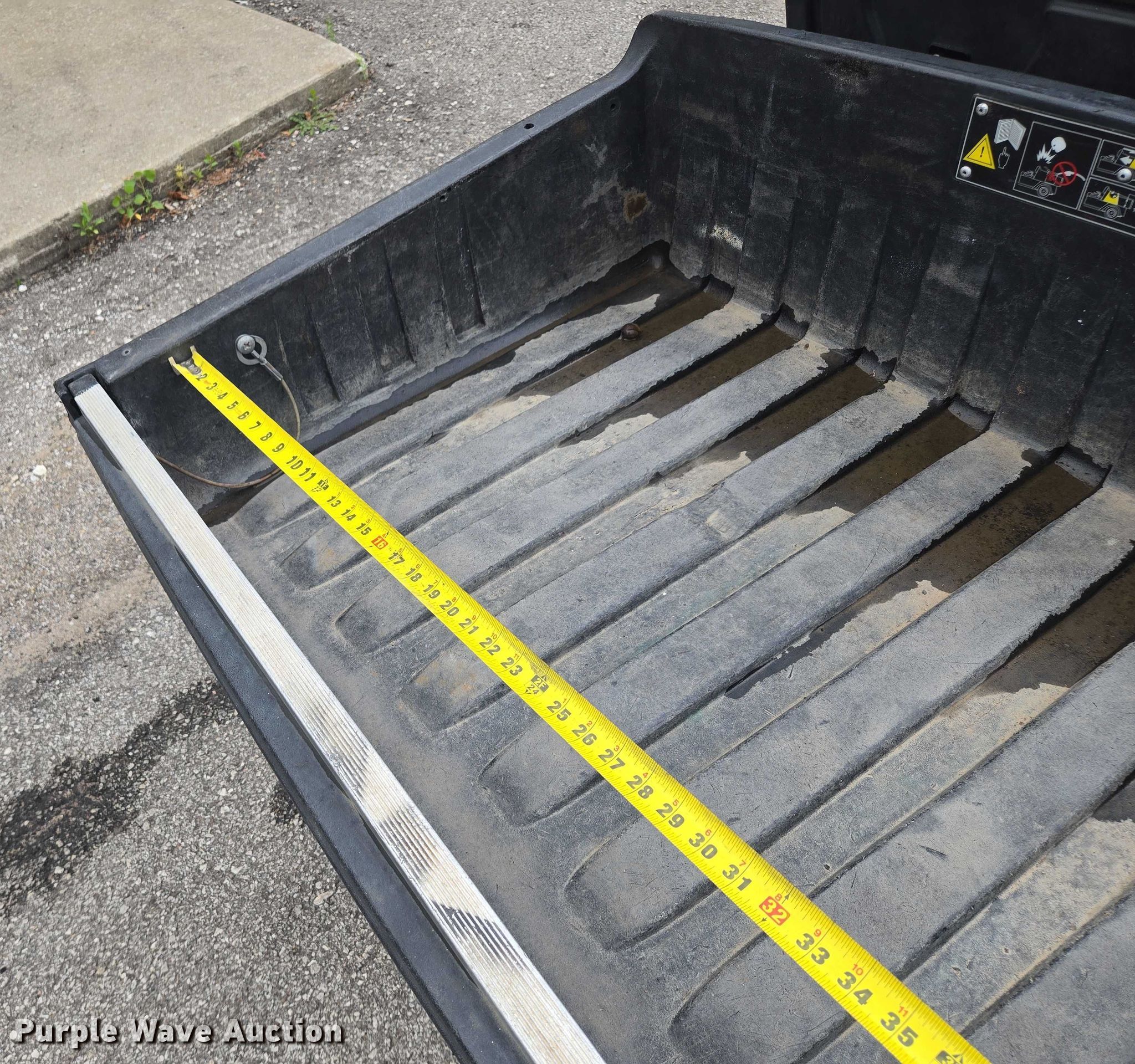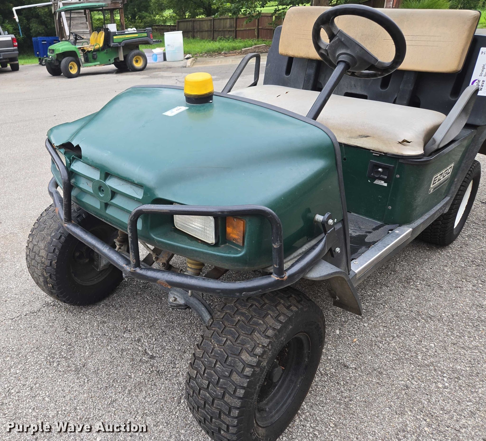 EZ-GO ST golf cart. Hours: 2,001 on meter. Engine Cylinders: 2, Fuel type: Gas, Electric start. Transmission Automatic. Operators station OROPS. Features Grille guard, Receiver hitch, Dump bed 31" L x 45" W, Dump bed type: Manual. Tires Front: 20x8.00-10, Rear: 20x10.00-10. Notes Exhaust missing. Transfer of ownership documentation will be a bill of sale. Shoal Creek Golf Course. Kansas City, MO 64156