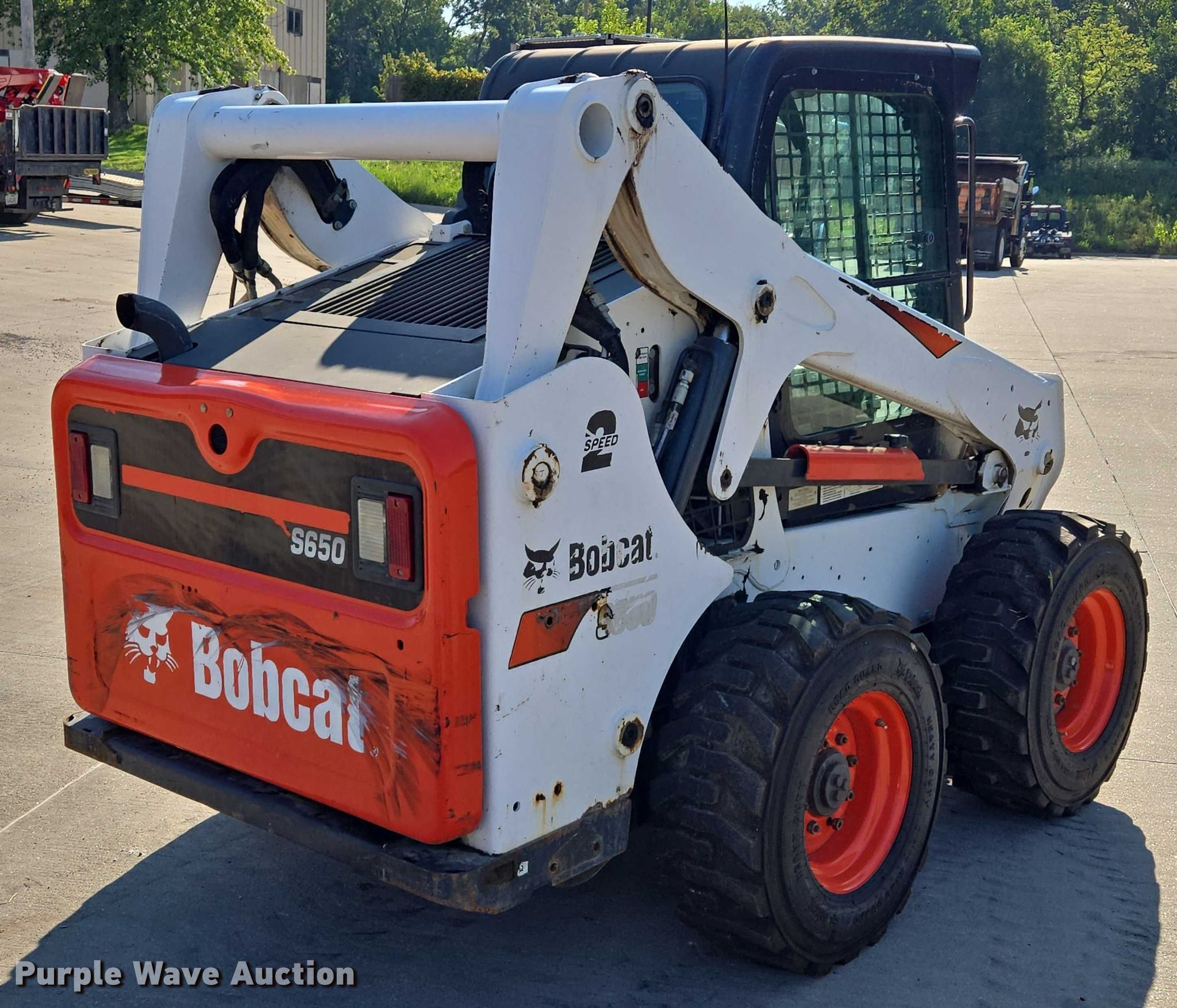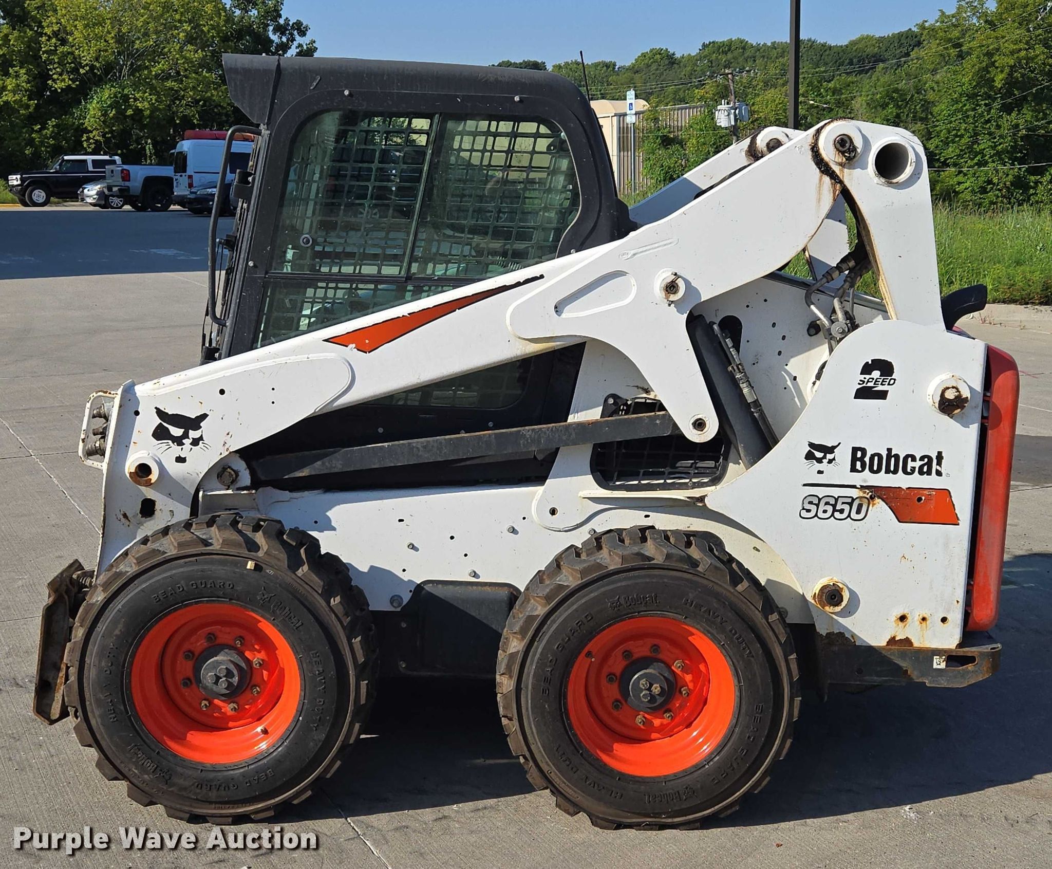Purple Wave is selling a used Skid Steer Loader in Kansas. This item is a 2018 Bobcat S650 skid steer loader with the following: Hours: 1,659 on meter, Serial: ALJ824697