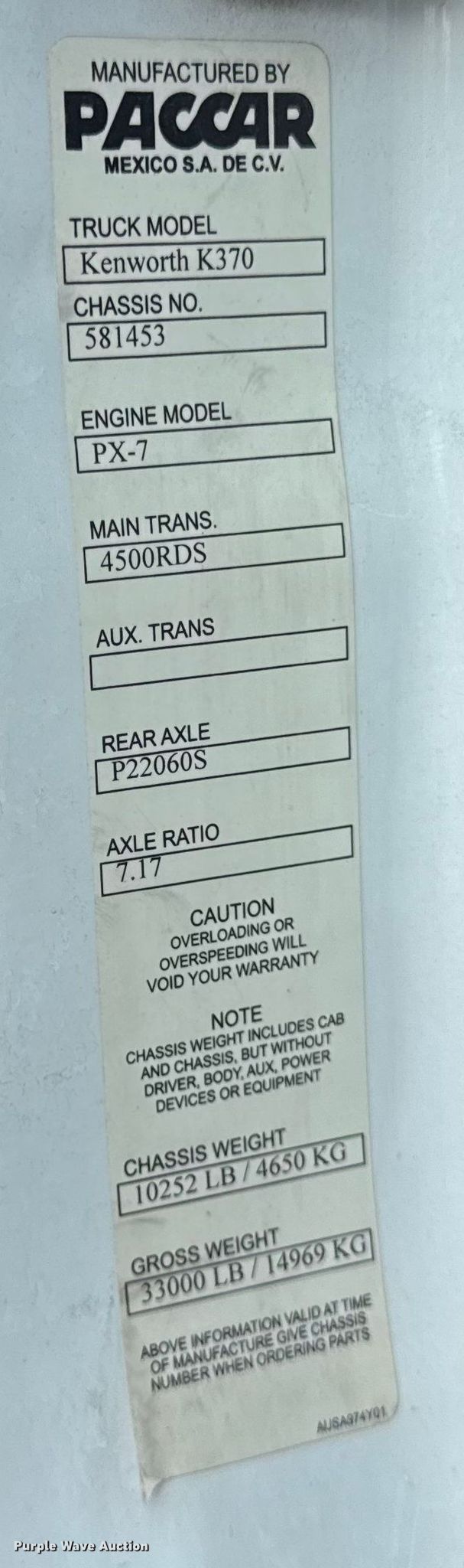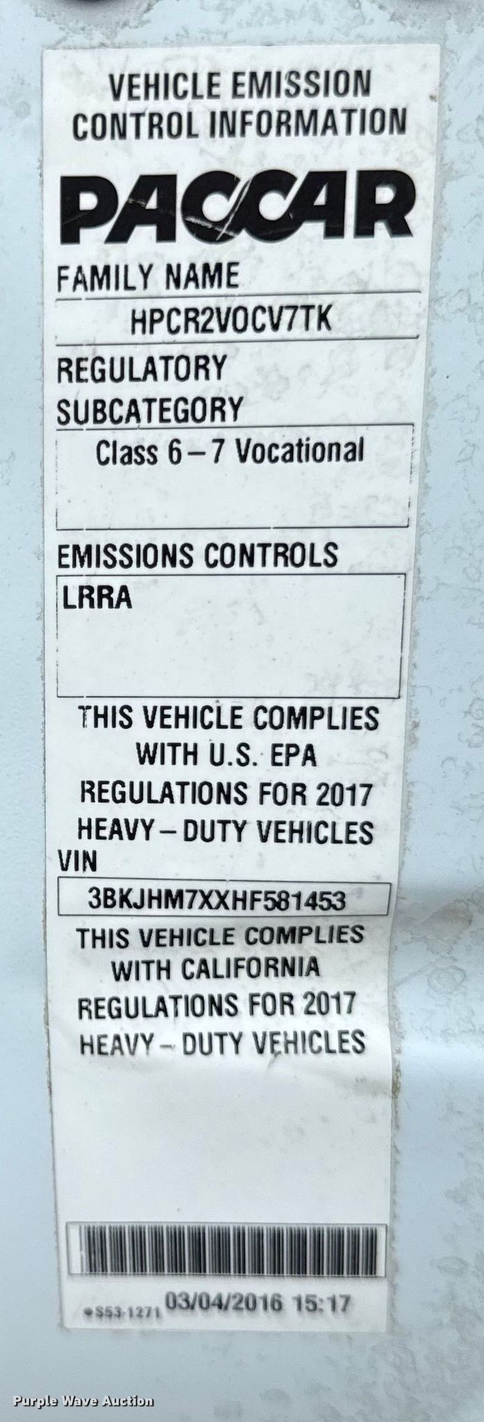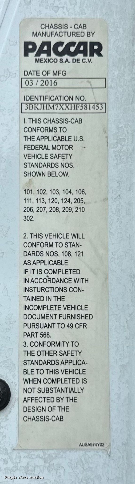 2017 Kenworth K270 street sweeper truck. Miles: 31,673 on odometer, VIN: 3BKJHM7XXHF581453. Engine Paccar PX7, Displacement: 6.7L, Cylinders: 6, Fuel type: Diesel, HP: 220. Transmission Automatic. Chassis Suspension: Spring, Brakes: Air, GVWR: 33,000 lbs. Operators station AC, Heat, Dual operating station, Video monitoring system, Backup camera. Features Bed Sweeper bed, Schwarze A9 Monsoon, Serial: 17A9000254, Sweeper bed type: Vacuum, Left gutter broom Diameter: 30", Right gutter broom Diameter: 30", Water spray system, Auto lube, Engine John Deere, Cylinders: 4. Tires Size: 11R22.5. Notes Jump start required during on-site data collection. Wisconsin title. Seller is a government entity who will be assigning and distributing the title. Please contact the seller for distribution questions. City of Beloit, WI. Beloit, WI 53511