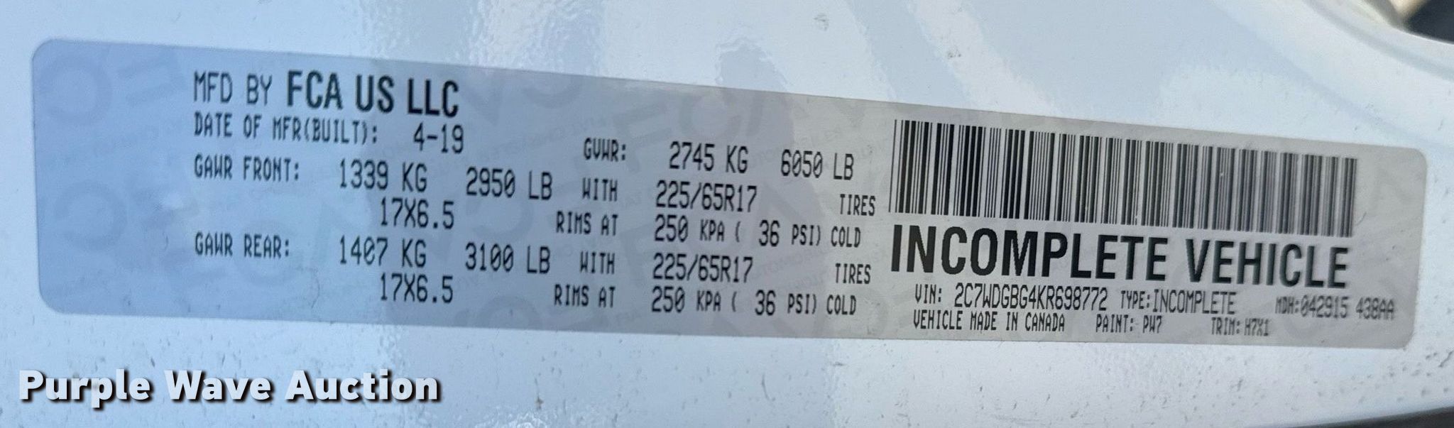 Purple Wave is selling a used Passenger Vehicle in Oklahoma. This item is a 2019 Dodge Grand Caravan handicap accessible van with the following: Miles: 184,717 on odometer, VIN: 2C7WDGBG4KR698772