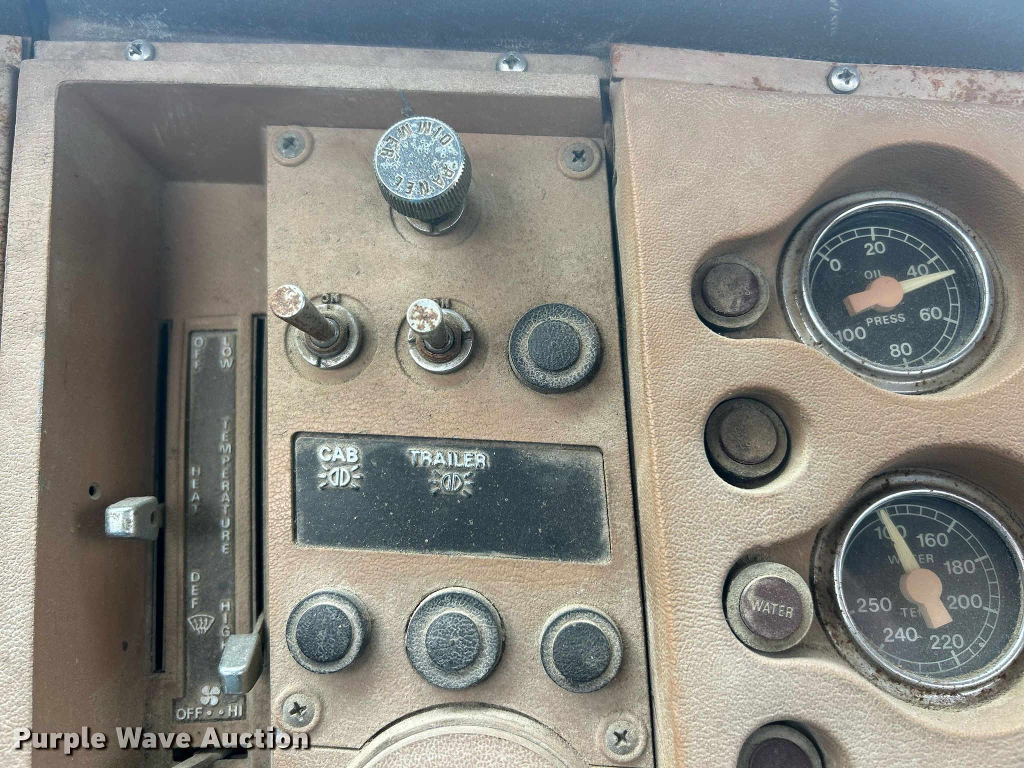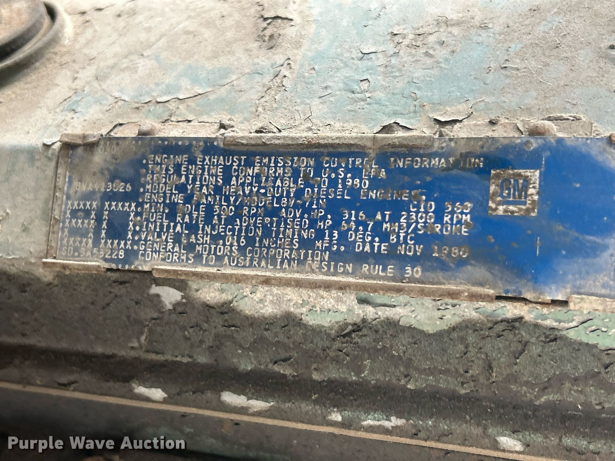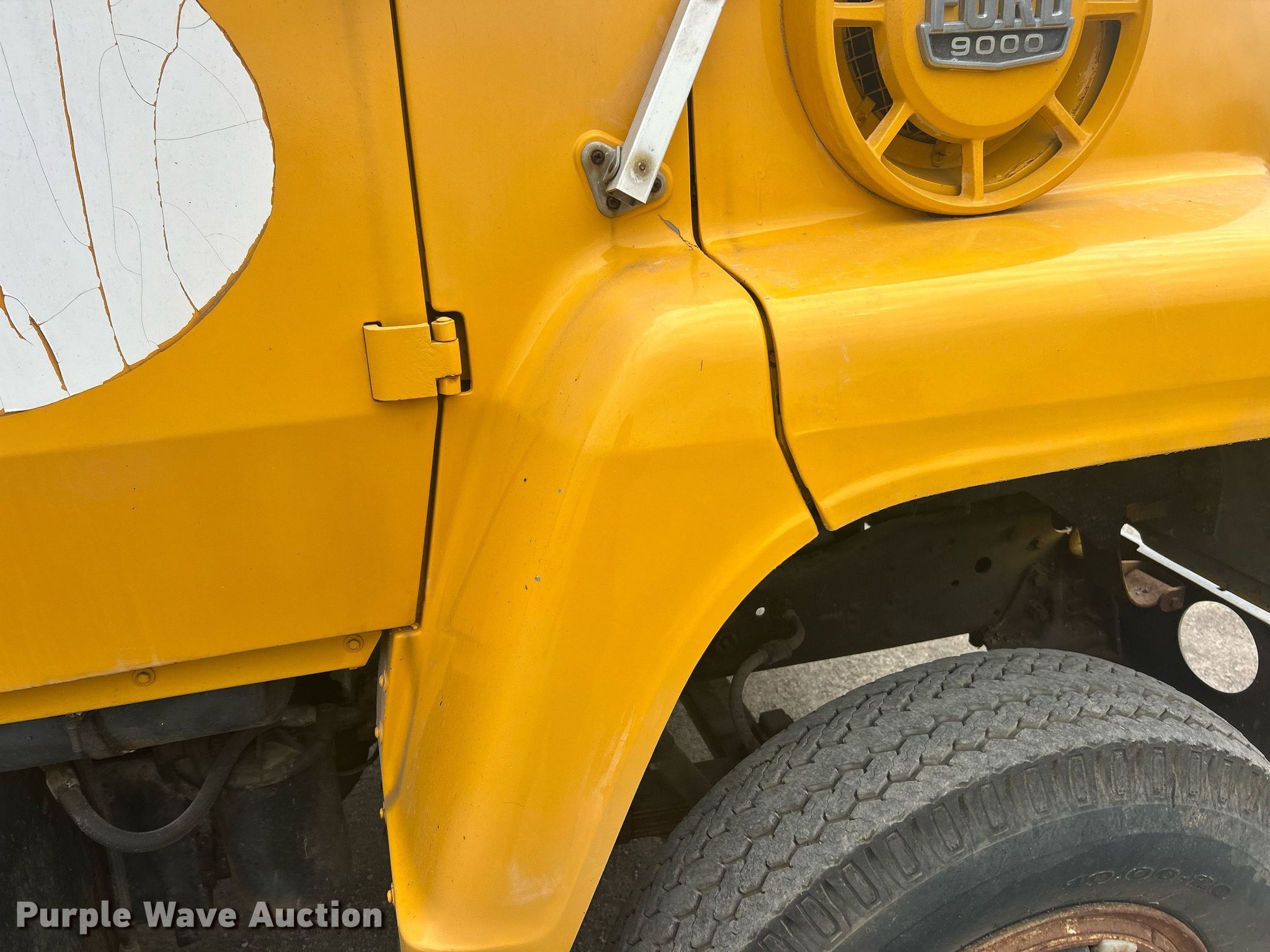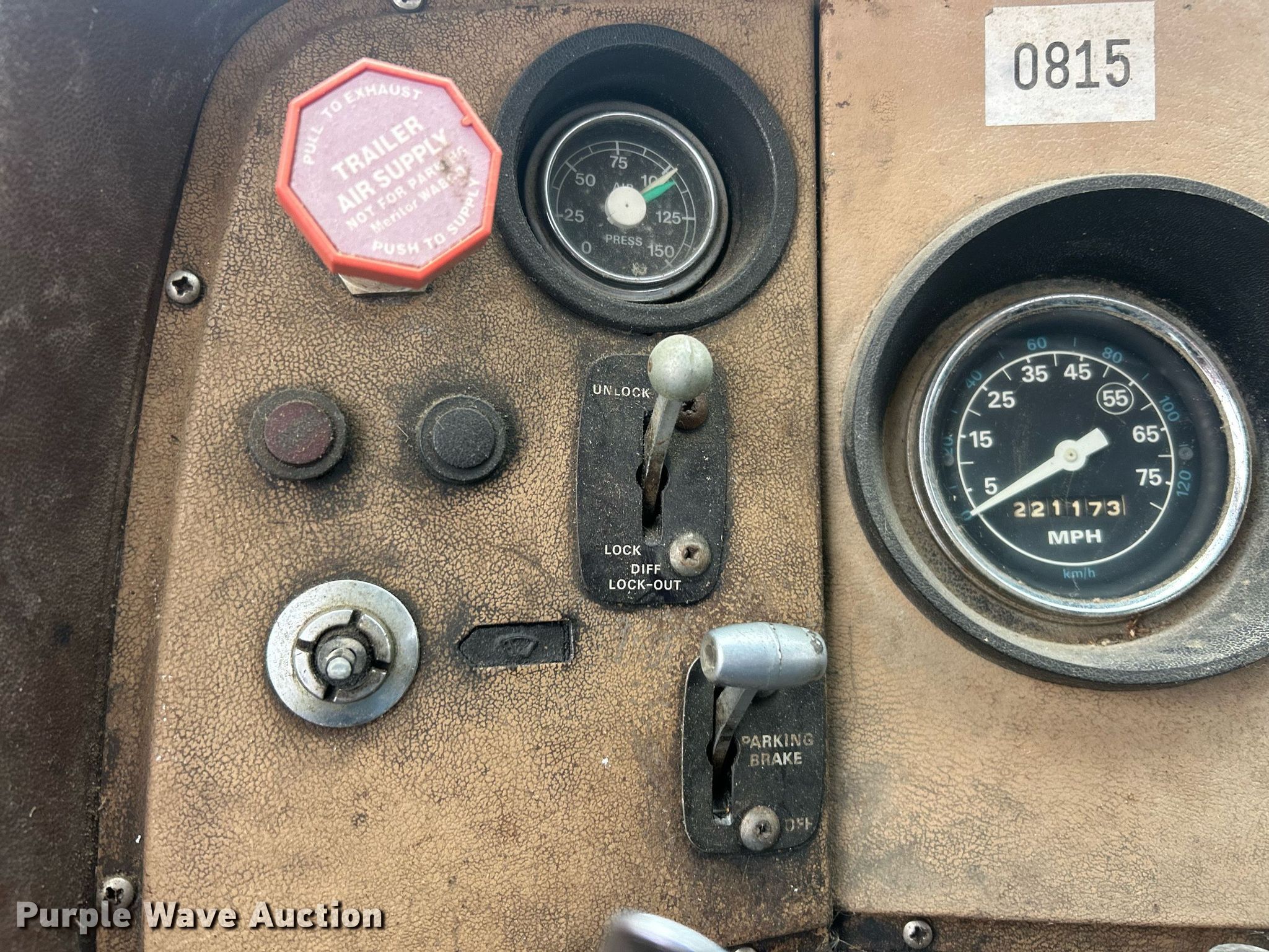 1981 Ford L9000 semi truck. Miles: 221,173 on odometer, VIN: 1FDYW90T8BVJ19963. Engine Detroit Diesel, Displacement: 9.3L, Cylinders: 8, Fuel type: Diesel. Transmission Eaton Fuller, Manual, Speed: 9. Chassis Axles: Tandem, Suspension: Spring over walking beam, Brakes: Air, PTO, GVWR: 43,000 lbs. Interior Heat. Features Fifth wheel type: Fixed, Sliding, Fuel tank: Dual. Tires Size: 10.00-20. Notes Air leak, Windshield chipped or cracked. Illinois title. Title distribution may be delayed up to 14 days from verification of funds. Jefferson County Highway Dept.. Mount Vernon, IL 62864