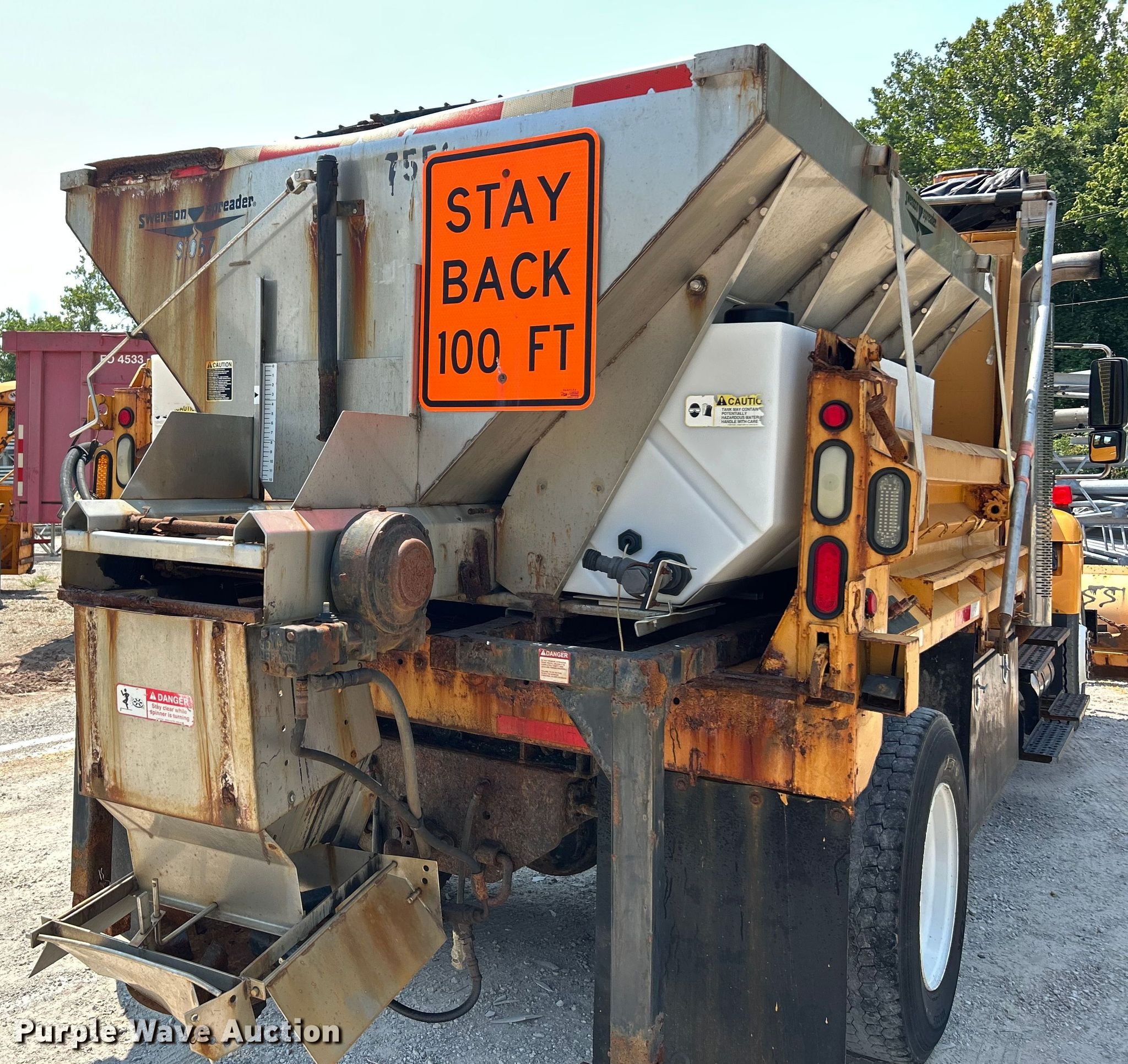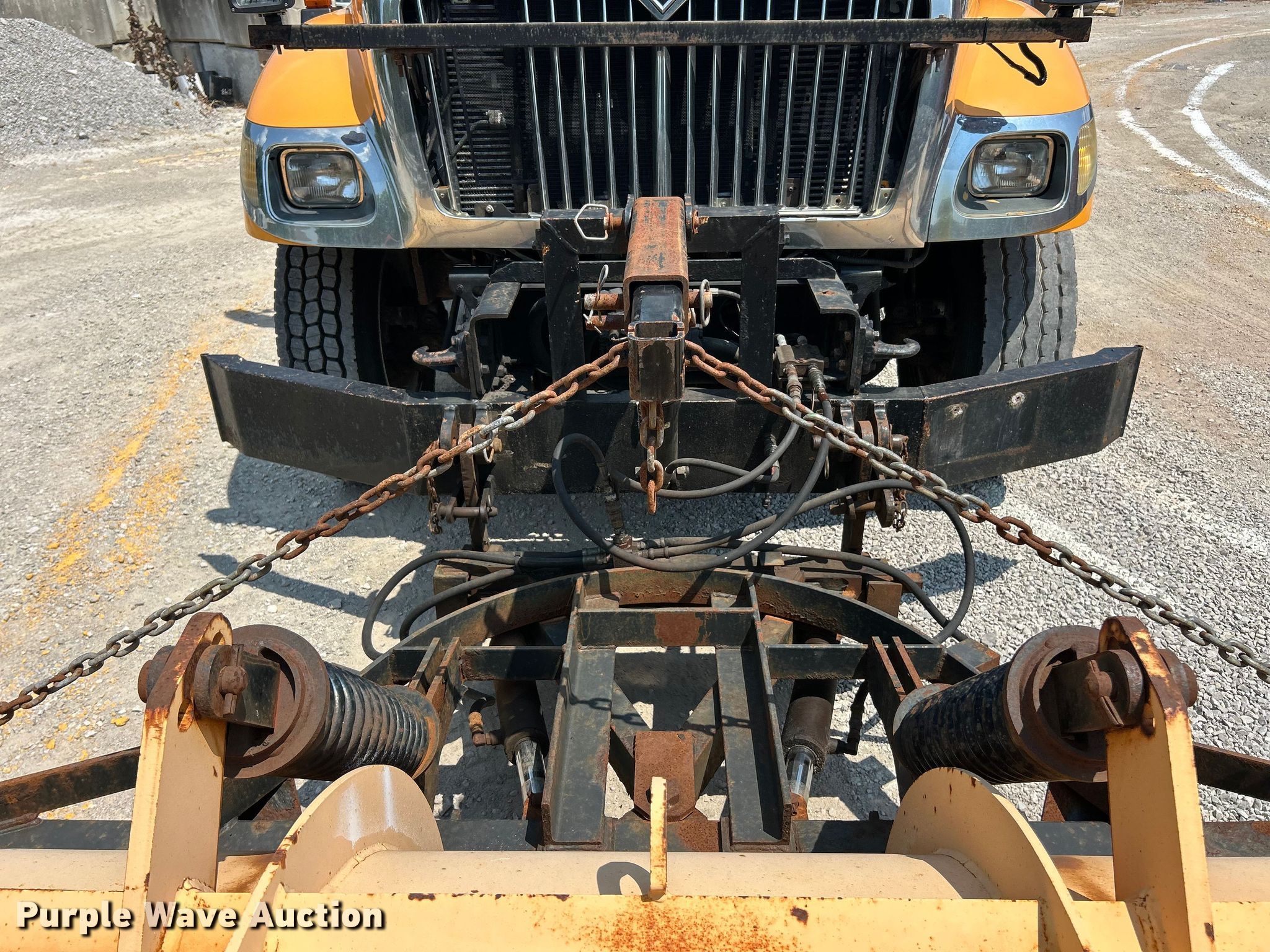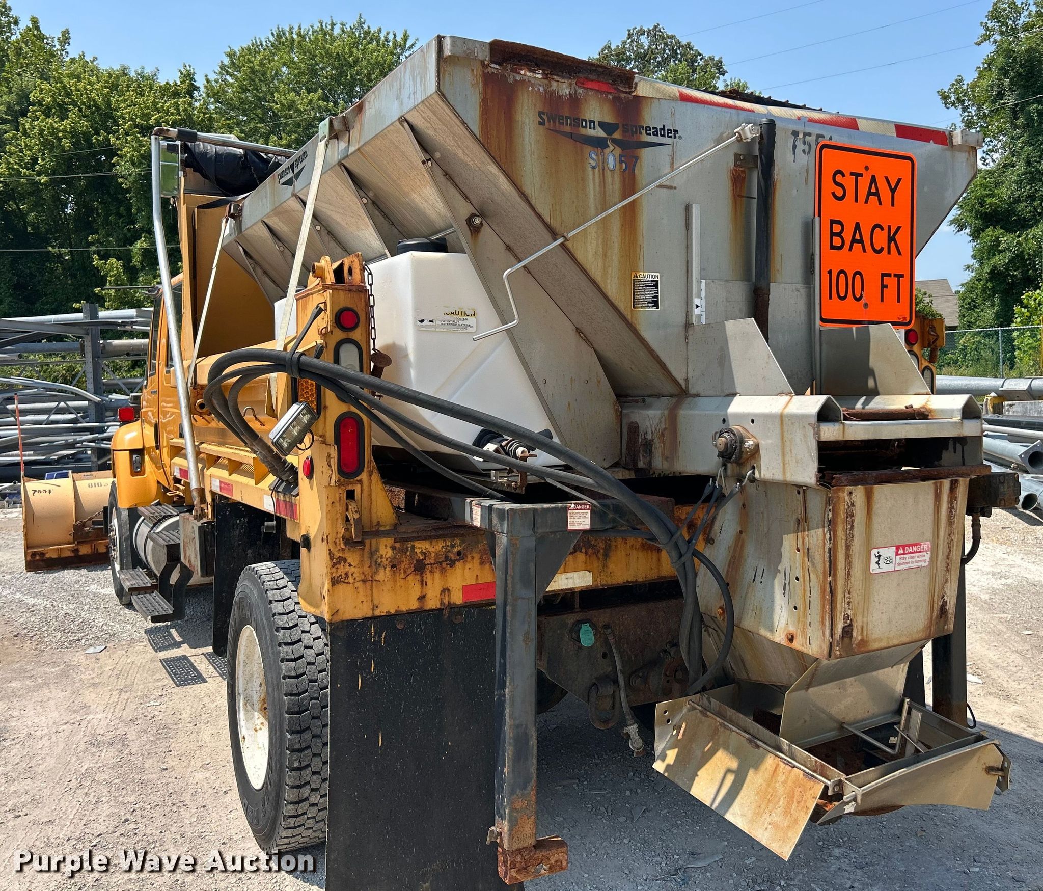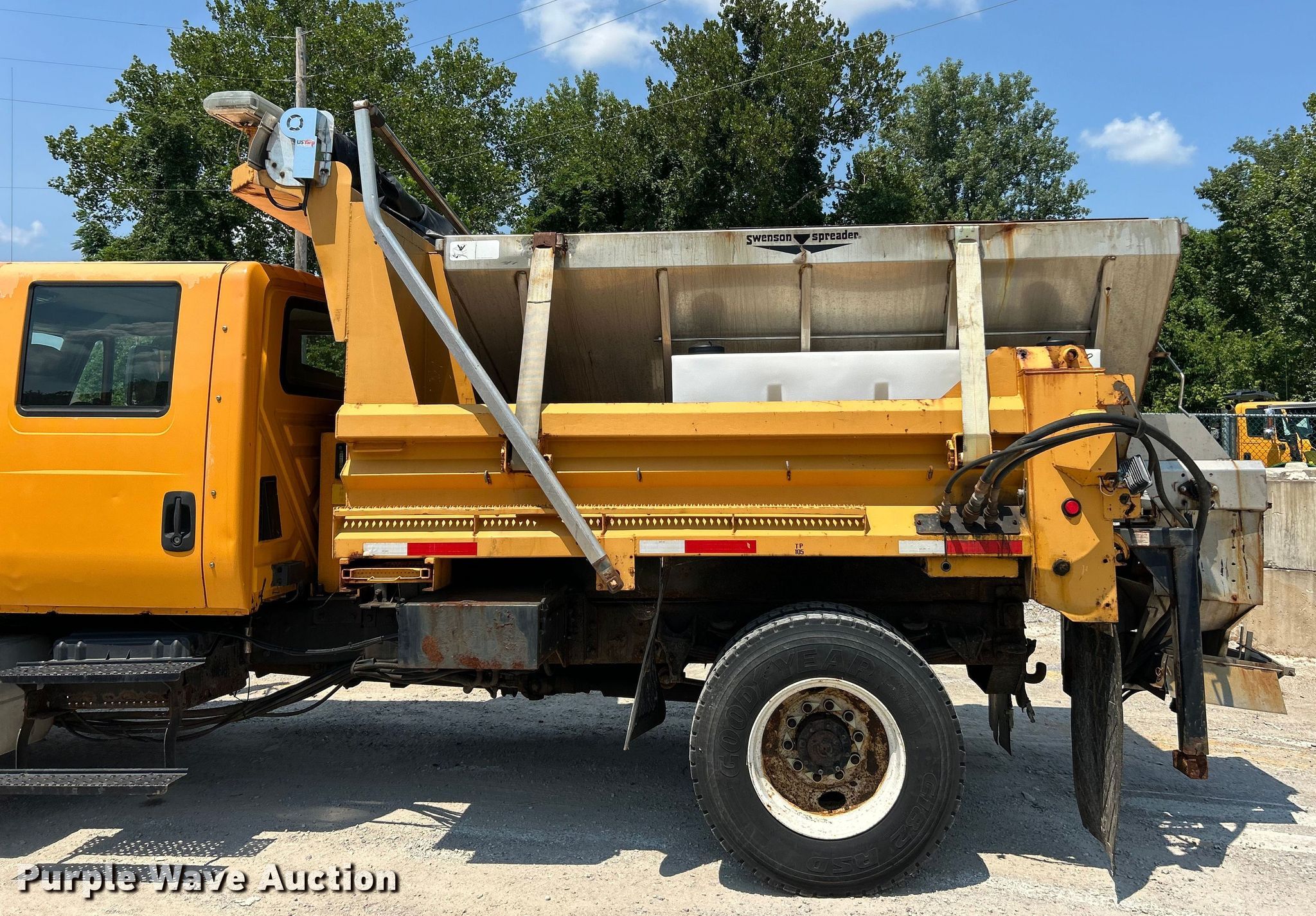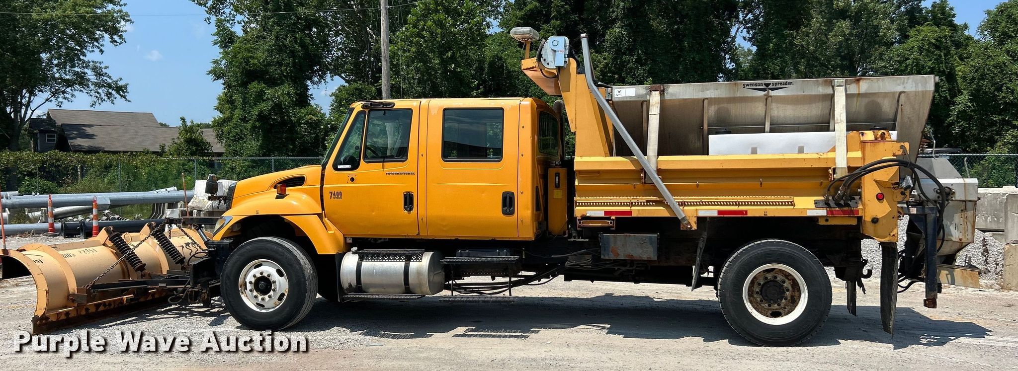 2006 International 7400 Crew Cab dump truck. Miles: 208,204 on odometer, Hours: 13,045 on meter, VIN: 1HTWDAAR66J355018. Engine International DT466/Maxxforce DT, Displacement: 7.64L DOHC, Cylinders: 6, Fuel type: Diesel. Transmission Automatic. Chassis Axles: Single, Suspension: Spring, Brakes: Air, PTO, GVWR: 35,000 lbs FAWR: 14,000 lbs, RAWR: 21,000 lbs. Interior AC, Heat, Heated mirrors, Power windows, Cruise control. Features Bed Dump bed, Wheeler steel, Length: 10', Width: 96", Side height: 24", Bed type: Steel, Roll tarp, Ram: Single, End gate: Manual, Spreader Swenson, Plow Viking Cives, Width: 144". Tires Front: 315/80R22.5, Rear: 11R22.5. Notes Dash warning indicator: ABS, Windshield chipped or cracked, Oil leak, Transmission leak, Hydraulic leak, End gate missing. Missouri title. Title distribution may be delayed up to 14 days from verification of funds. Missouri Dept. of Transportation - District 6. Ballwin, MO 63021