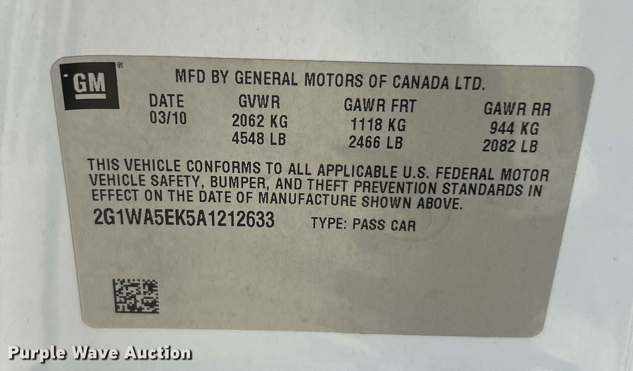 Purple Wave is selling a used Passenger Vehicle in Missouri. This item is a 2010 Chevrolet Impala LS with the following: Miles: 104,887 on odometer, VIN: 2G1WA5EK5A1212633, Unit #: B6921