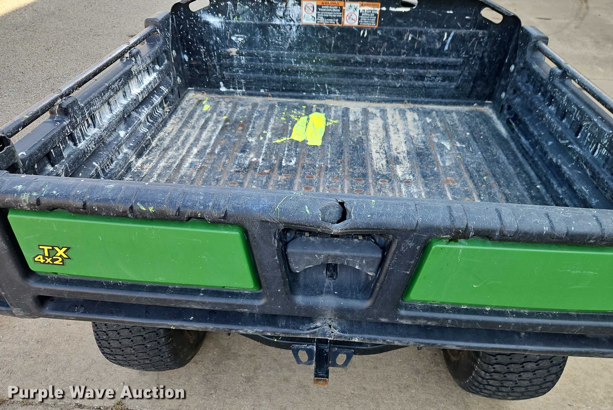 2014 John Deere Gator TX utility vehicle. Hours: 3,249 on meter, Serial: 1M04X2XDKEM090771. Engine Kawasaki, Cylinders: 2, Fuel type: Gas, Electric start. Transmission Automatic. Features Receiver hitch, Dump bed 44" L x 51" W, Dump bed type: Electric/ Hydraulic. Tires Front: 22x9.50-10, Rear: 24x12.00-10. Transfer of ownership documentation will be a bill of sale. Johnson County Park and Recreation District. Shawnee, KS 66217
