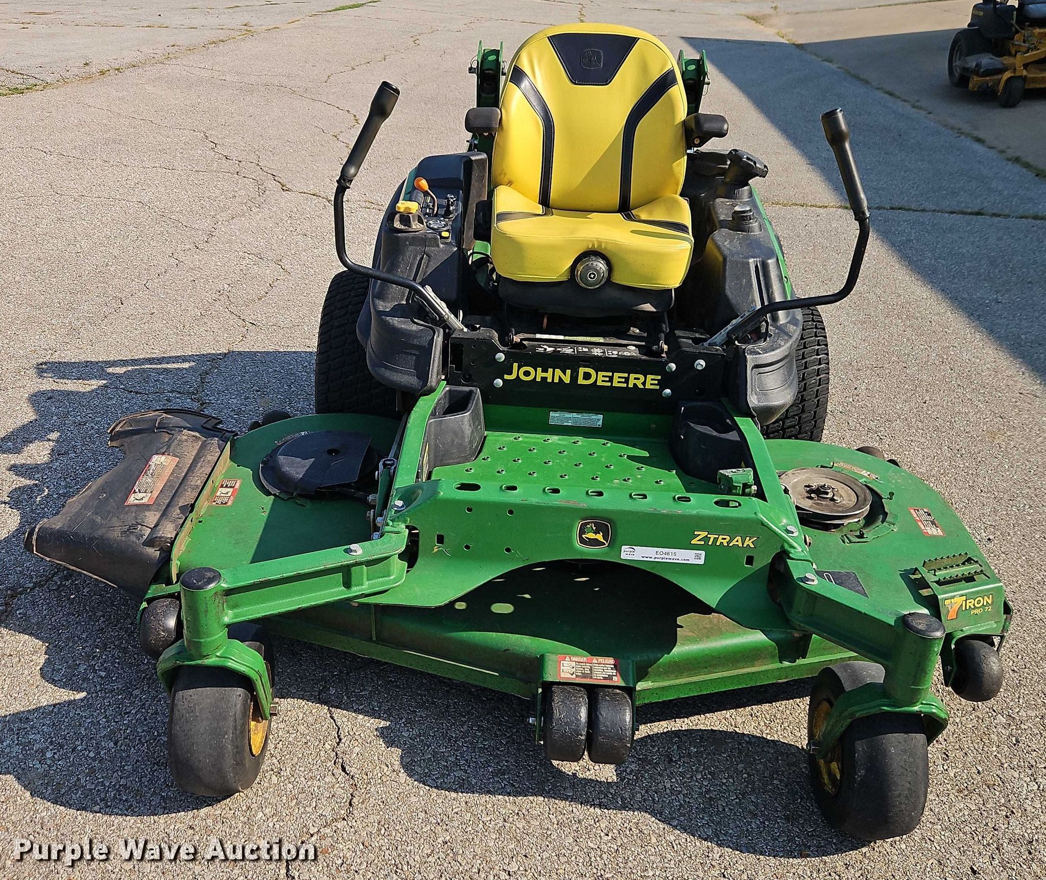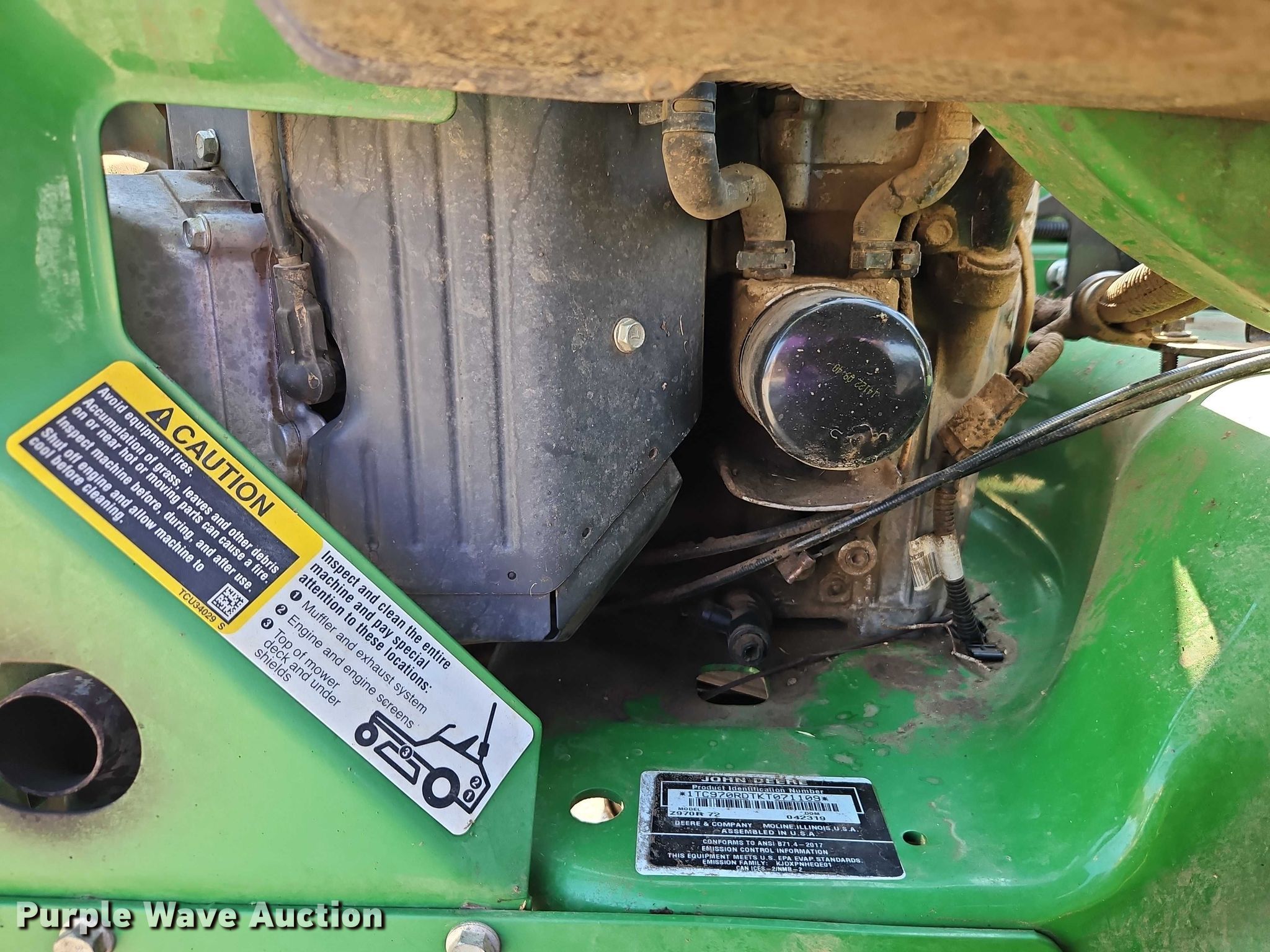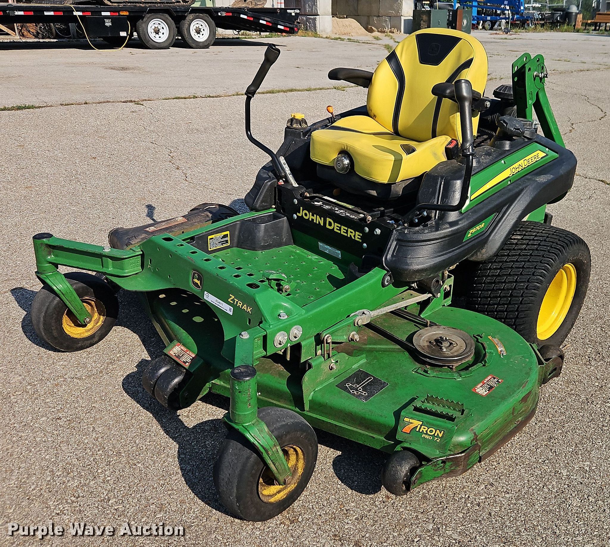 Purple Wave is selling a used Commercial Turf Mower in Kansas. This item is a 2019 John Deere Z970R ZTR lawn mower with the following: Hours: 1,063 on meter, Cutting width: 72", Serial: 1TC970RDTKT071109