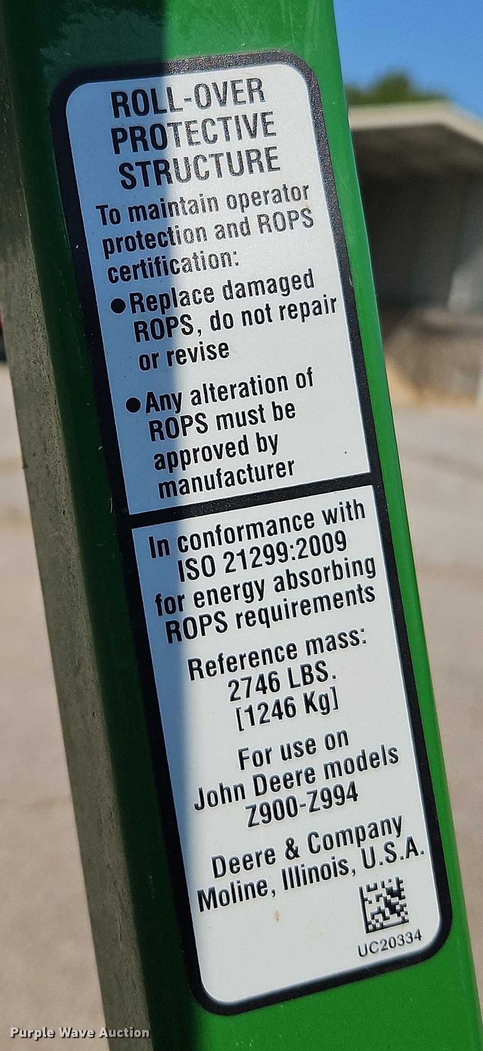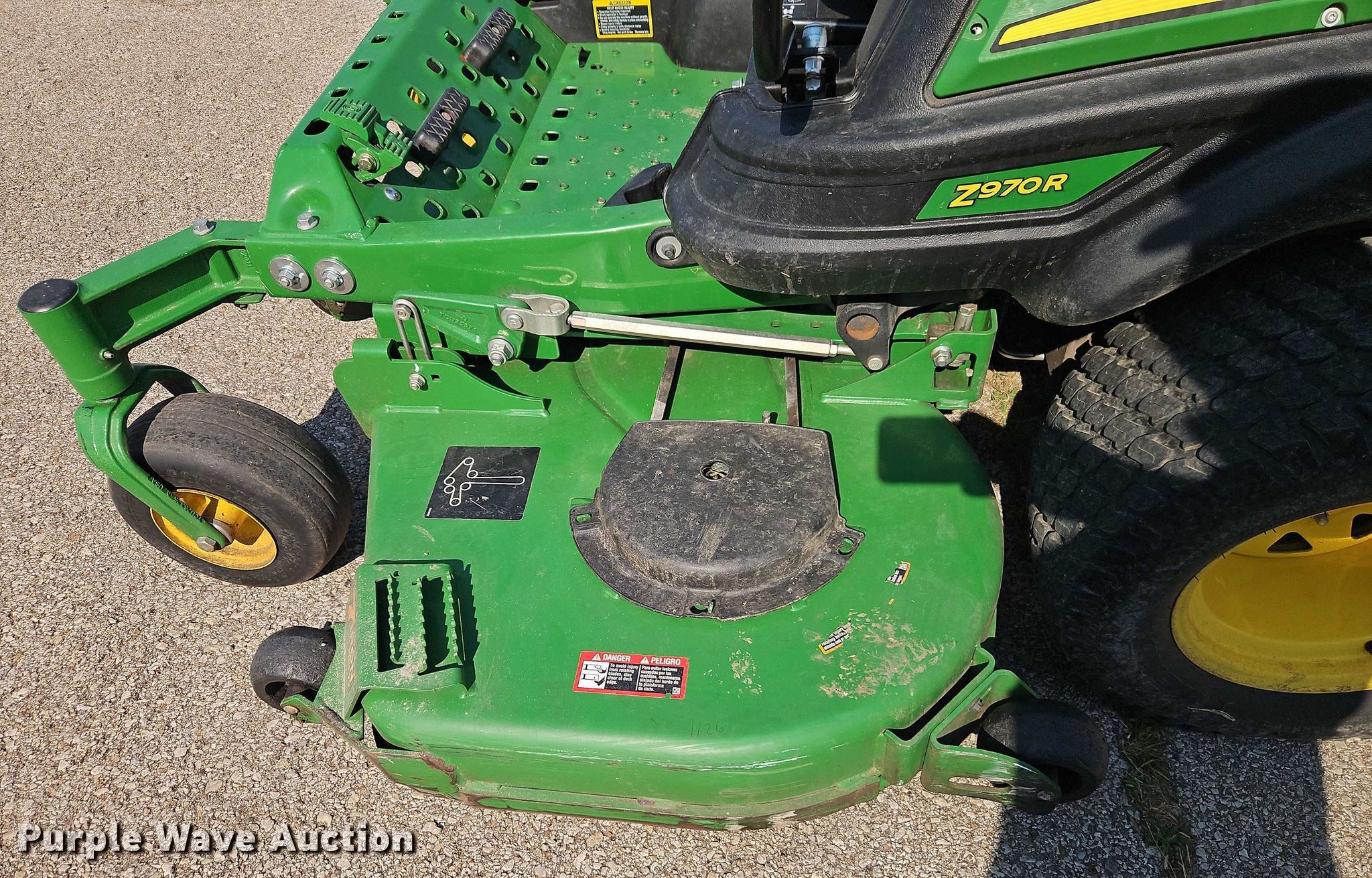 Purple Wave is selling a used Commercial Turf Mower in Kansas. This item is a 2021 John Deere Z970R ZTR lawn mower with the following: Hours: 1,126 on meter, Cutting width: 72", Serial: 1TC970RDPMT091347
