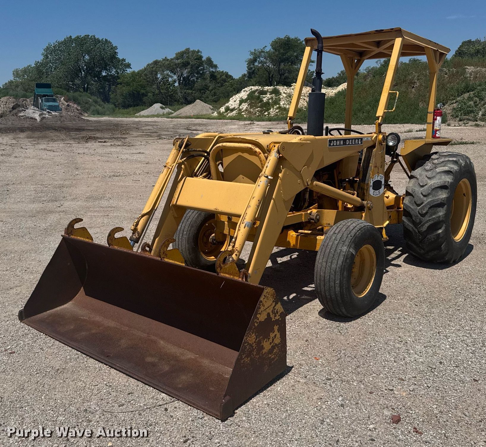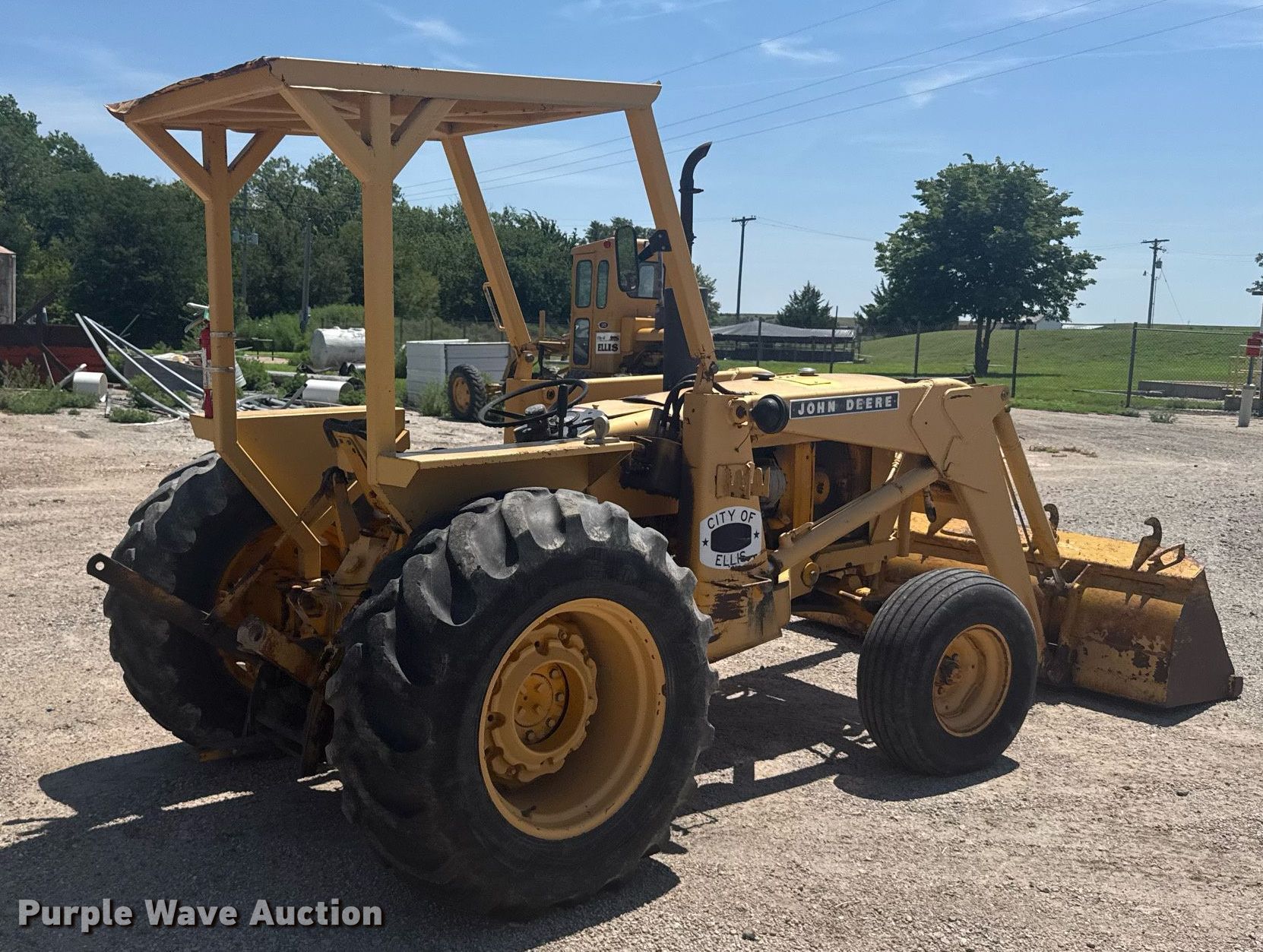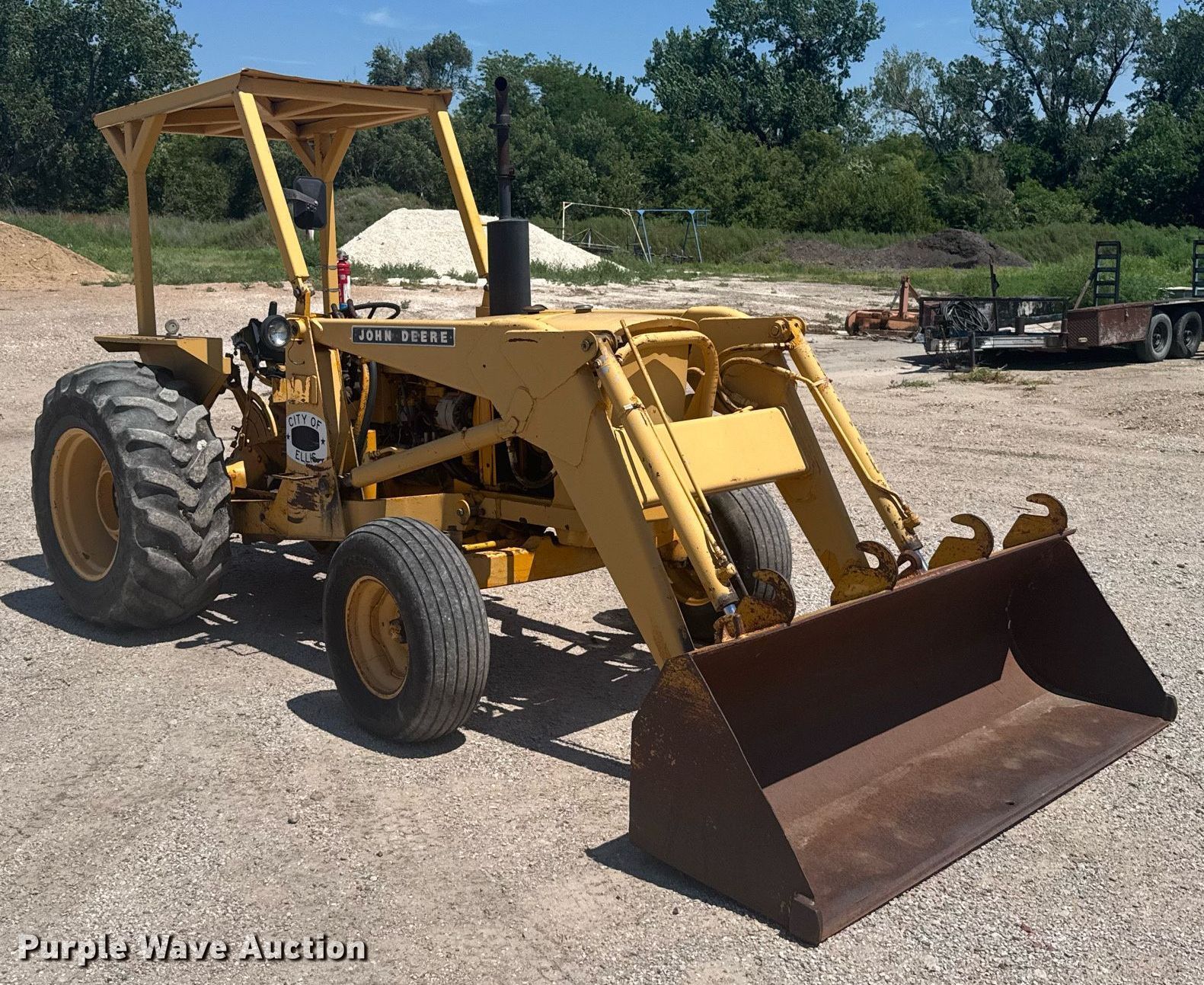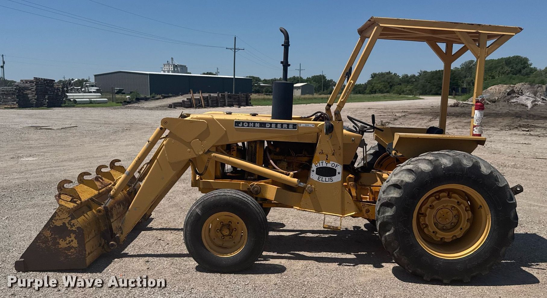 1978 John Deere 302A tractor. Hours: 5,203 on meter, Serial: 308501T. Engine John Deere, Cylinders: 3, Fuel type: Diesel. Transmission Synchro, 8F - 8R, Left-hand reverser. Features PTO: 540, Three point, Loader John Deere, Controls: Joystick, Bucket Width: 88".. Tires Front: 11-15, Rear: 17.5-24. City of Ellis. Ellis, KS 67637