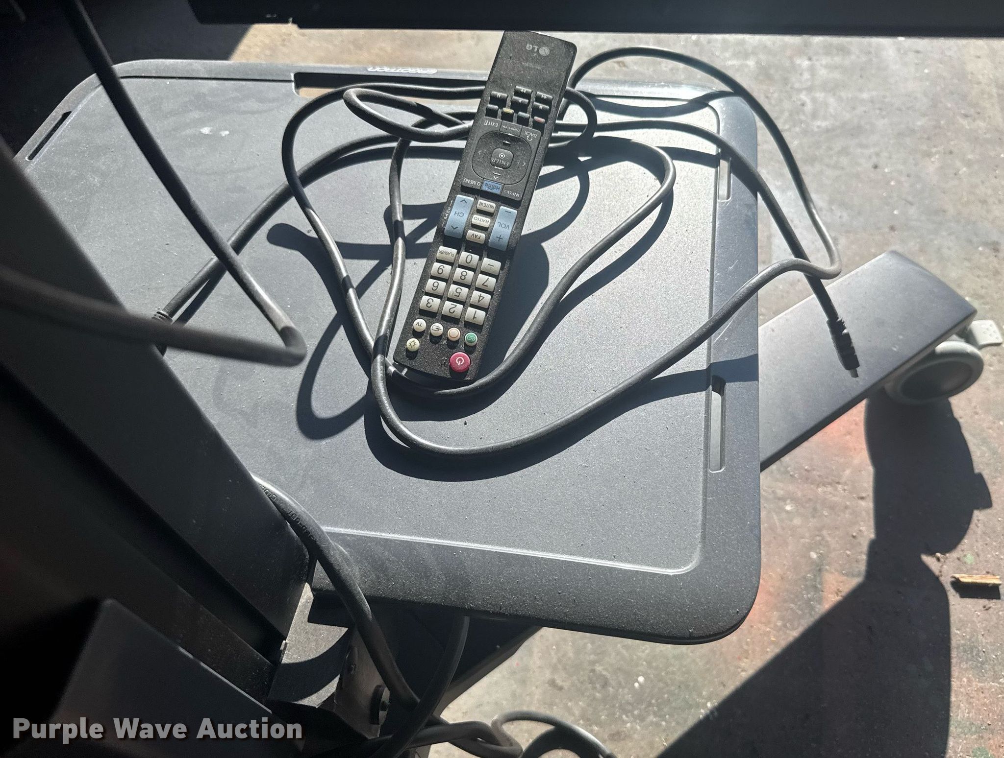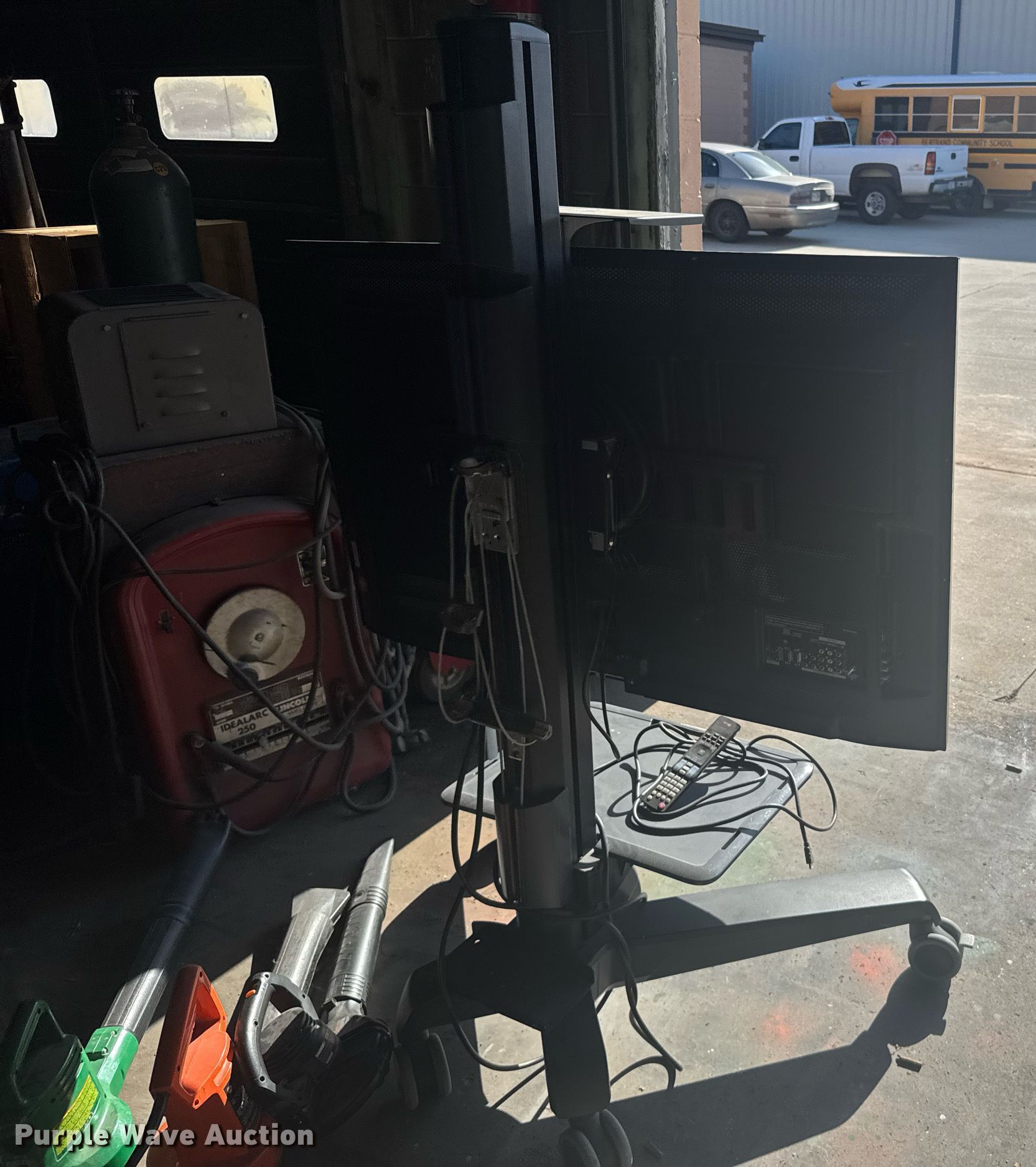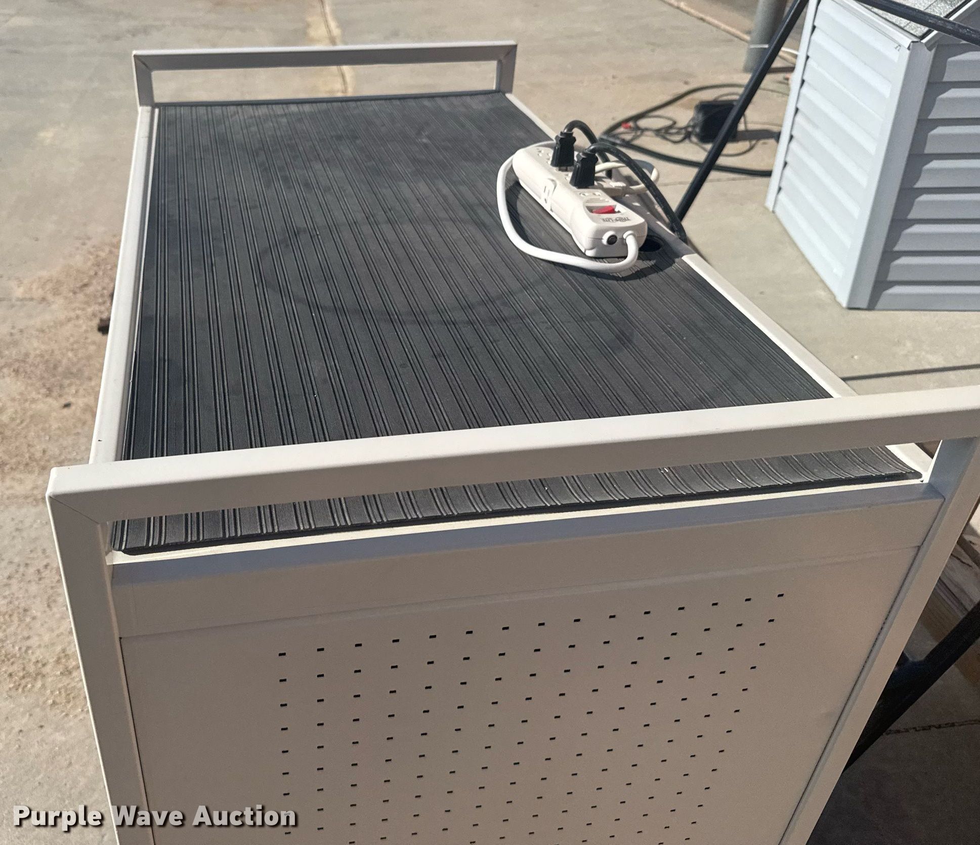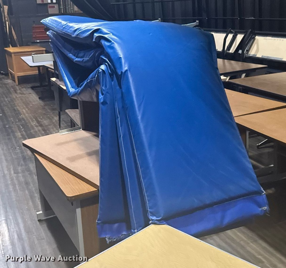 Purple Wave is selling a used Furniture in Nebraska. This item is a Furniture with the following: Tables: 20, Desks: 16, Chairs: 13, Filing cabinets: 1, (3) mats, (2) gas stoves, TV with stand, Computer cart