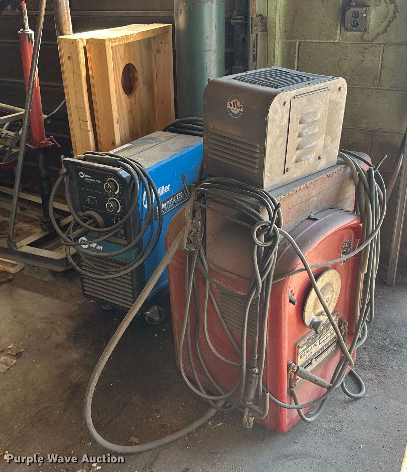 (4) welders. Miller Millermatic 250. Capabilities: CV, DC, Wire, Leads. Lincoln Idealarc 250 Capabilities: DC, AC, Stick. Twenty century Serial: 712136, Capabilities: Stick. Miller Capabilities: Stick. Notes Bottles not included, Unknown operating condition of units. Bertrand School. Bertrand, NE 68927