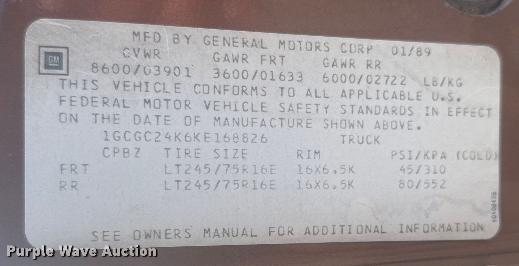 Purple Wave is selling a used 3/4 or 1 Ton Pickup or Van in Kansas. This item is a 1989 Chevrolet C2500 pickup truck with the following: Miles: 76,884 on odometer, VIN: 1GCGC24K6KE168826