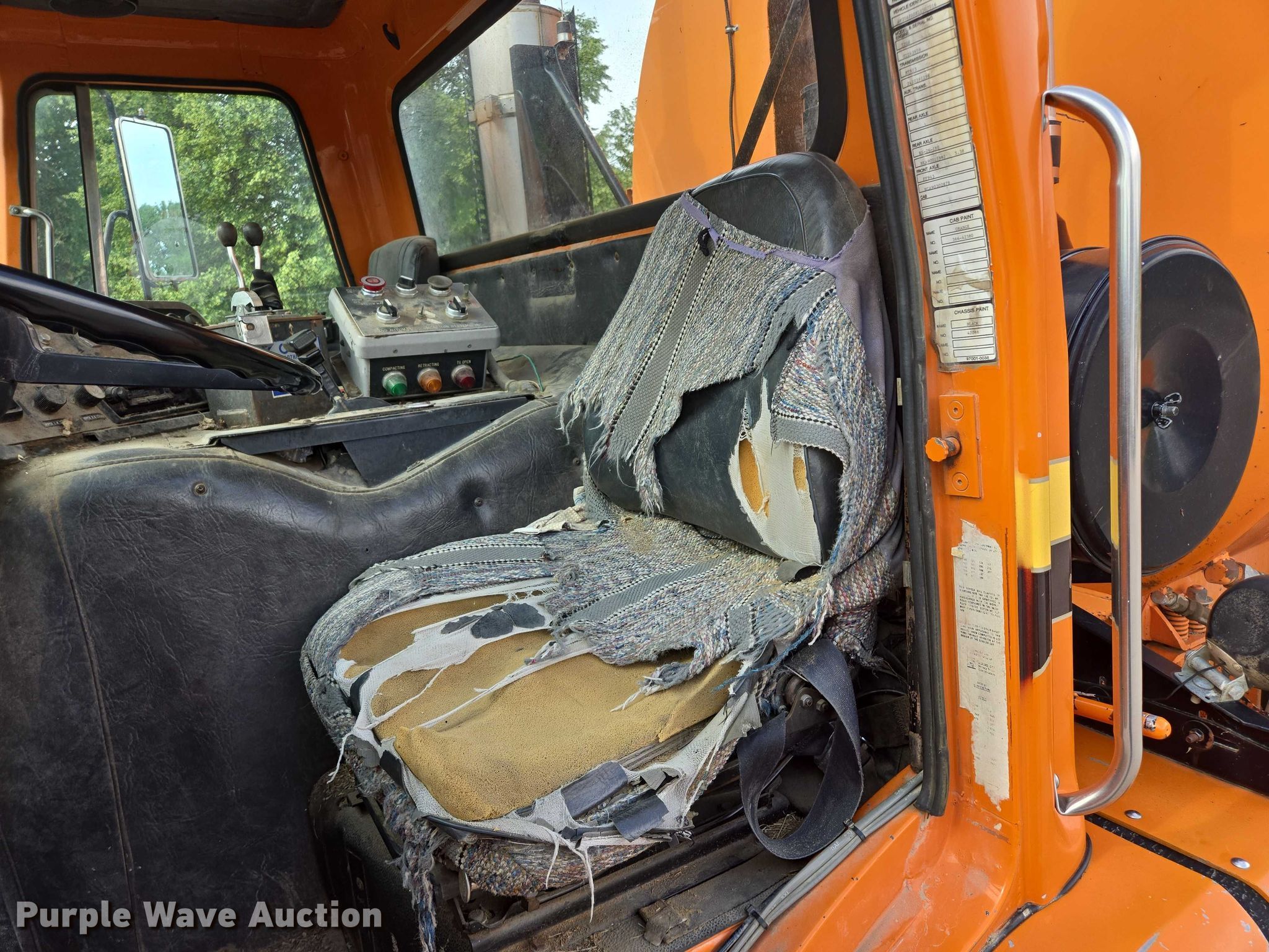 This 1990 White GMC Xpeditor refuse truck will sell to the highest bidder regardless of price.